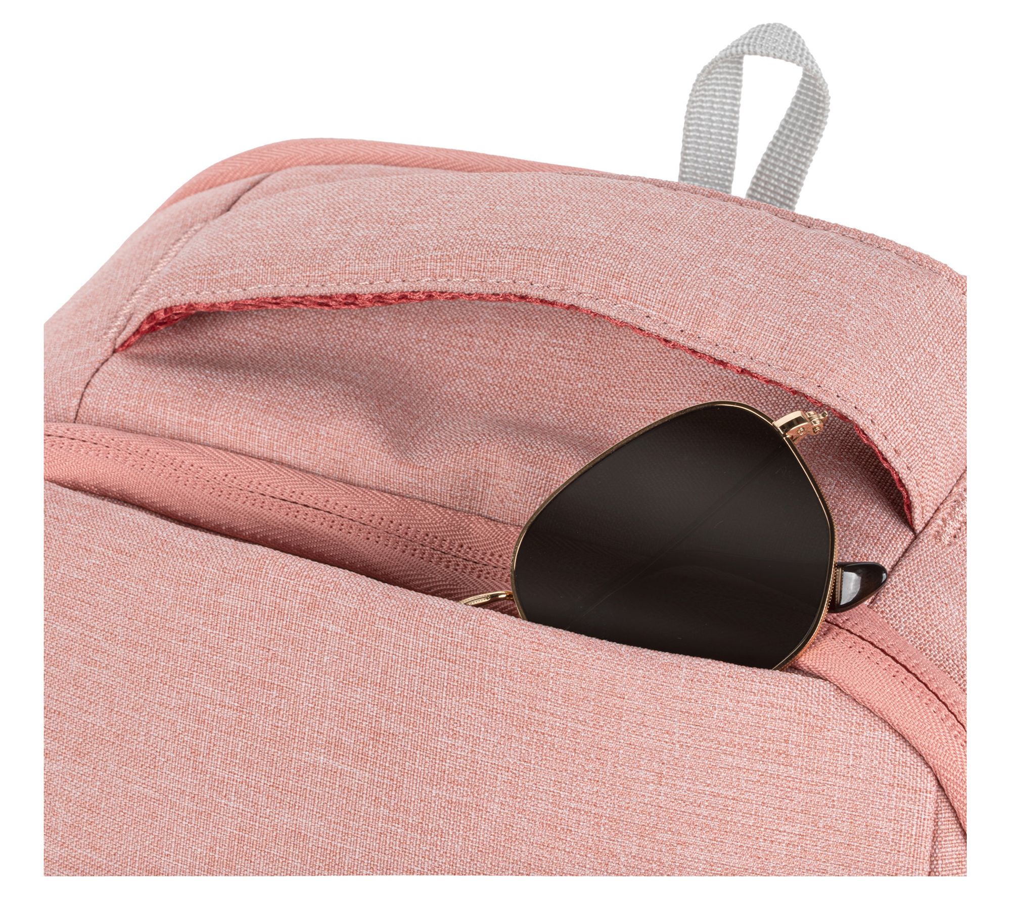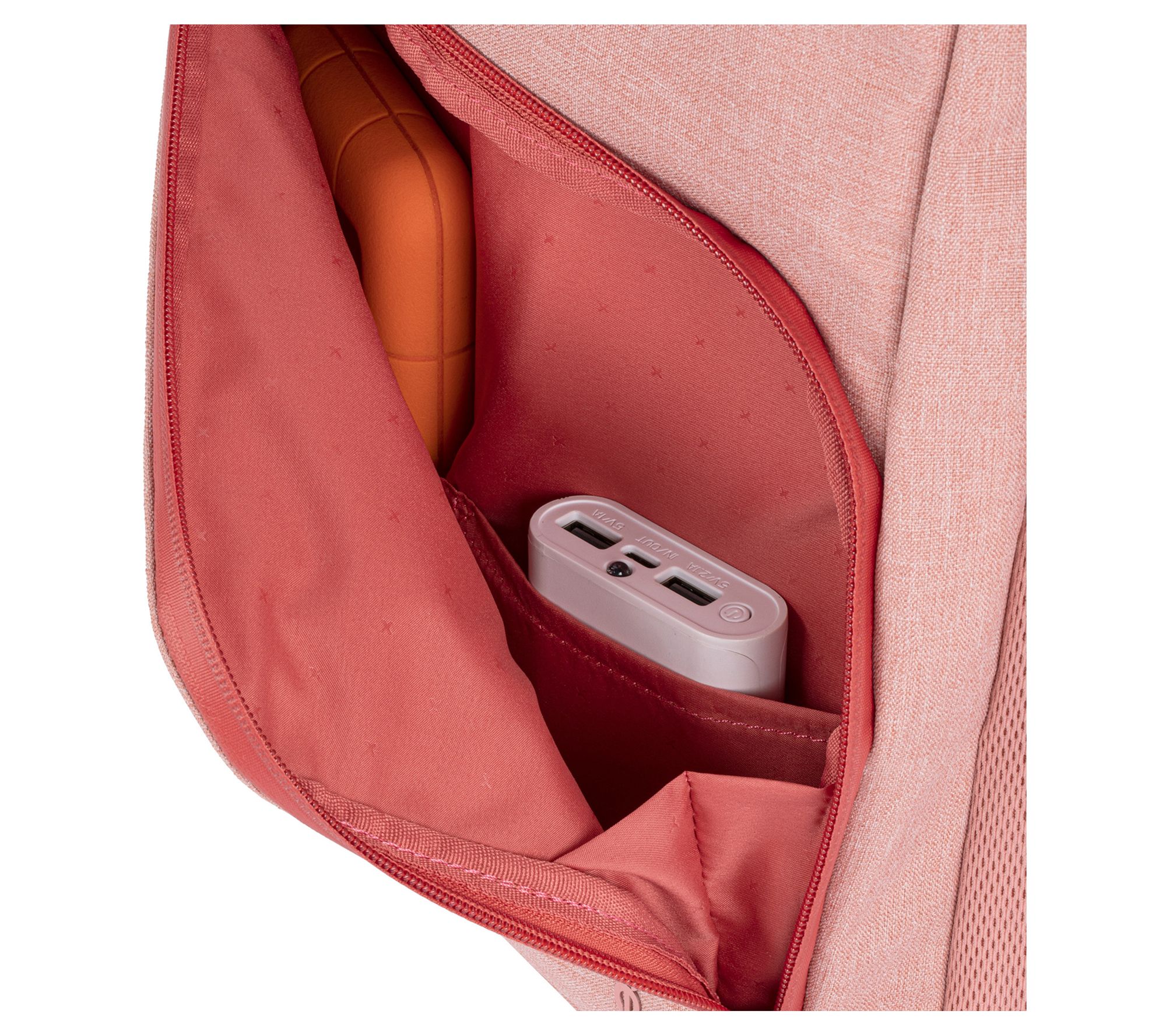 • Dobby coated-polyester body, zip-top closure, padded shoulder straps with quick-release, dual water bottle pockets, polyurethane-coated zippers, asymmetrical front pocket