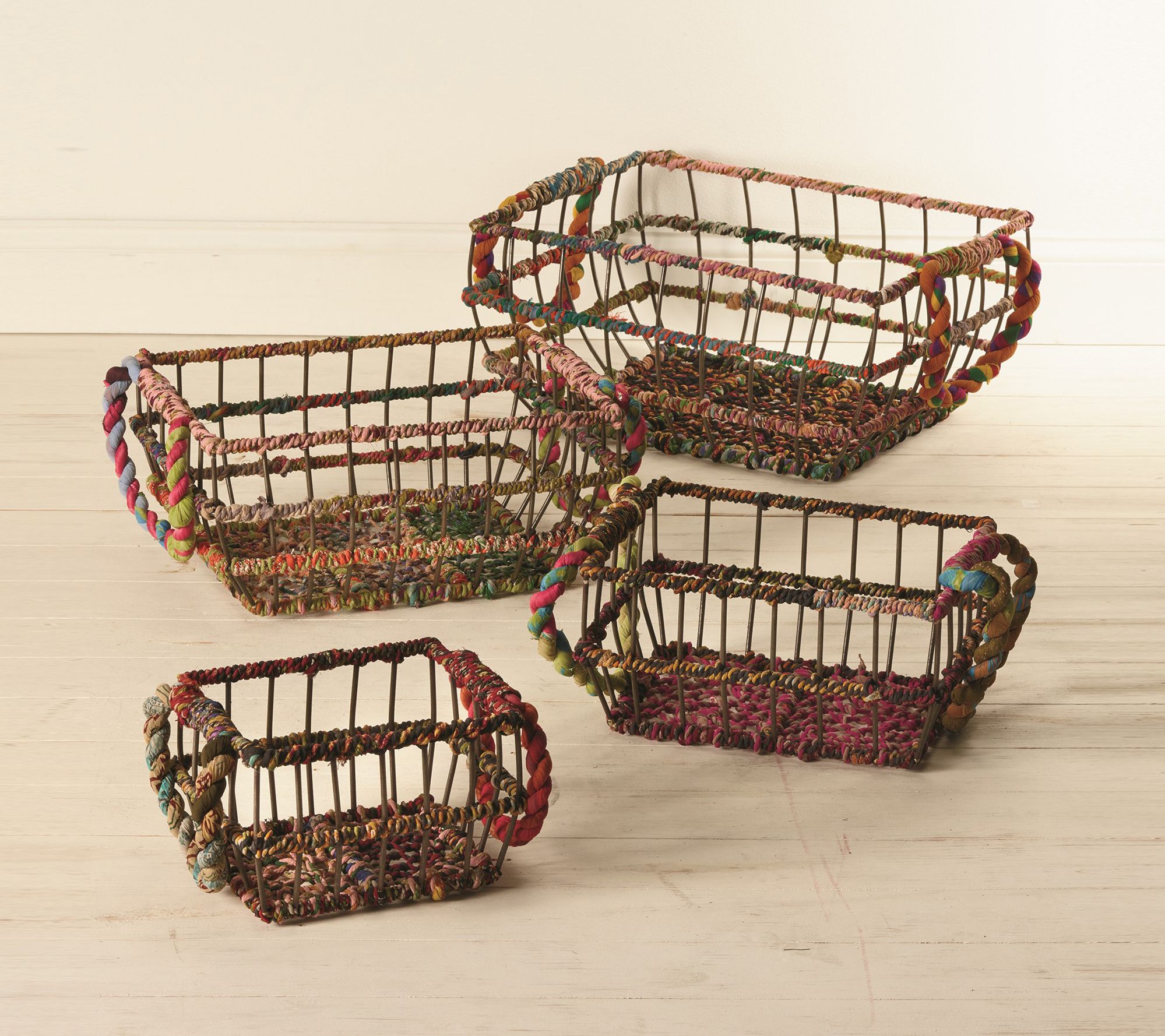 India Handicrafts S/4 Multi-Colored Jute Rectanle Baskets