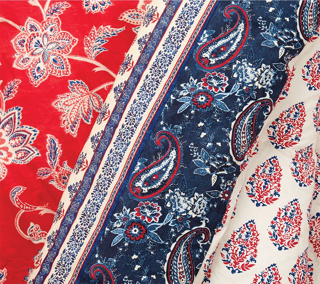 Add vibrant colors and patterns to your room with the Marbella comforter set. Jacobean and paisley prints in deep red and blue give this bed a rich look. From Indigo Bazaar.