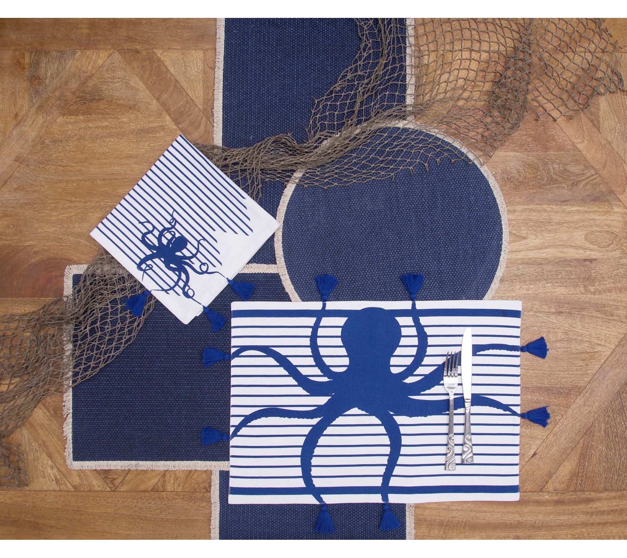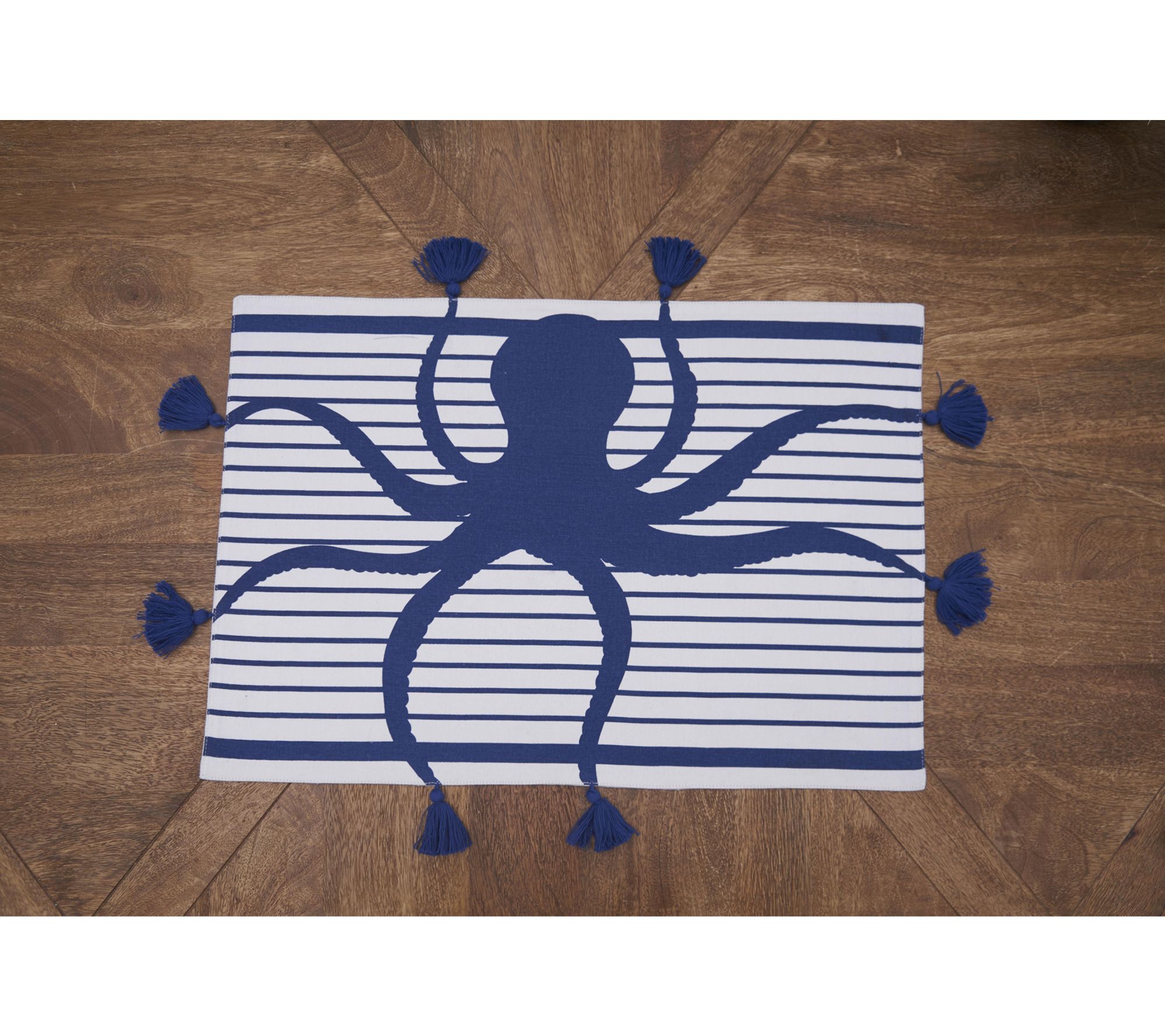 Set a stylish scene for family meals and festive gatherings with this set of six Indigo Octopus placemats by Valerie. Their playful, coastal-inspired design invites plenty of conversation, whether you're decorating for spring holidays or simply welcoming friends for a special dinner. From the Valerie Parr Hill Collection.
