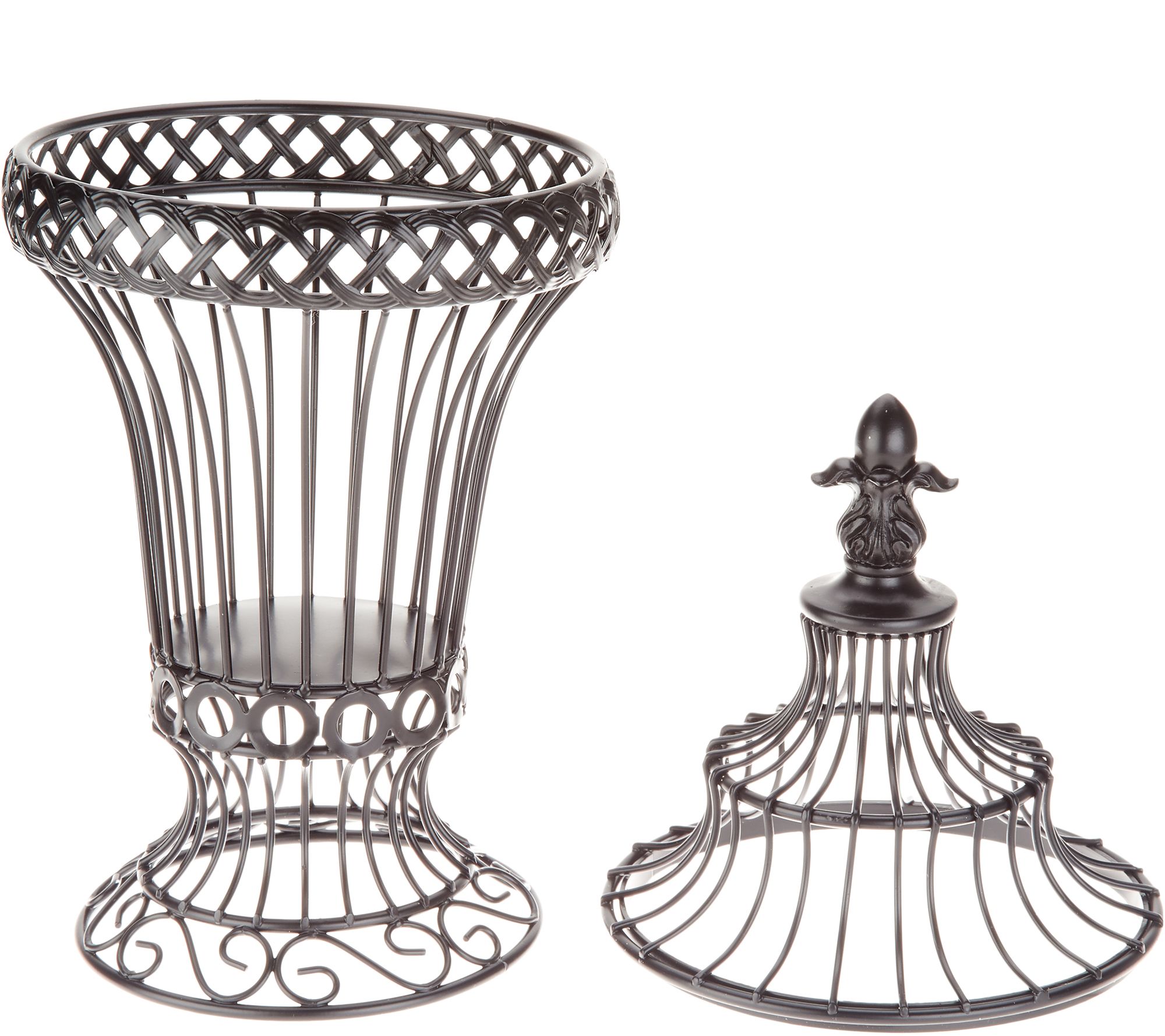 With a striking silhouette that includes a finial top and a footed base, this wrought-iron urn elevates any setting. From the Valerie Parr Hill Collection.