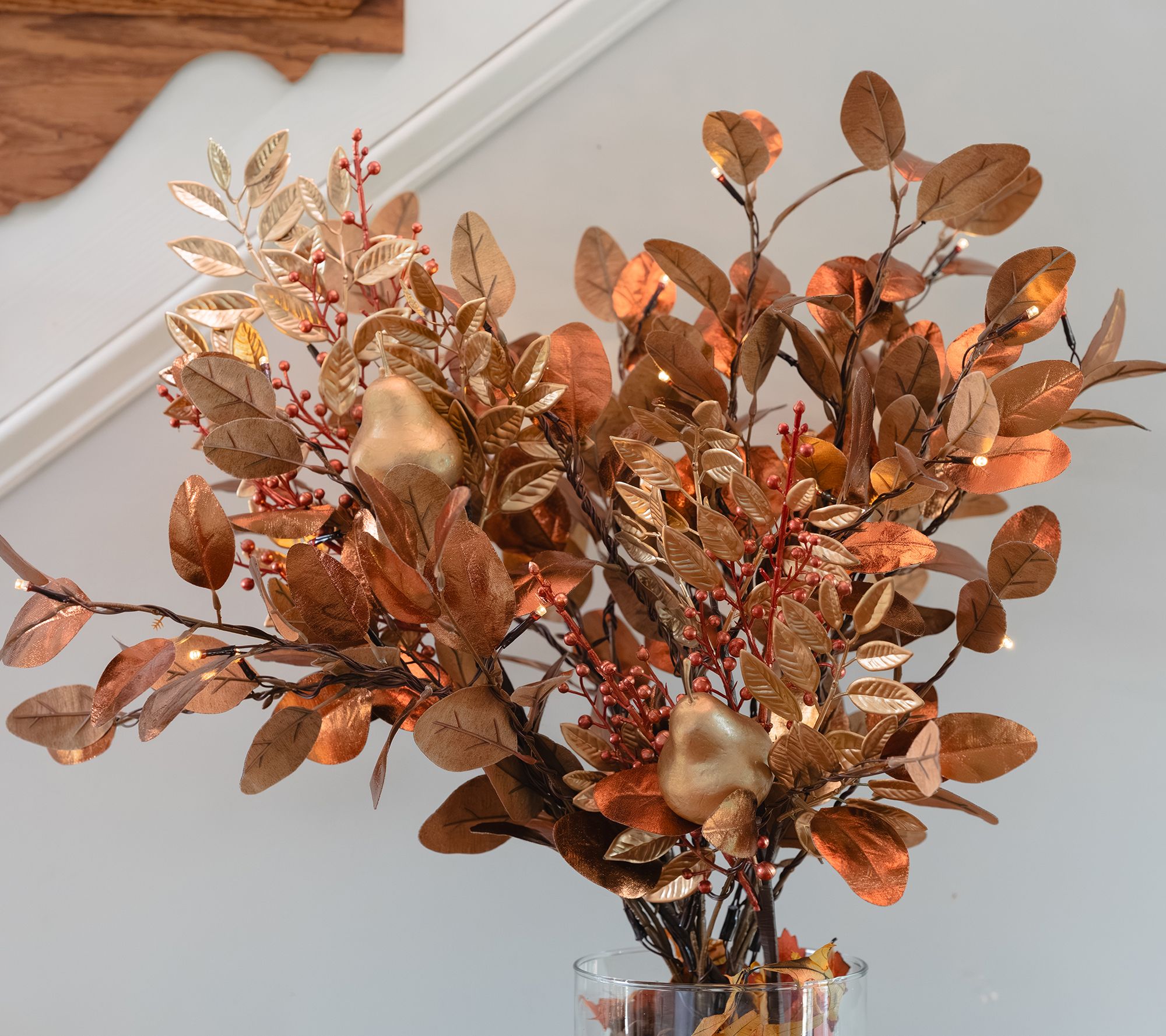 Let this illuminated branch cluster leaf the way to cozy gatherings and festive harvest evenings, glowing with forty LED lights to create a warm, inviting atmosphere. Thanks to multiple light modes, timer options, and dimming settings, it's easy to set just the right mood whether styled on your mantel, standing tall in a vase, or displayed as a striking table centerpiece. From Kim Gravel.