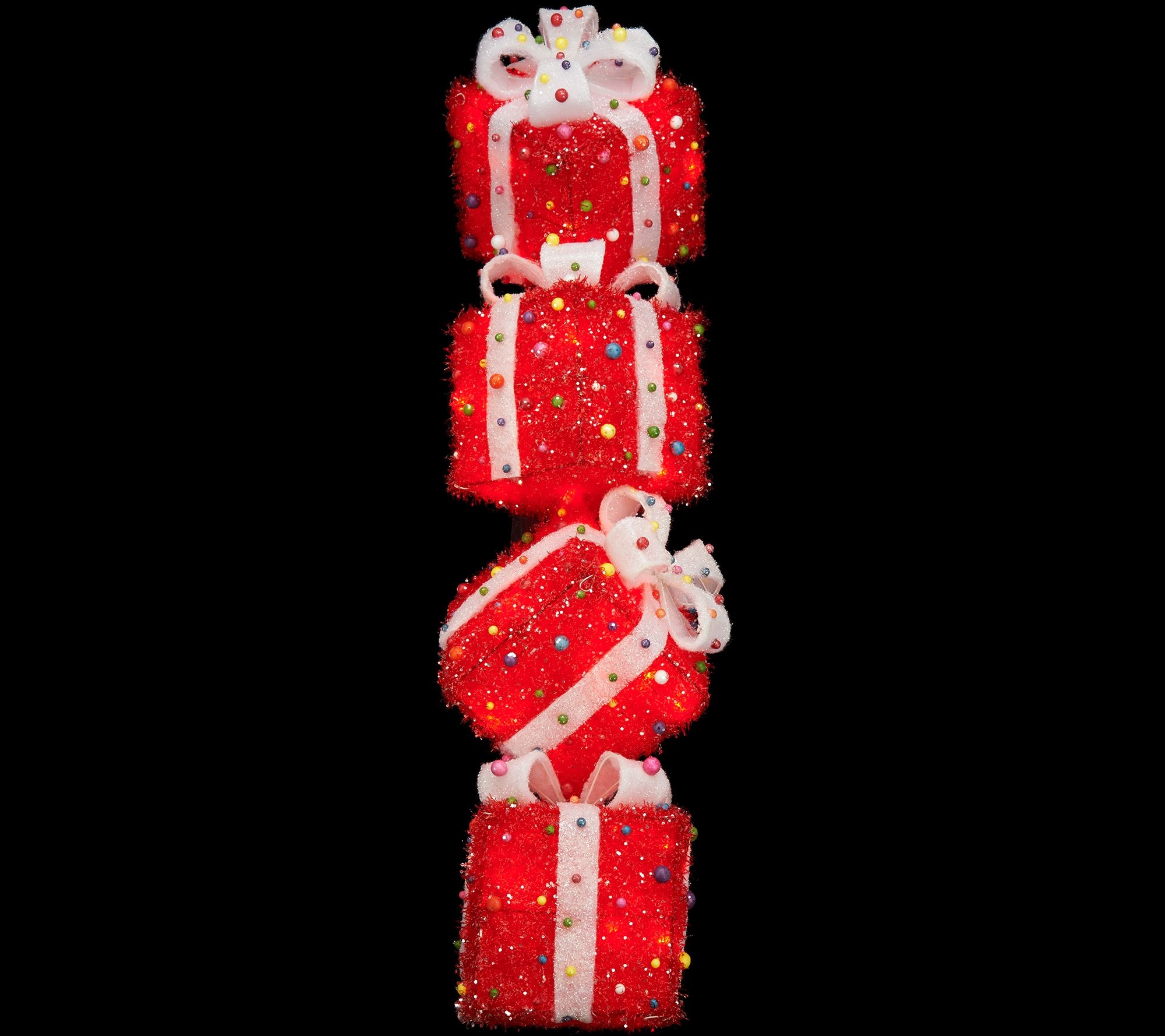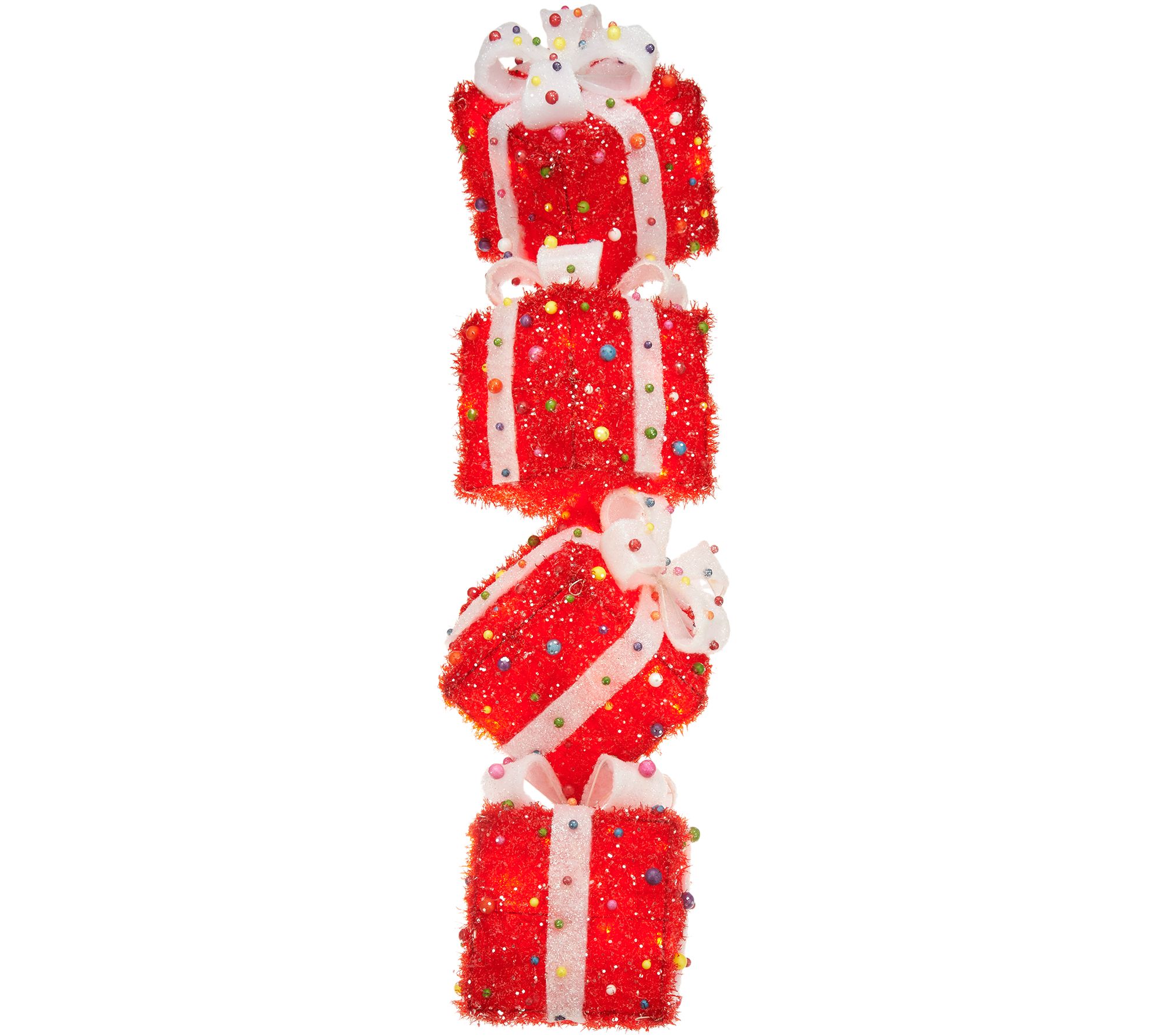 When it comes to Christmas decor, this one really stacks up--with four glistening and glowing gifts set in a stacked design. From the Valerie Parr Hill Collection.