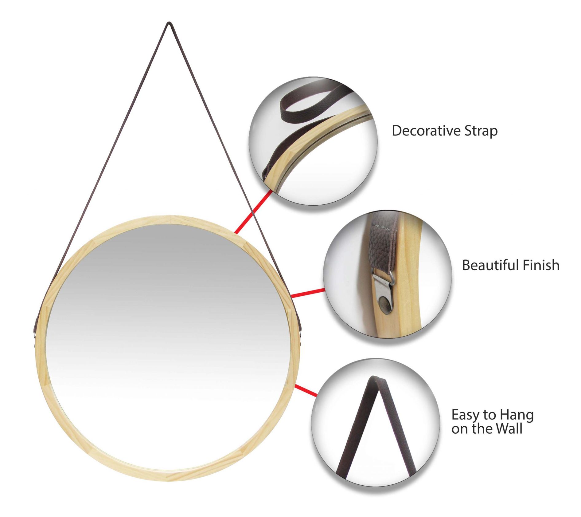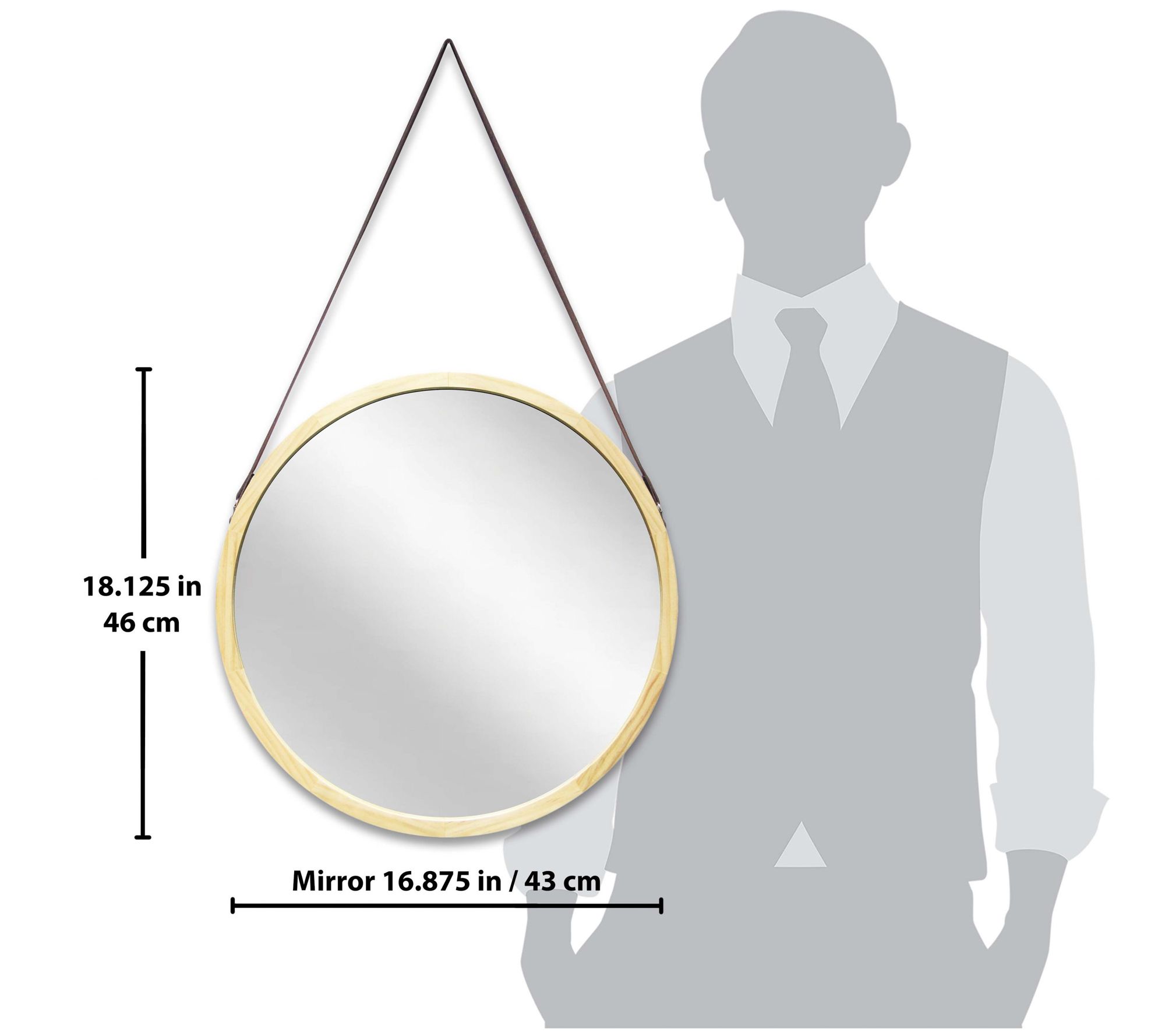 Infinity Instruments 18" Round Wall Mirror, Light Wood Frame