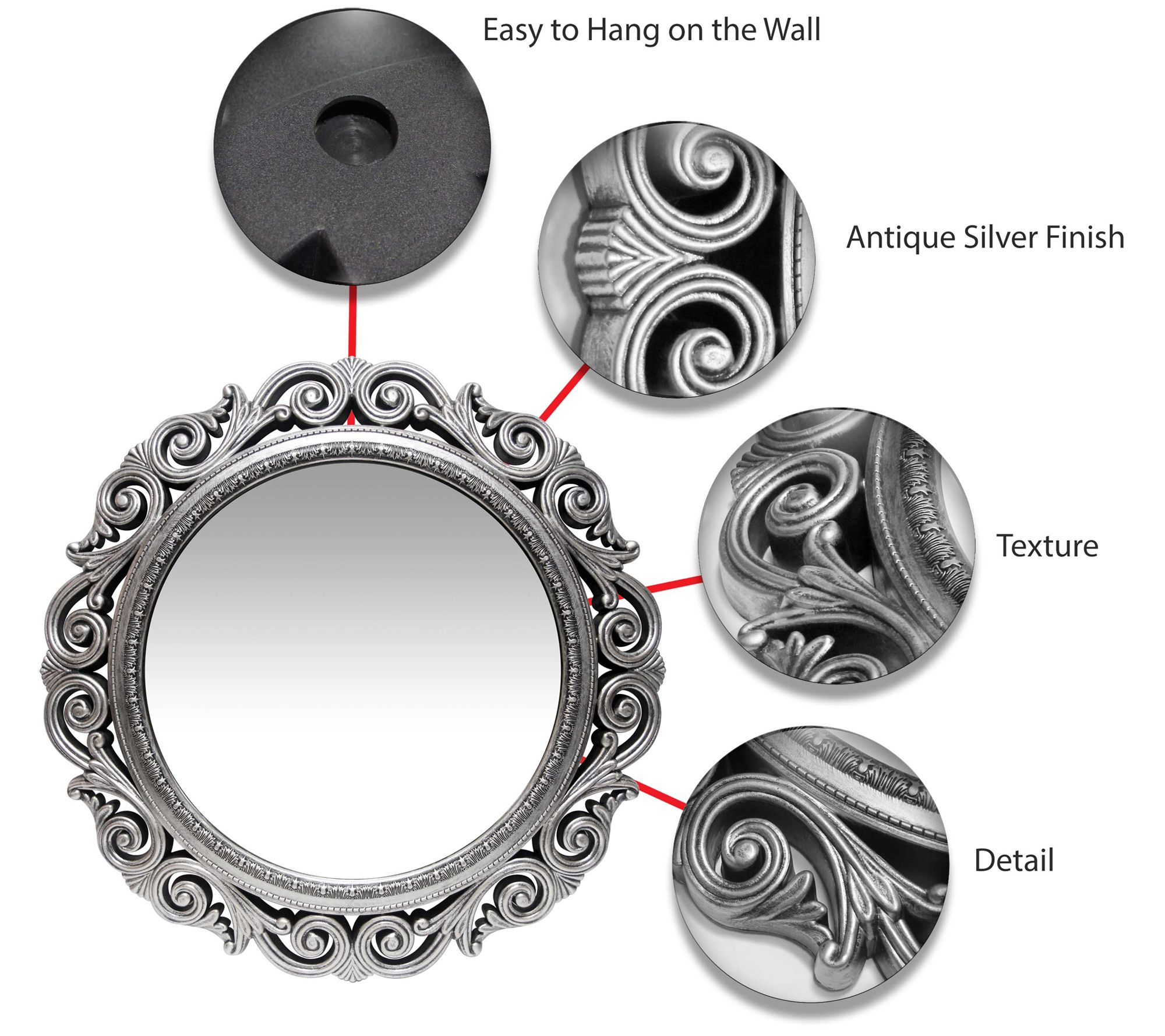 Infinity Instruments Antique-Look Silver Wall M irror, 22.5"