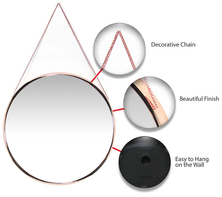 • Includes mirror and metal chain for hanging