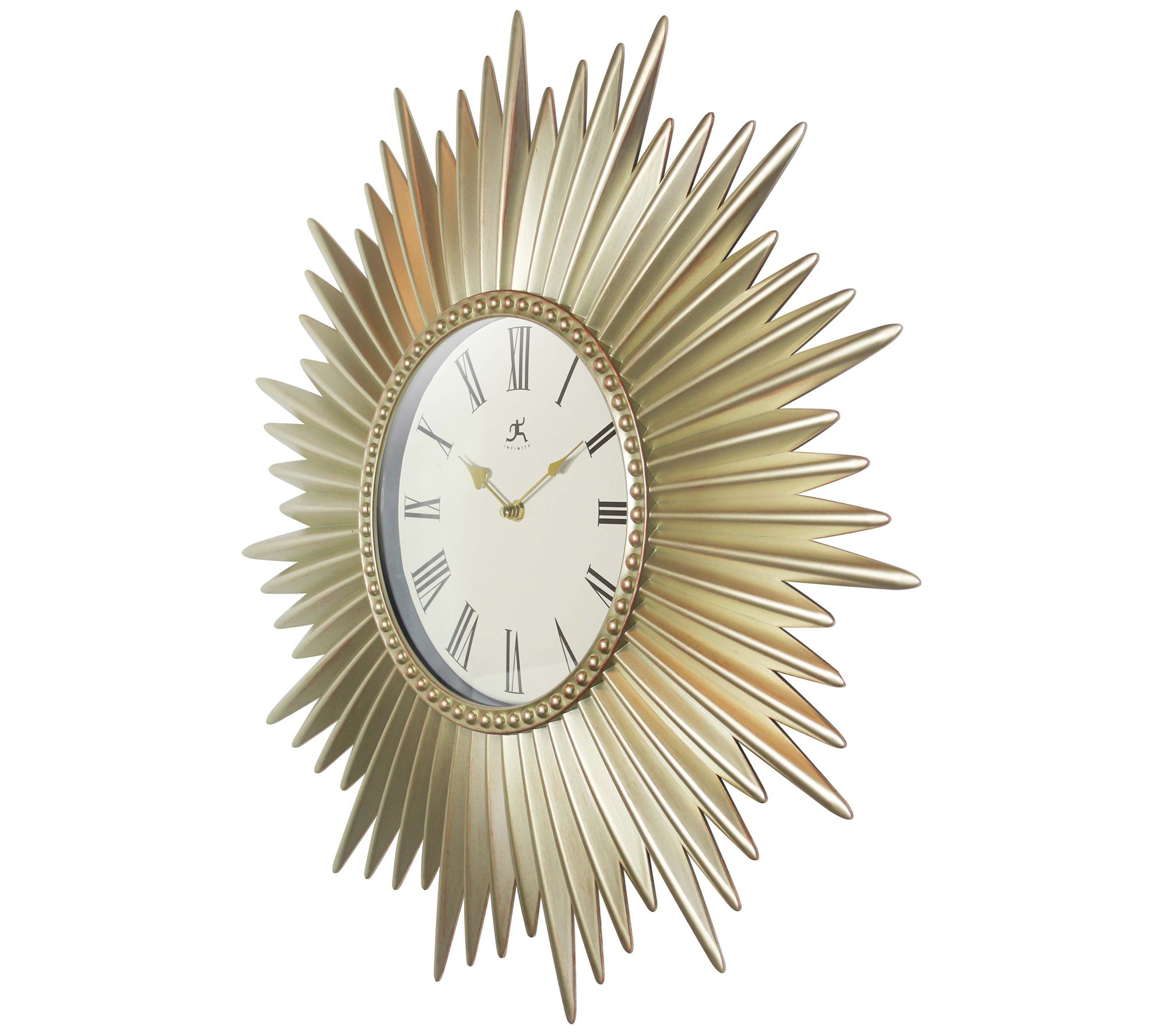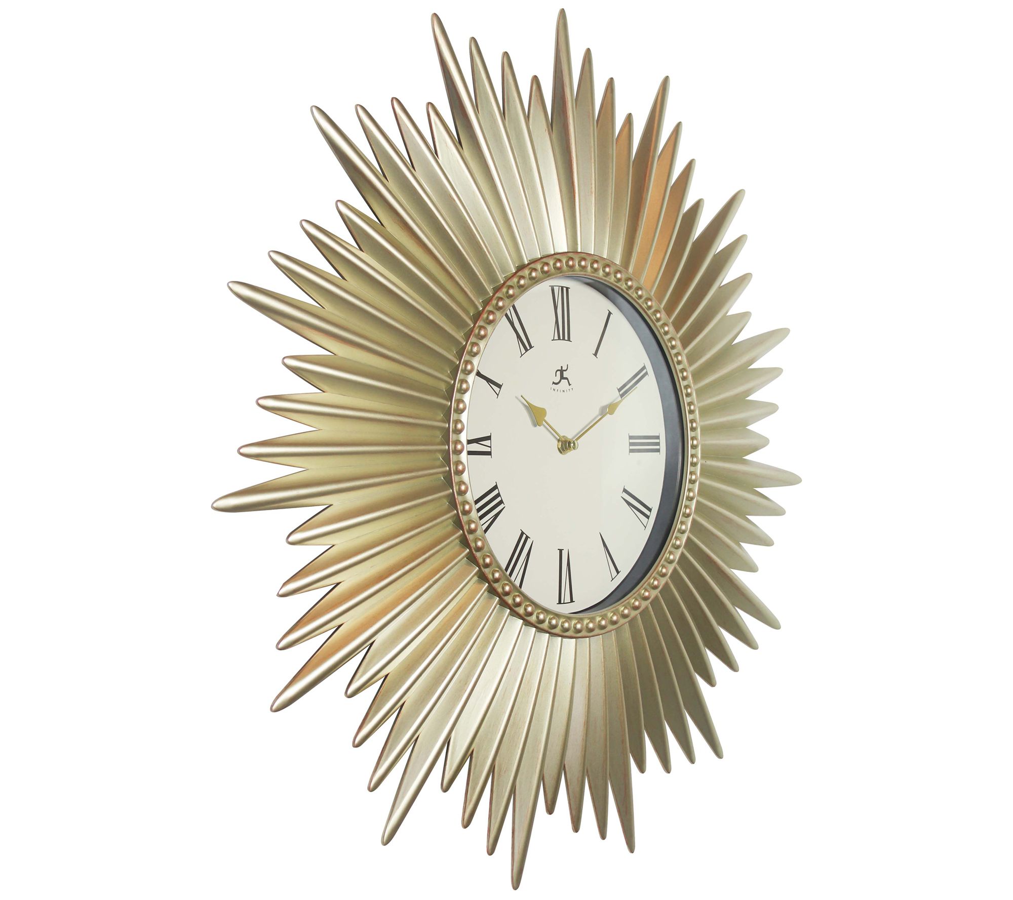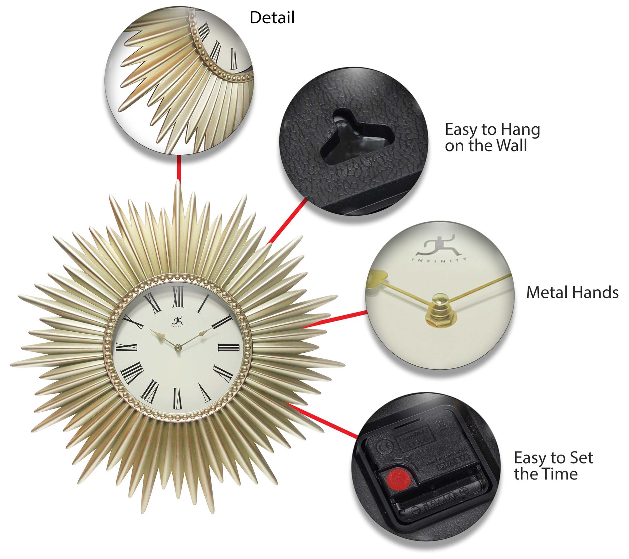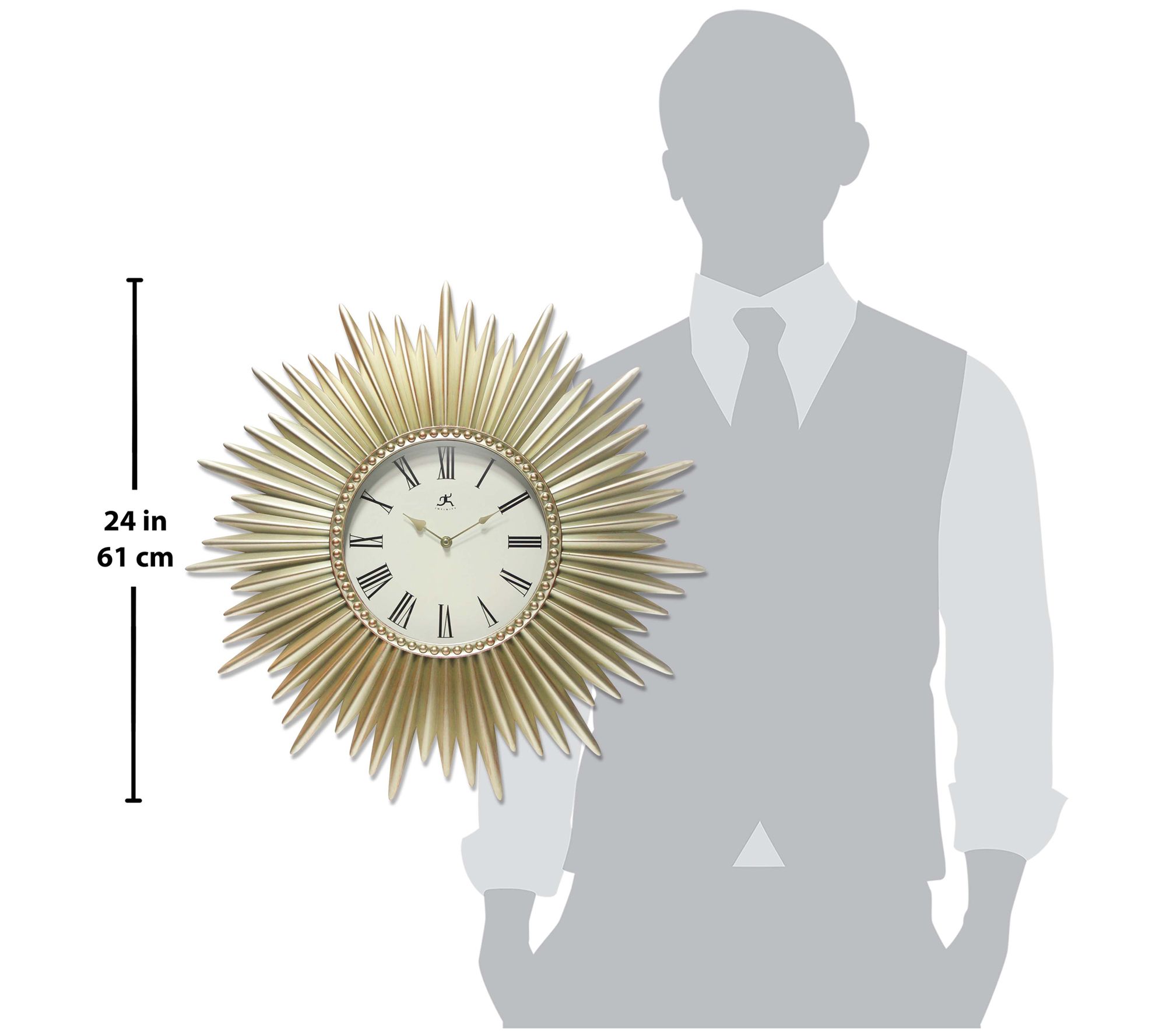 Perfect for any modern or contemporary home, this stunning 24"Diam sunburst wall clock adds a touch of elegance to any space. From Infinity Instruments.