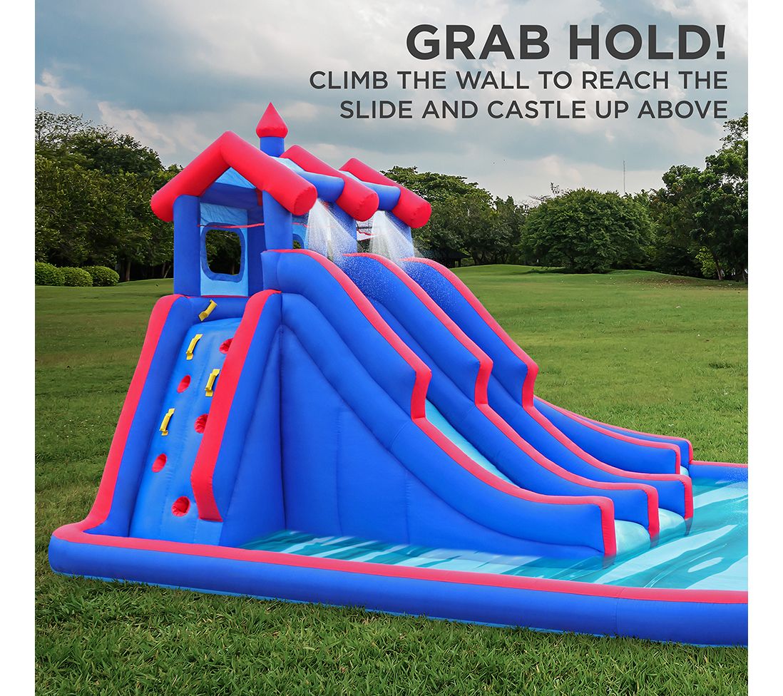 A sunny day will be a party to remember with this jumbo three-slide water park in your backyard. From Sunny & Fun.