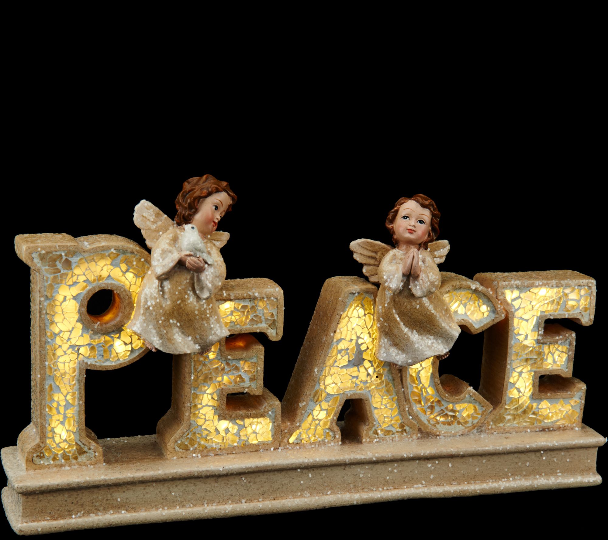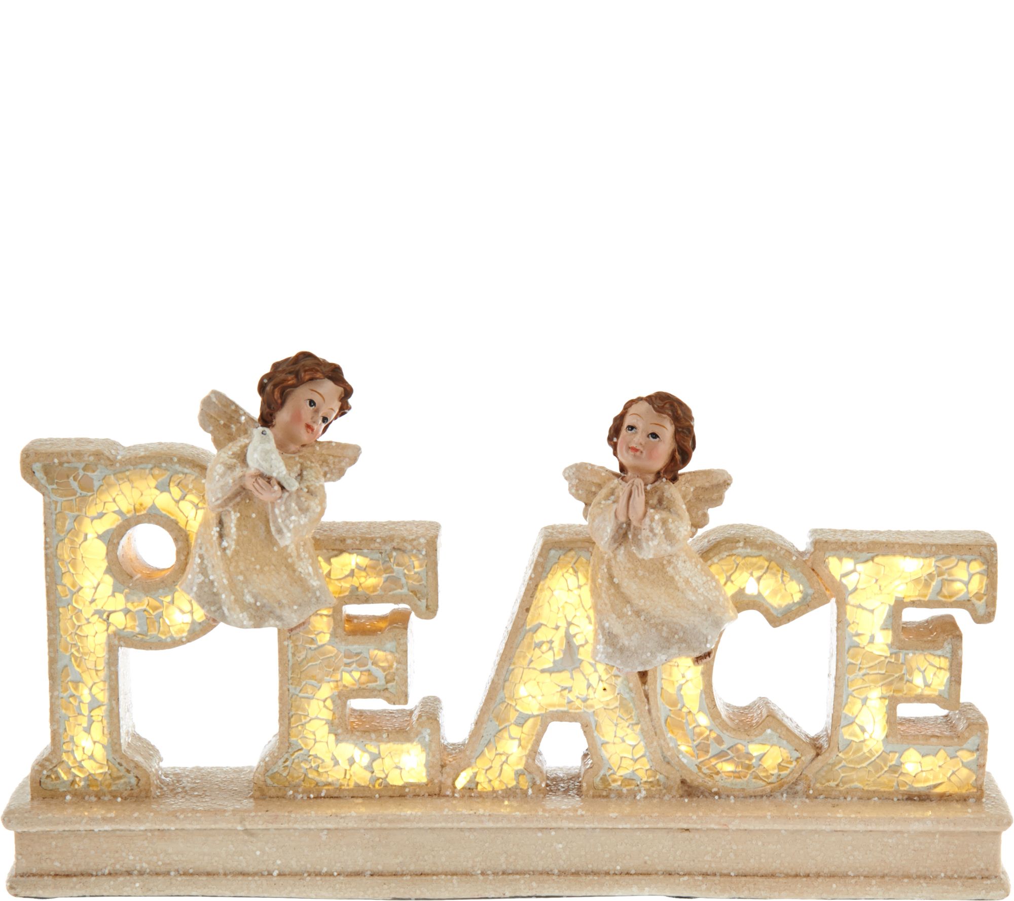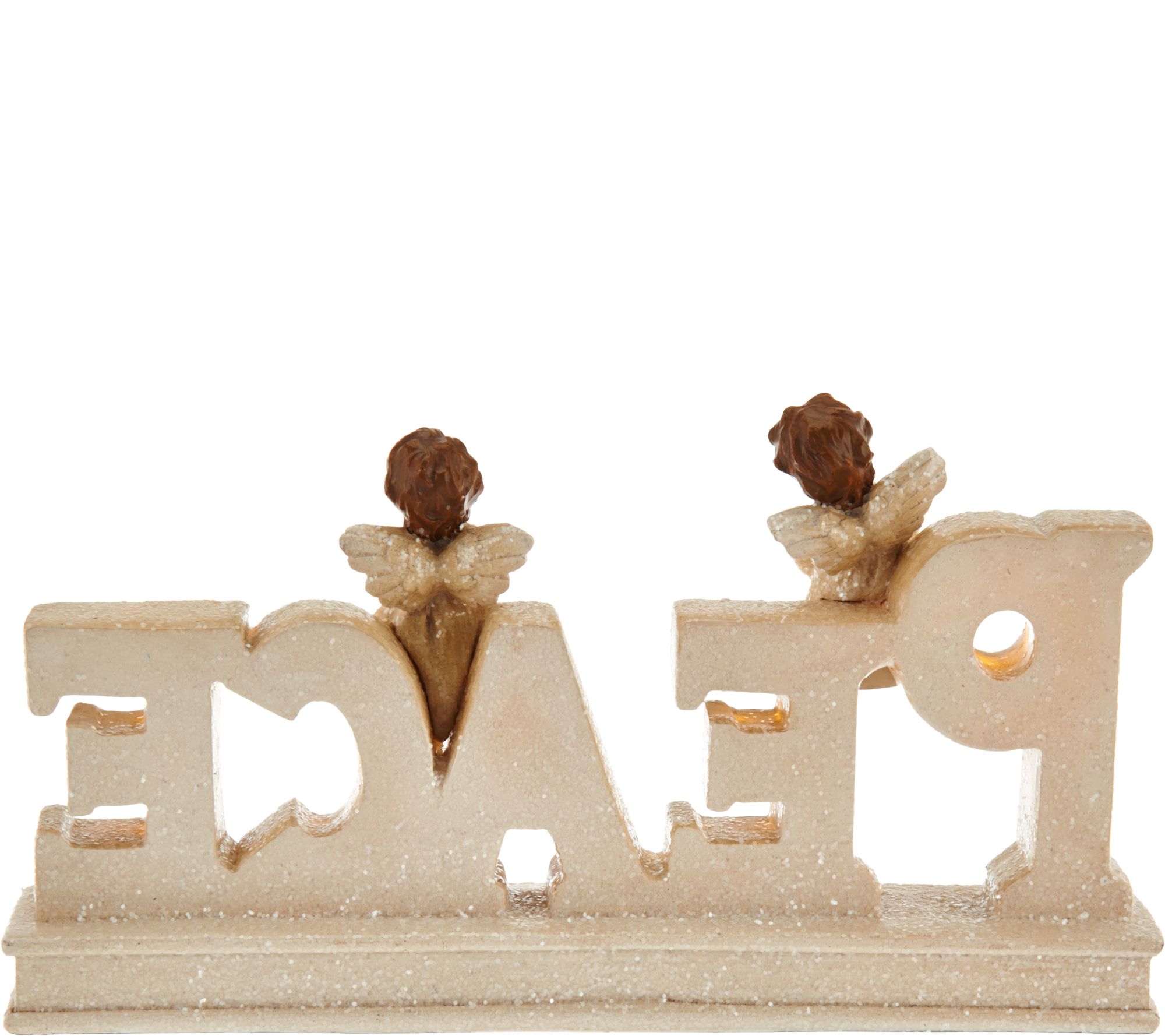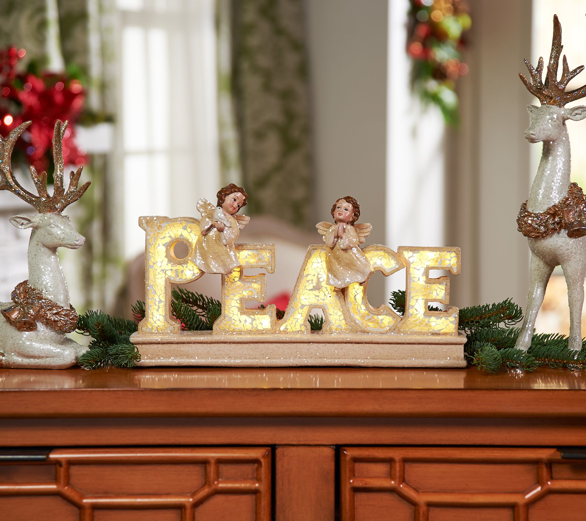 Fill your home with a heavenly glow with this illuminated word plaque from Valerie Parr Hill. Two angels sit atop a cheerful message that glows from the inside and reminds us all of the reason for the season. From the Valerie Parr Hill Collection.