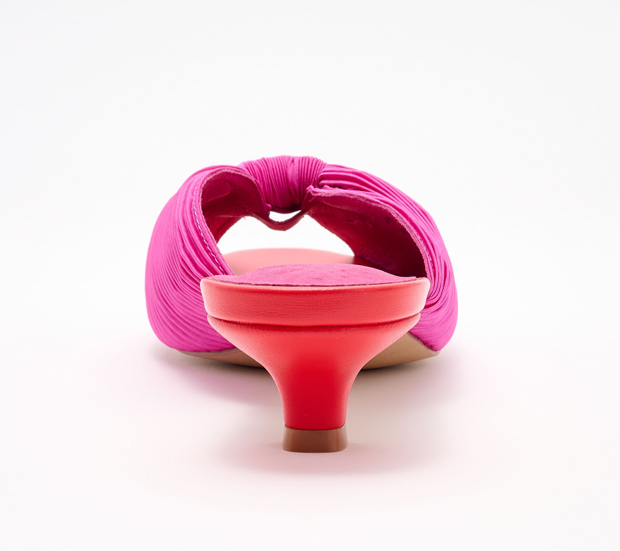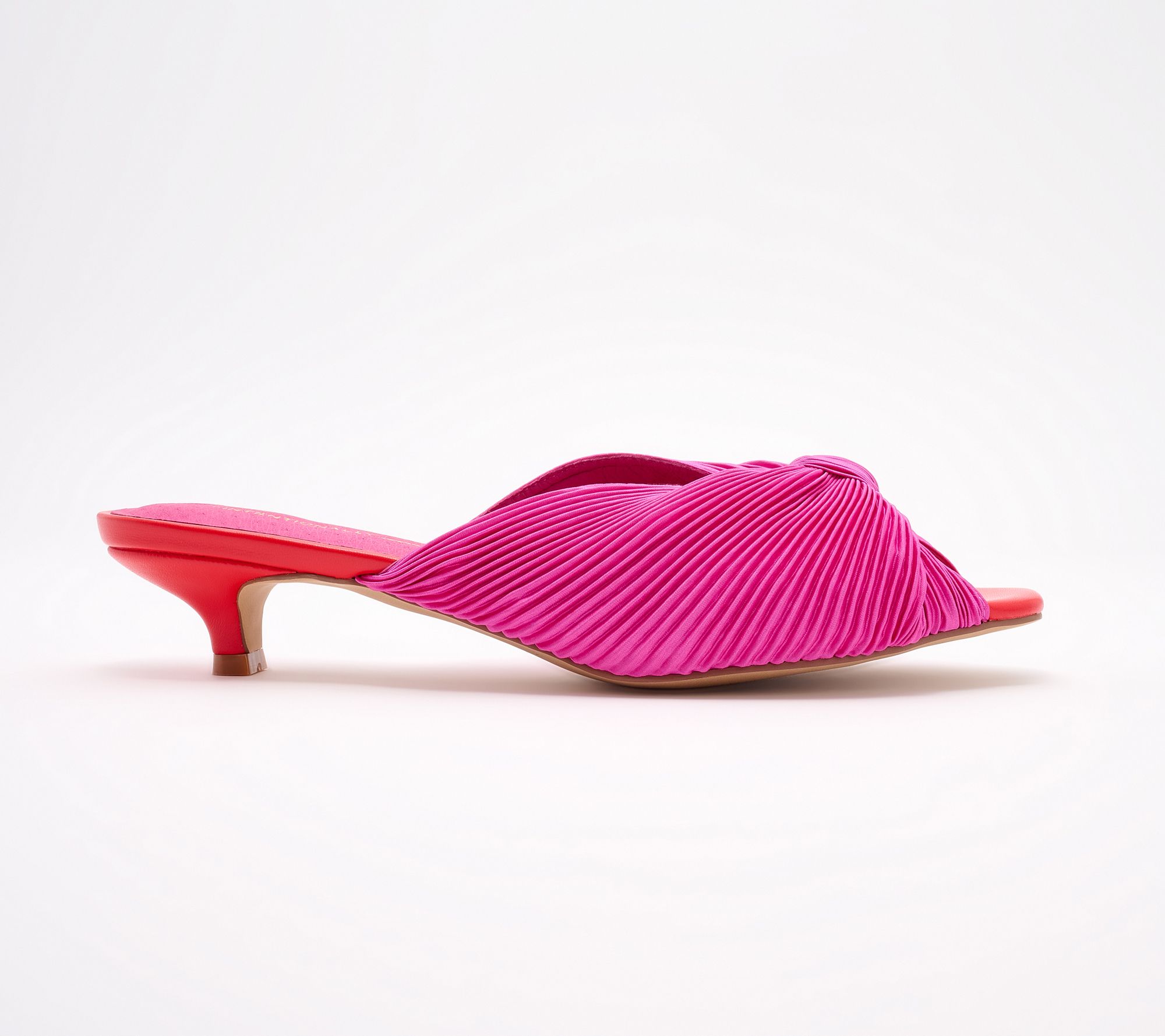 Satin kitten heel mules add a playful edge to both daytime and evening looks, pairing easily with everything from flowy skirts to tailored pants. Supple leather lining and memory foam footbed deliver all-day comfort, so you can breeze from work to special events with ease. From Intentionally Blank.