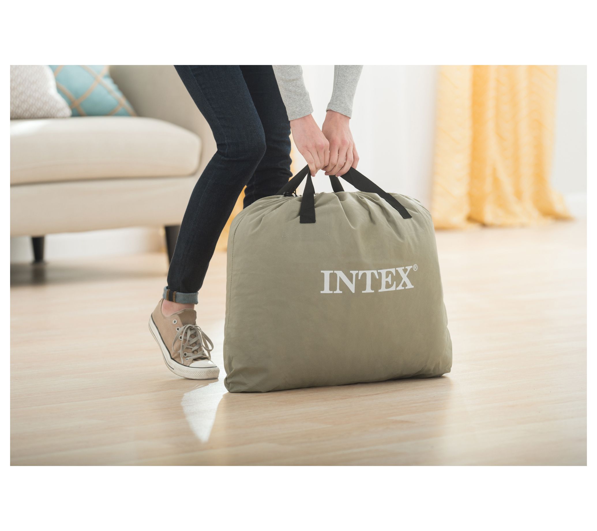 Offer your guests a cozy place to stay with help from this elevated airbed. Engineered with Dura-Beam Technology, it provides comfort, stability, and support while adjusting to your personal firmness preference for a customized sleep. From Intex.