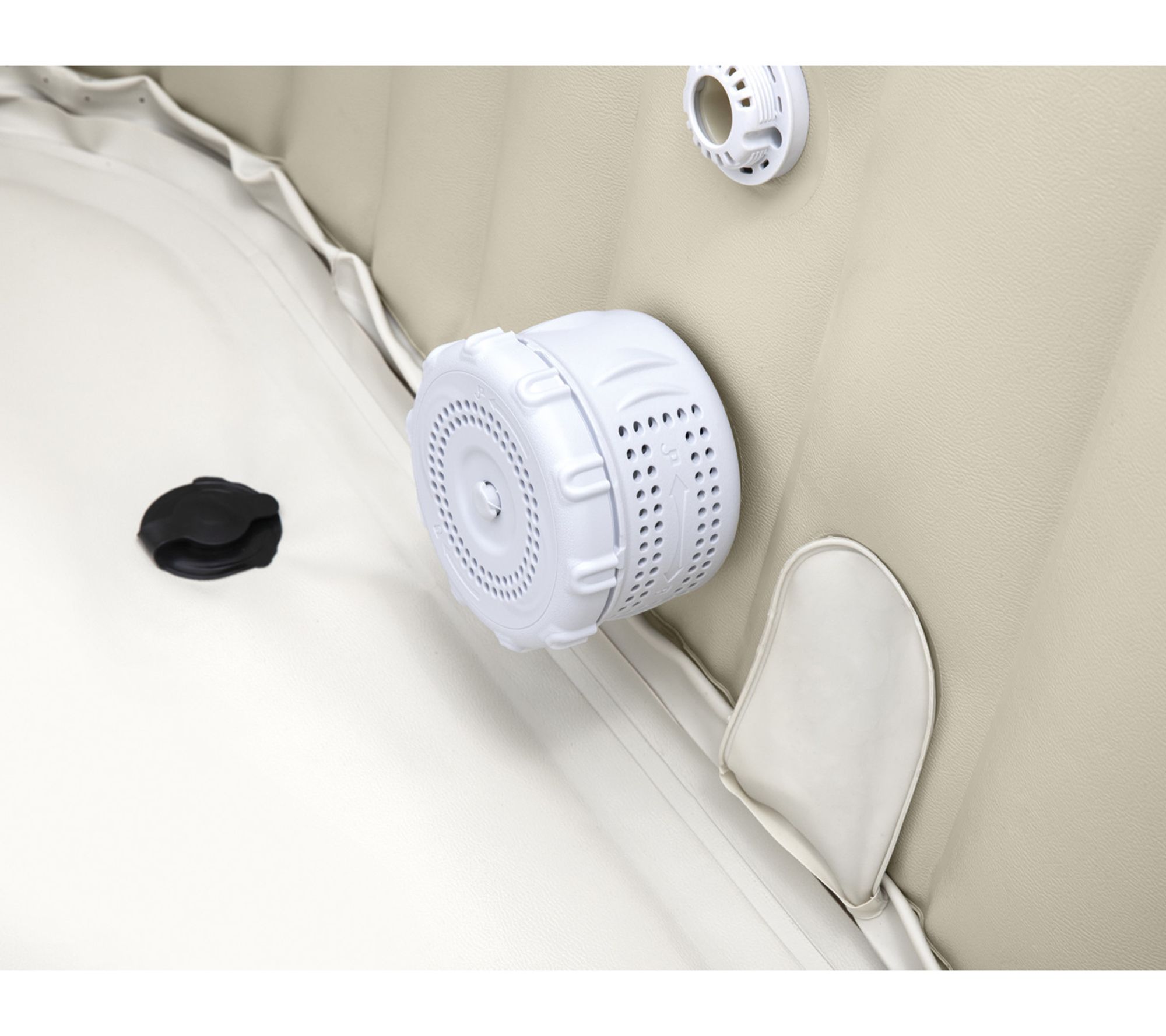 Soak up some well-deserved relaxation in this six-person inflatable hot tub set, where 170 soothing bubble jets provide a refreshing massage after a long day. The chevron pattern adds a stylish touch while easy-to-use controls, advanced sanitation, and energy-saving features make at-home spa days effortless and enjoyable. From Intex.