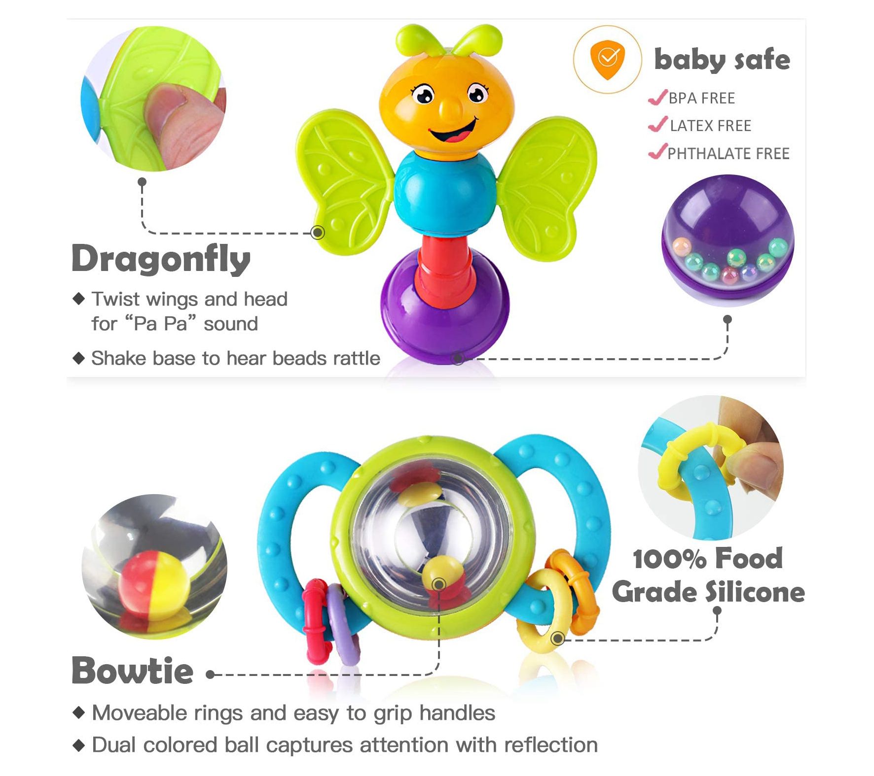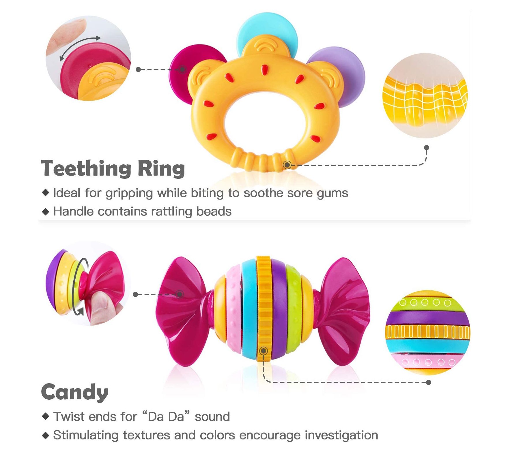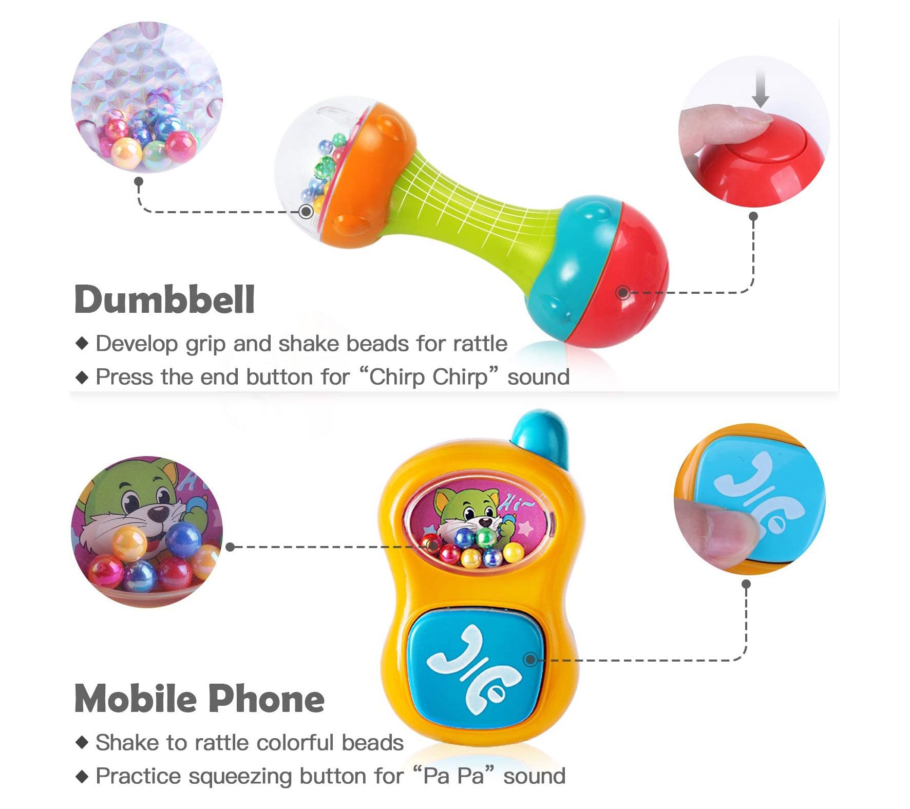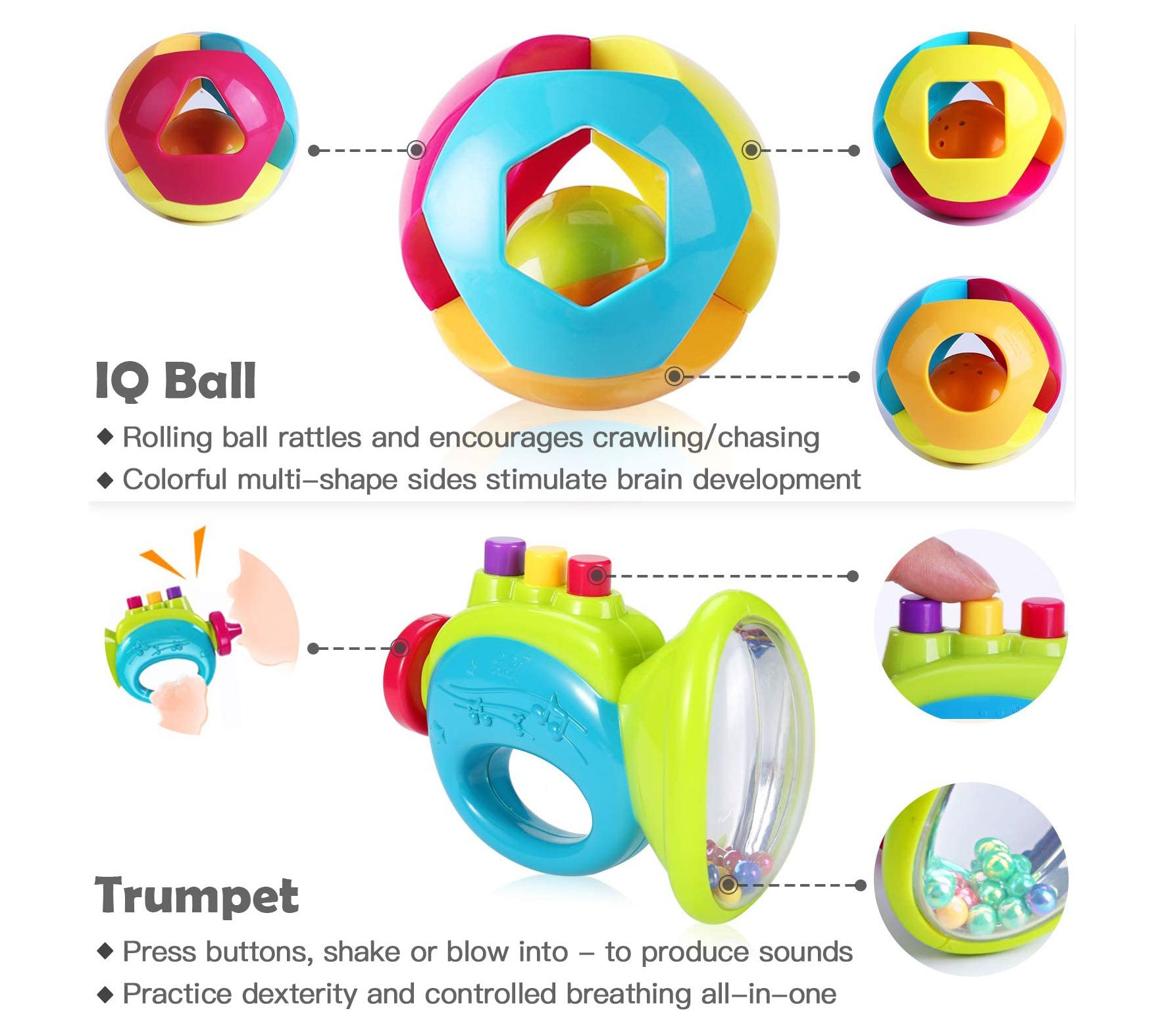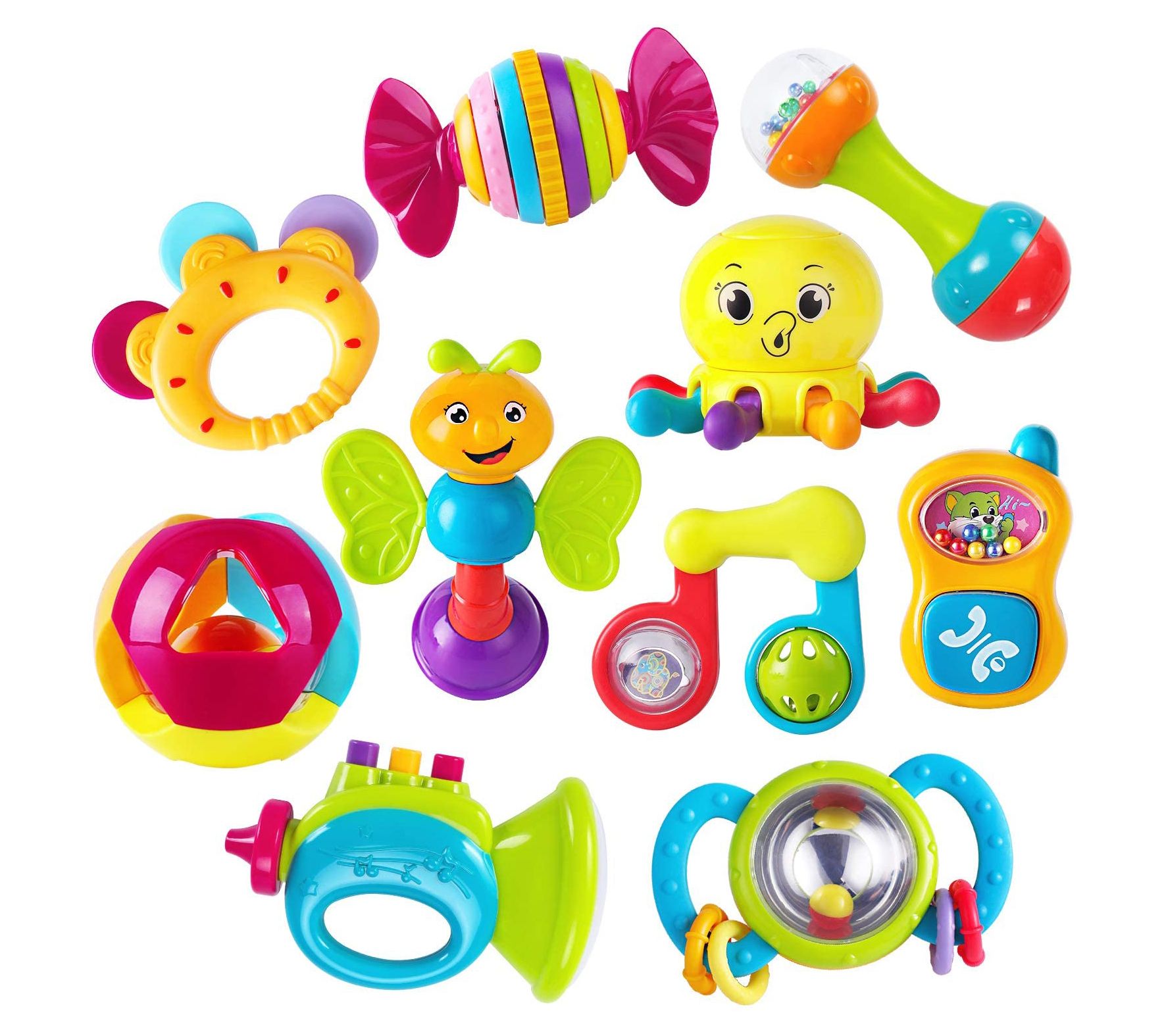 • Includes 10 rattle toys
