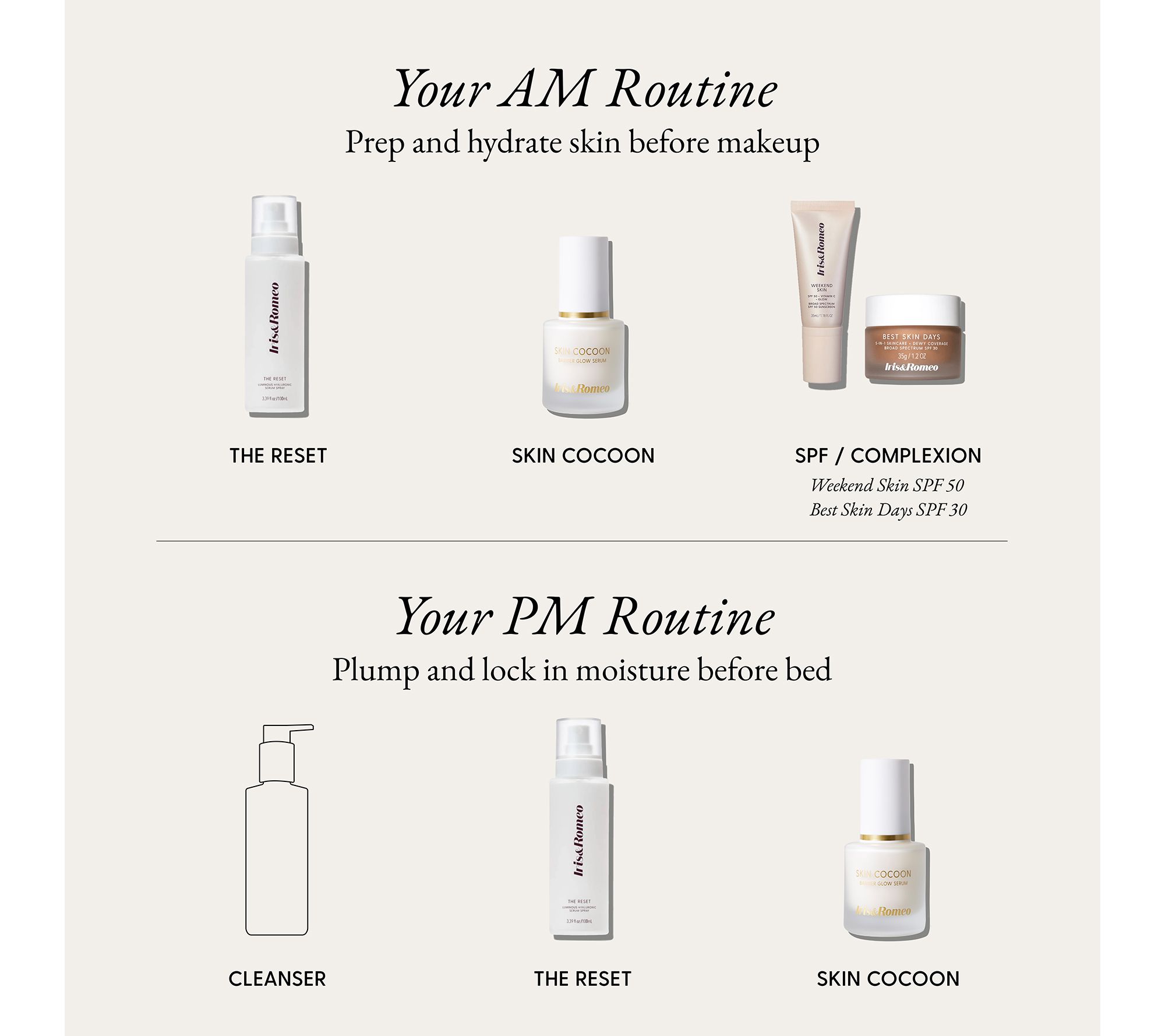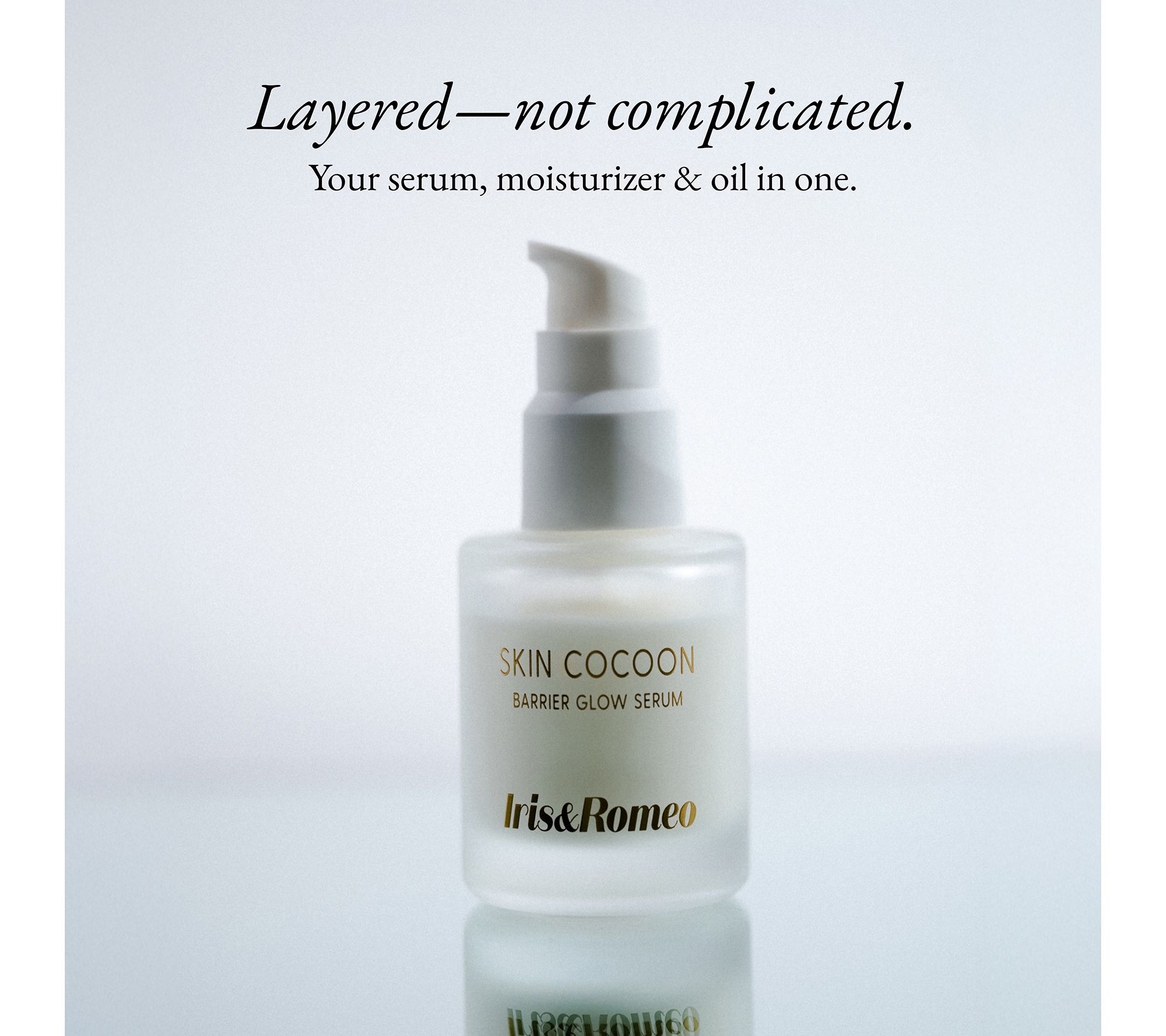 Iris and Romeo Skin Cocoon Barrier Glow Serum is a creamy oil serum that cocoons the skin to help reduce the look of dullness. It instantly illuminates the skin's appearance and delivers a glossy-skin glow. We love using it in the morning to prep before makeup and in the evening as the final step in our skin-care routine. From Iris & Romeo.