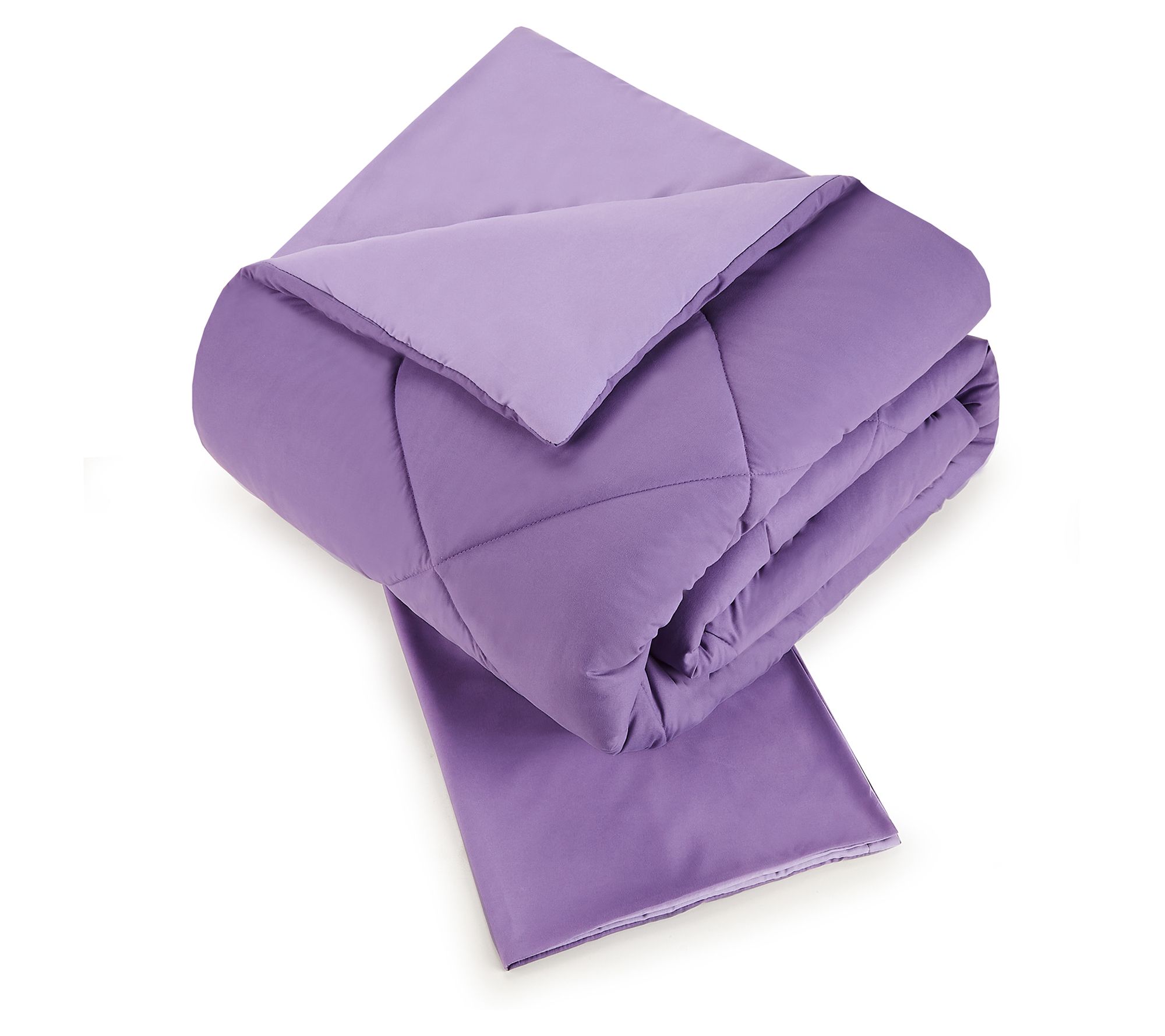 Wrap your little one in royally soft and lofty coziness with this beautiful comforter set, featuring a solid face that reverses to a softer shade of purple. From Urban Playground.