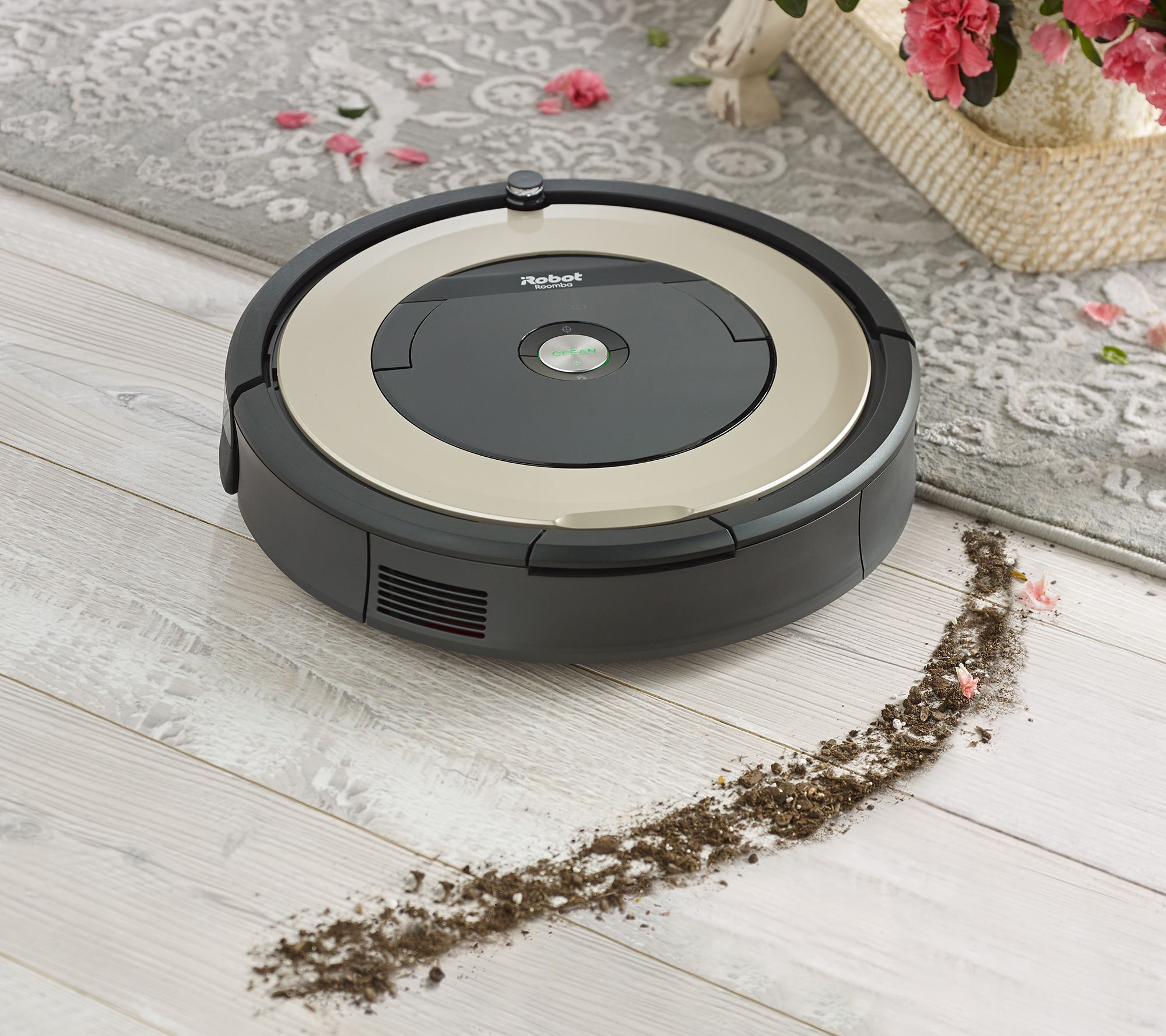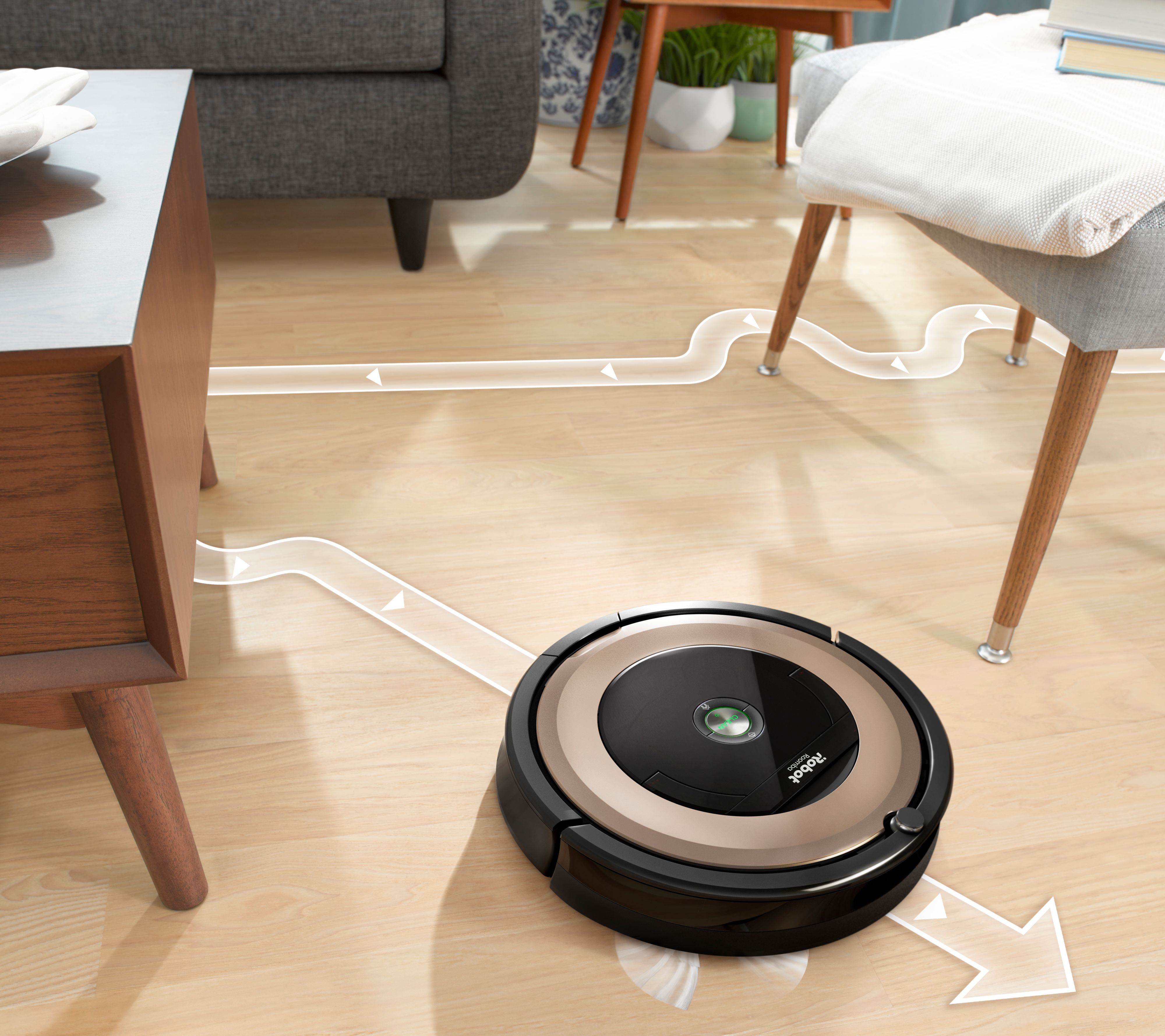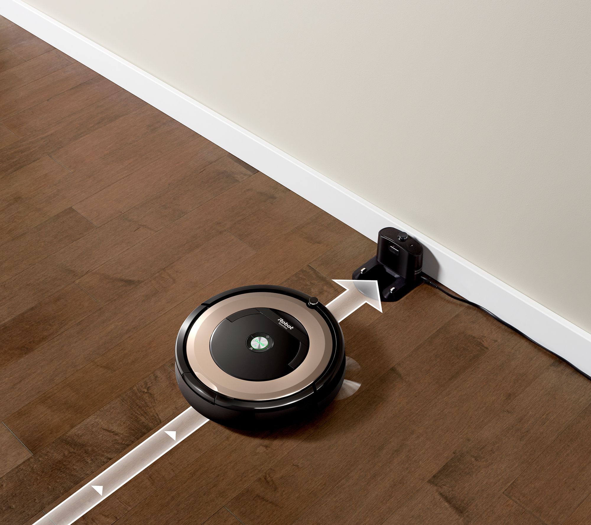 Clean your floors from anywhere with the Wi-Fi-connected Roomba 891 robotic vacuum. With the iRobot HOME app, you can power on this smart vacuum cleaner from your device no matter where you are, and its intelligent sensors will target dirt and pet hair all while dodging walls and furniture. No smartphone? No problem. Just push the clean button on the top of the device and let your Roomba go to work. Between cleans it automatically heads to its Home Base charging cradle for a full charge, so you never have to do it manually. Keeping your floors clean has never been easier! From iRobot.