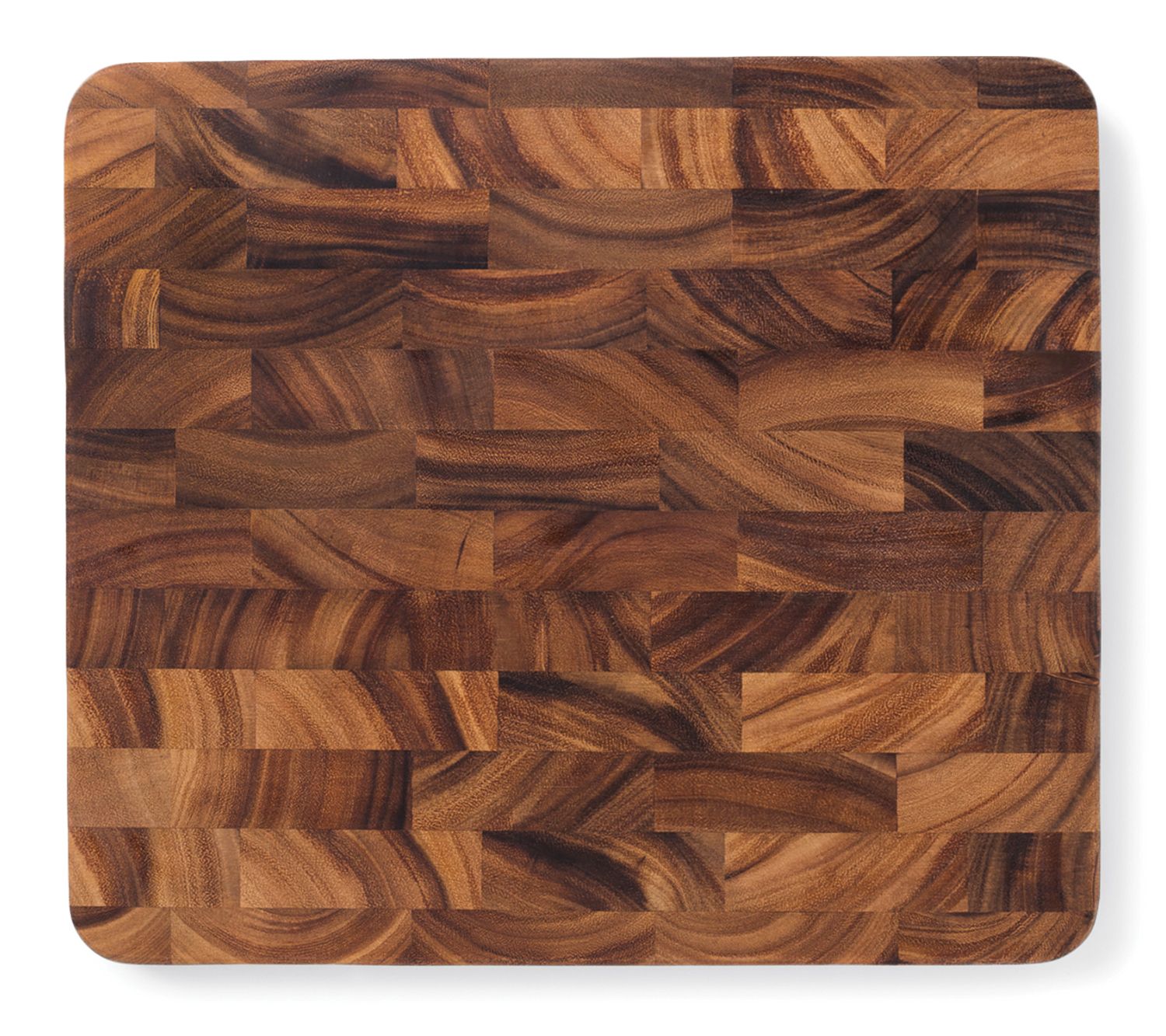 Imagine elevating your kitchen experience with the Oslo end grain utility board. This beautiful acacia wood cutting board features unique, naturally contrasting patterns, making each piece one-of-a-kind. Perfect for prepping vegetables, meats, or cheeses, it also doubles as a stunning serving piece when entertaining guests. From Ironwood.
