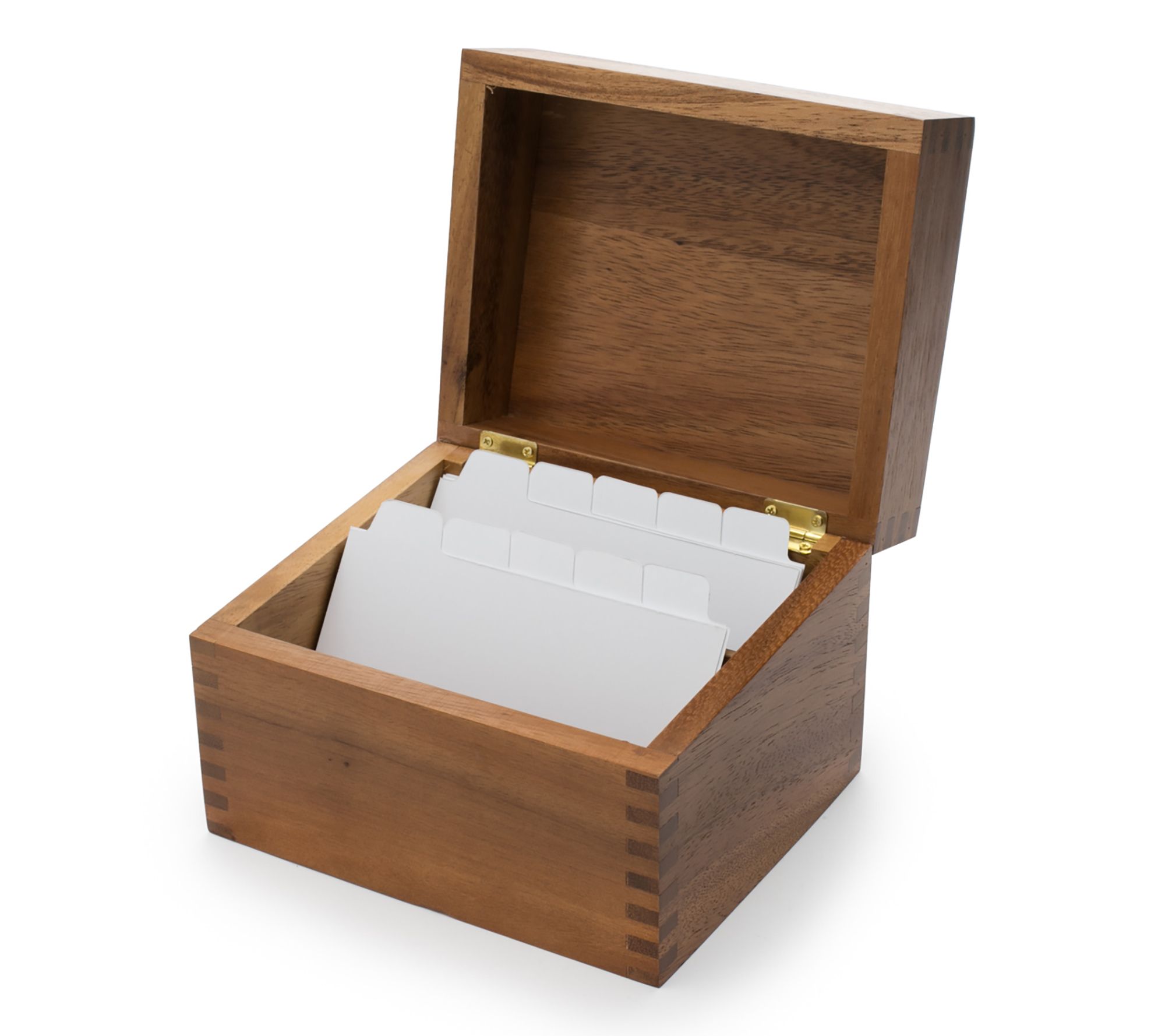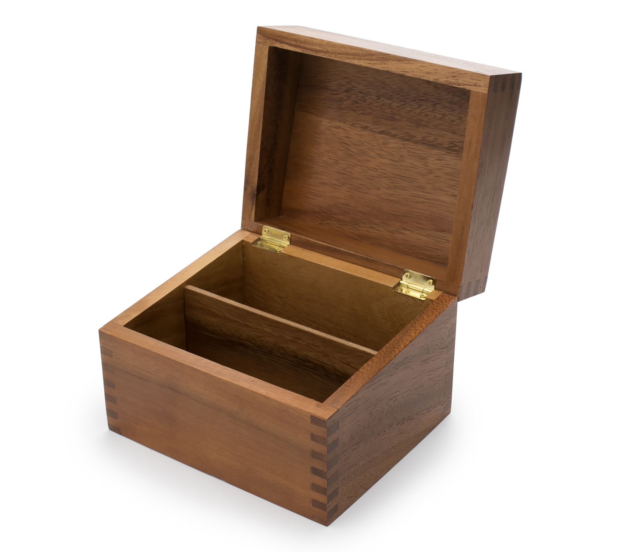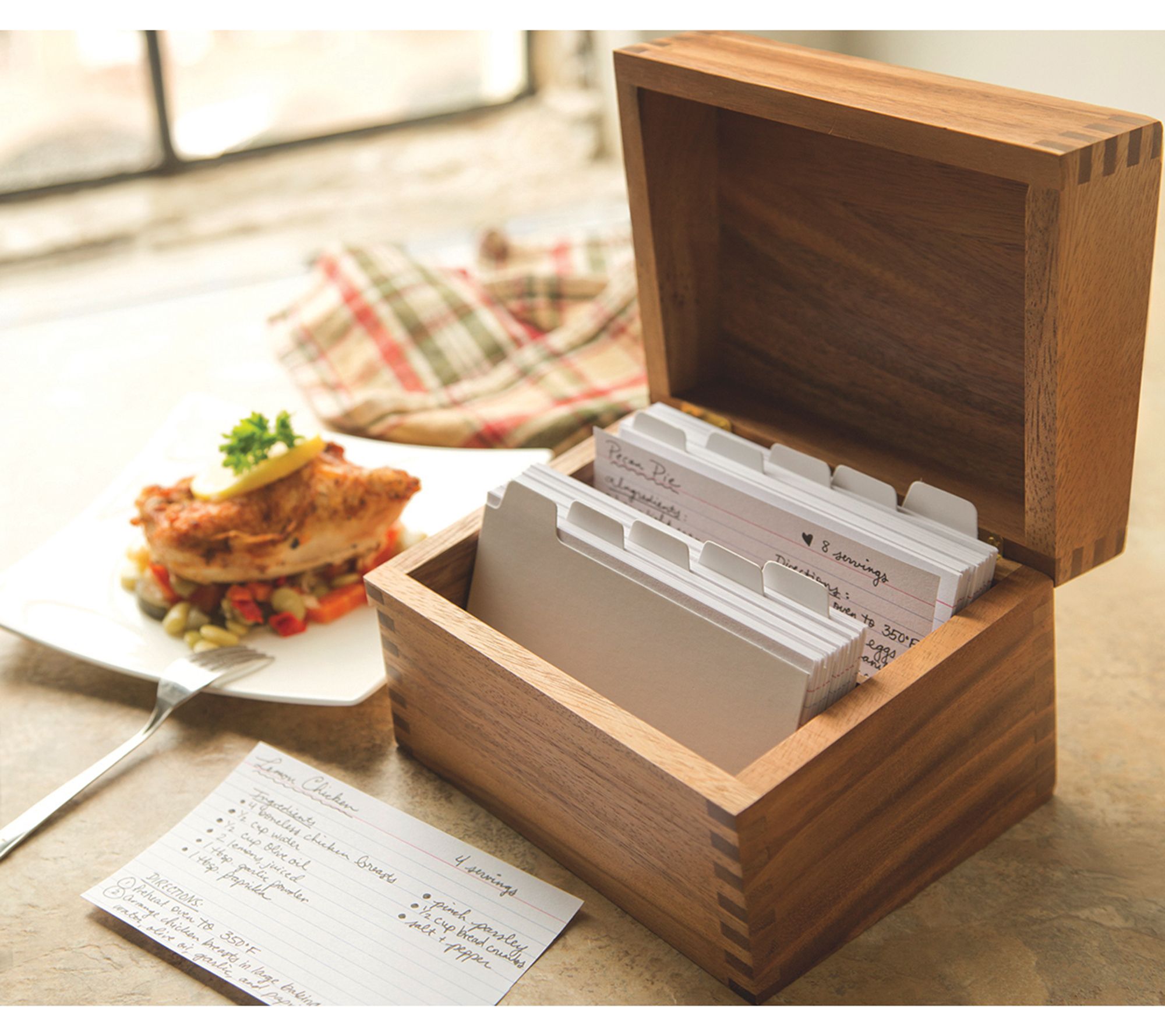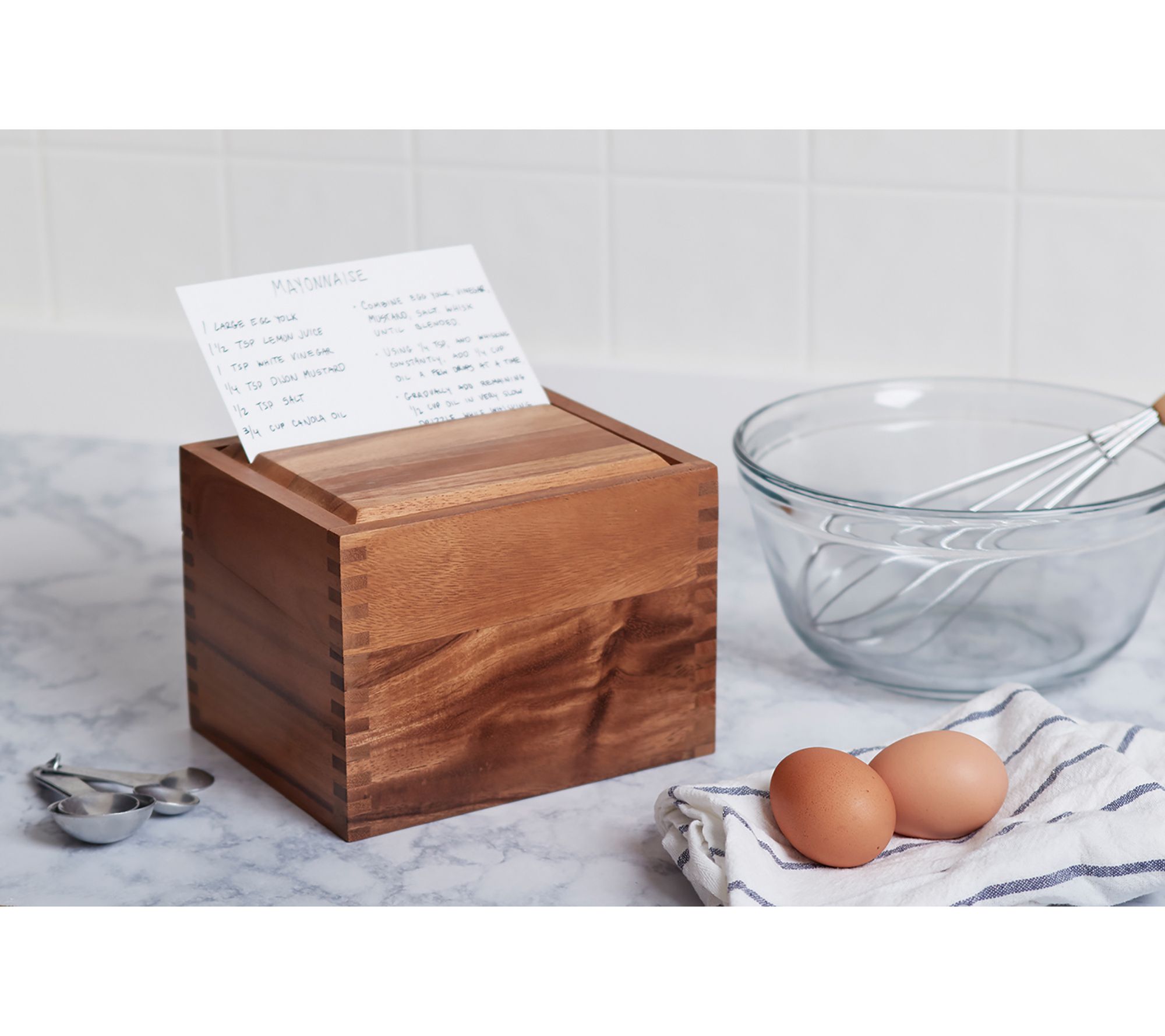 Organize your cherished recipes in style with the Ironwood recipe box. Made from stunning Acacia wood, this box boasts two interior compartments and includes 10 divider tab cards. The grooved lid holds your recipe card for easy readability, adding both functionality and a touch of charm to your kitchen. From Ironwood.