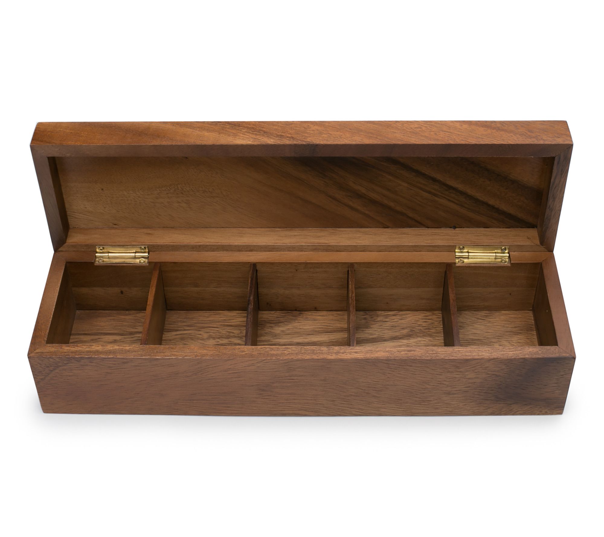 Ironwood brings a touch of elegance and organization to your kitchen or office with their Townhouse tea box. With five compartments, it's perfect for assorting your favorite teas, organizing small art supplies, or even storing jewelry. Crafted from stunning Acacia wood, its rich and shimmering colors make it a functional and beautiful addition to any space. From Ironwood.