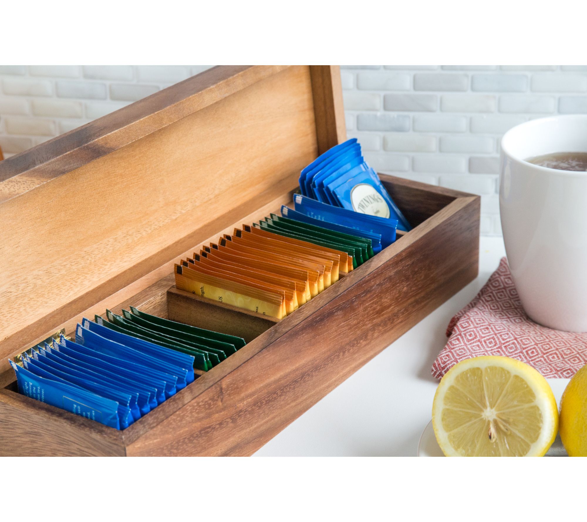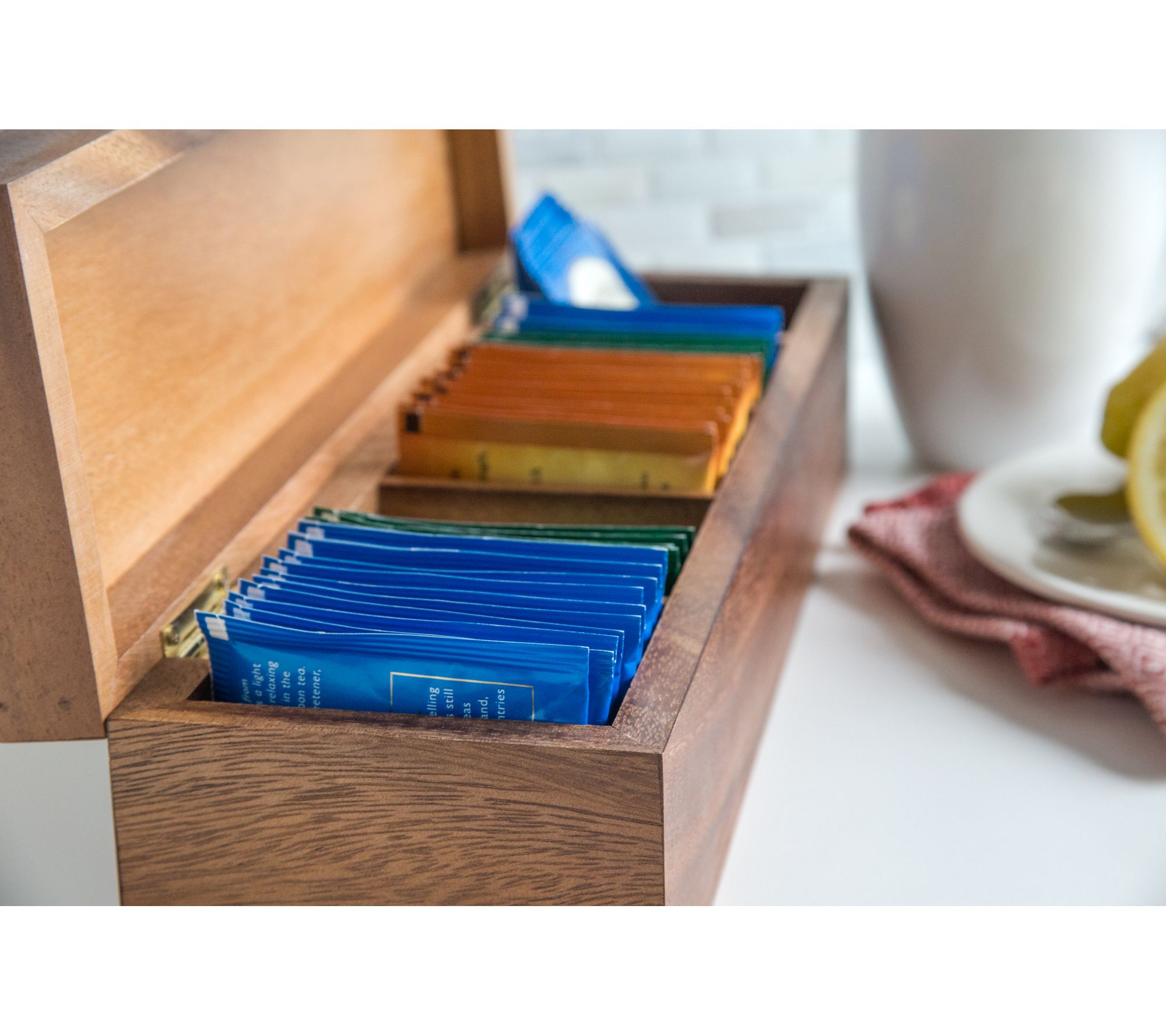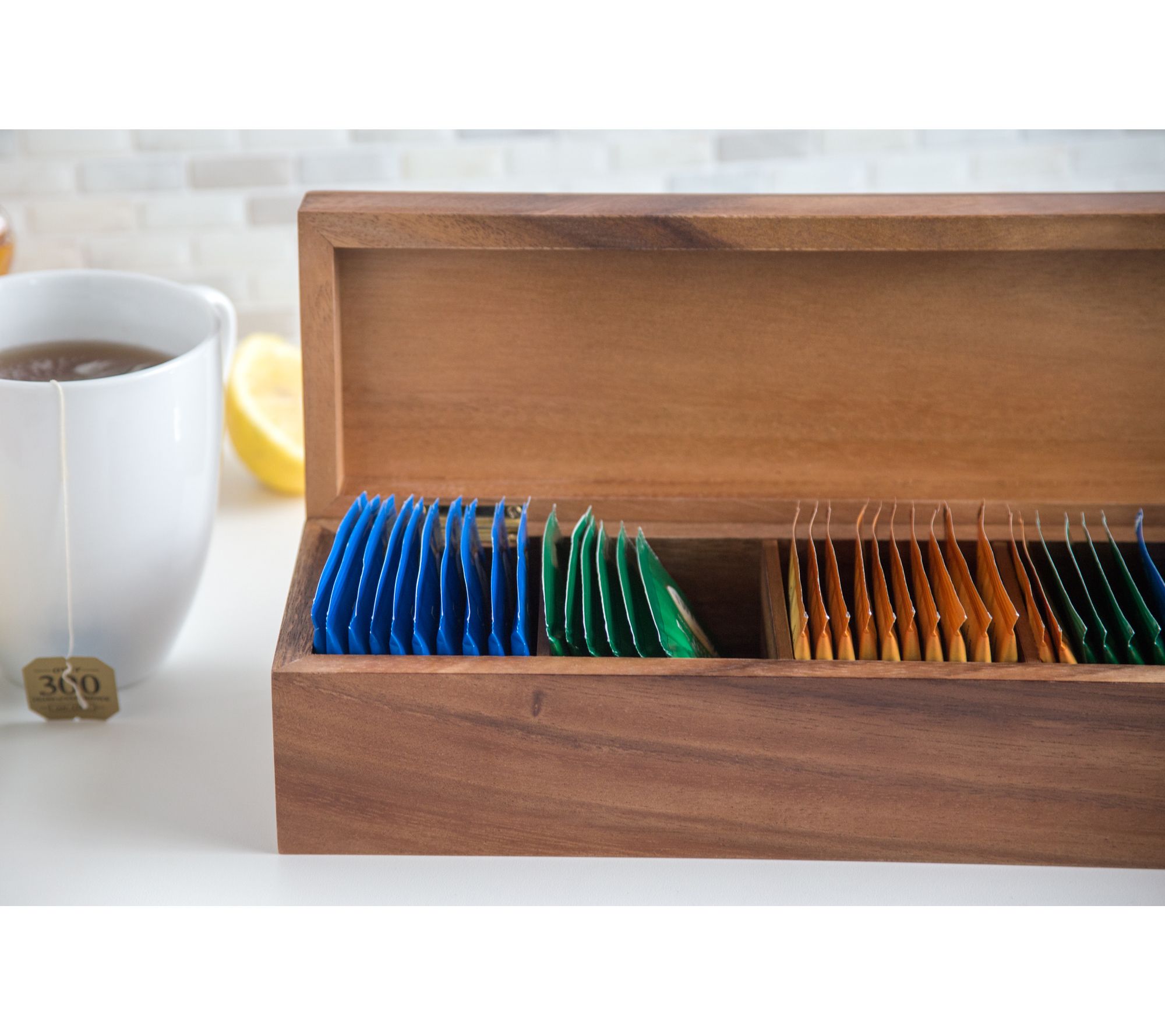 • Includes five-compartment tea box