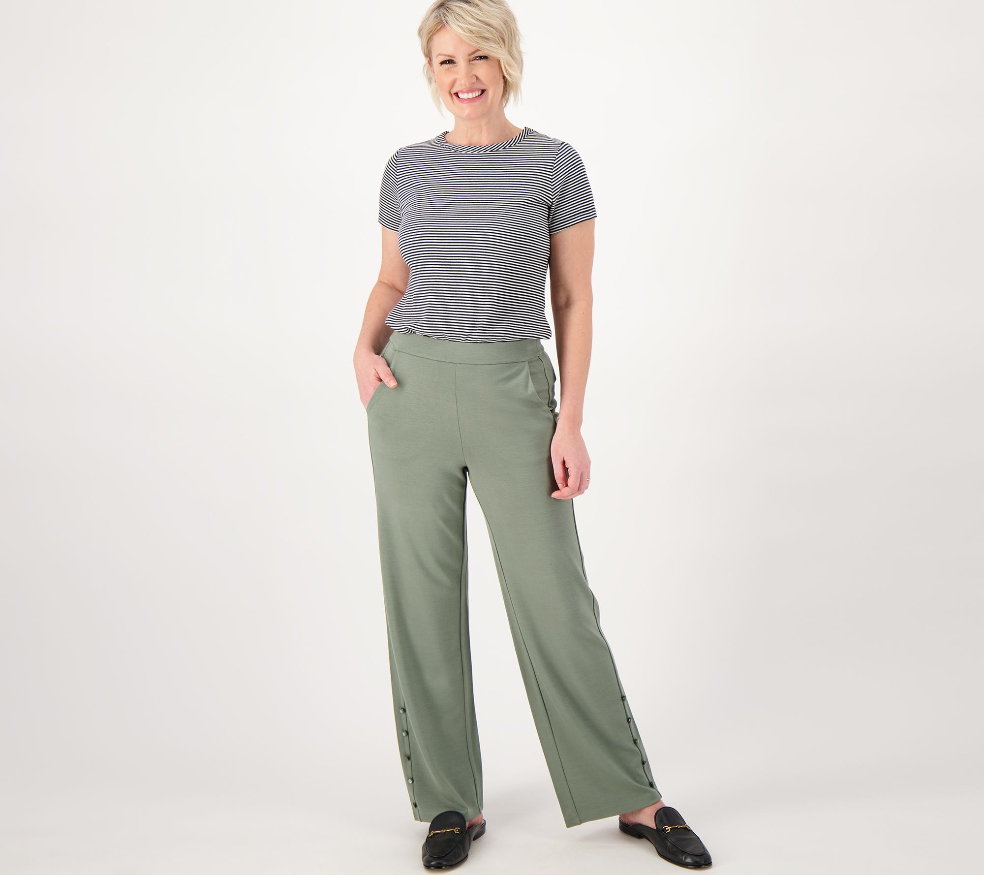 Super comfy and accented with stylish buttons, these cute-as-a-button ponte pants are an instant favorite. From Isaac Mizrahi Live!TM.
