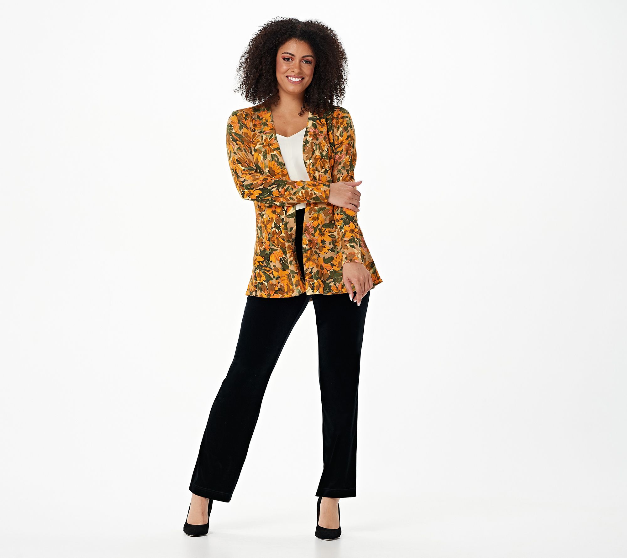 This floral-printed peplum cardigan will be a bright spot among a sea of neutrals in your winter wardrobe. From Isaac Mizrahi Live!
