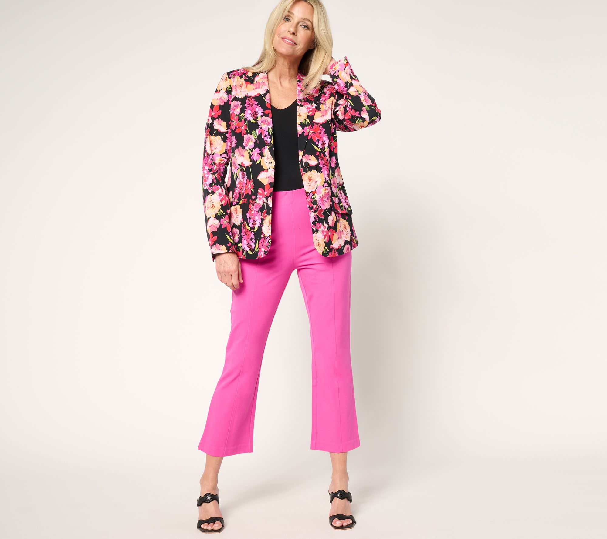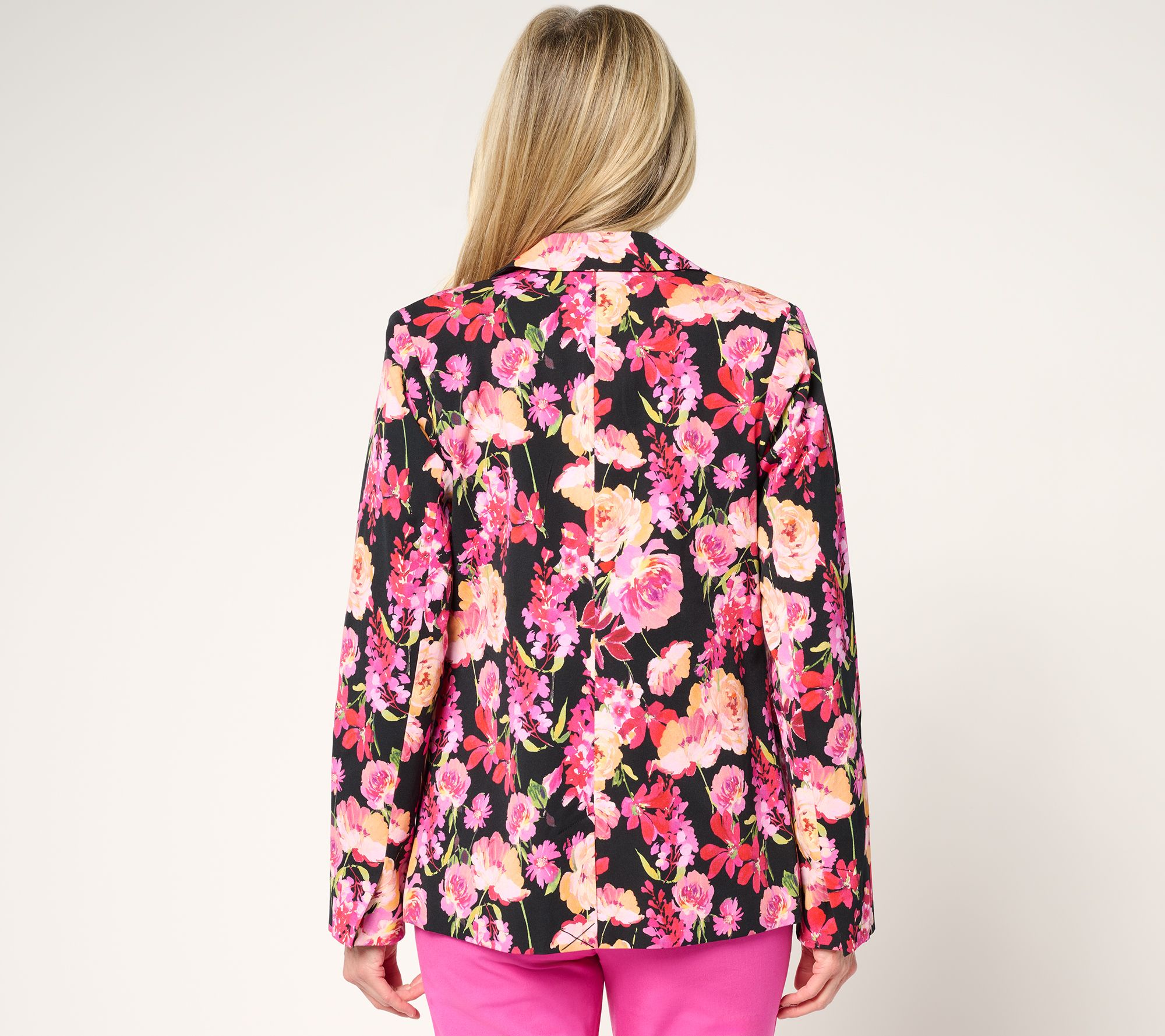 Unleash your inner fashionista with this floral-printed blazer, designed to blend effortless elegance and business-casaul comfort in one gorgeous silhouette. Ideal for work meetings or casual outings, its stretch fabric allows for easy movement while preserving posh style. Pair it with tailored trousers, daily denim, or dresses for a chic look. From Isaac Mizrahi Live!TM.