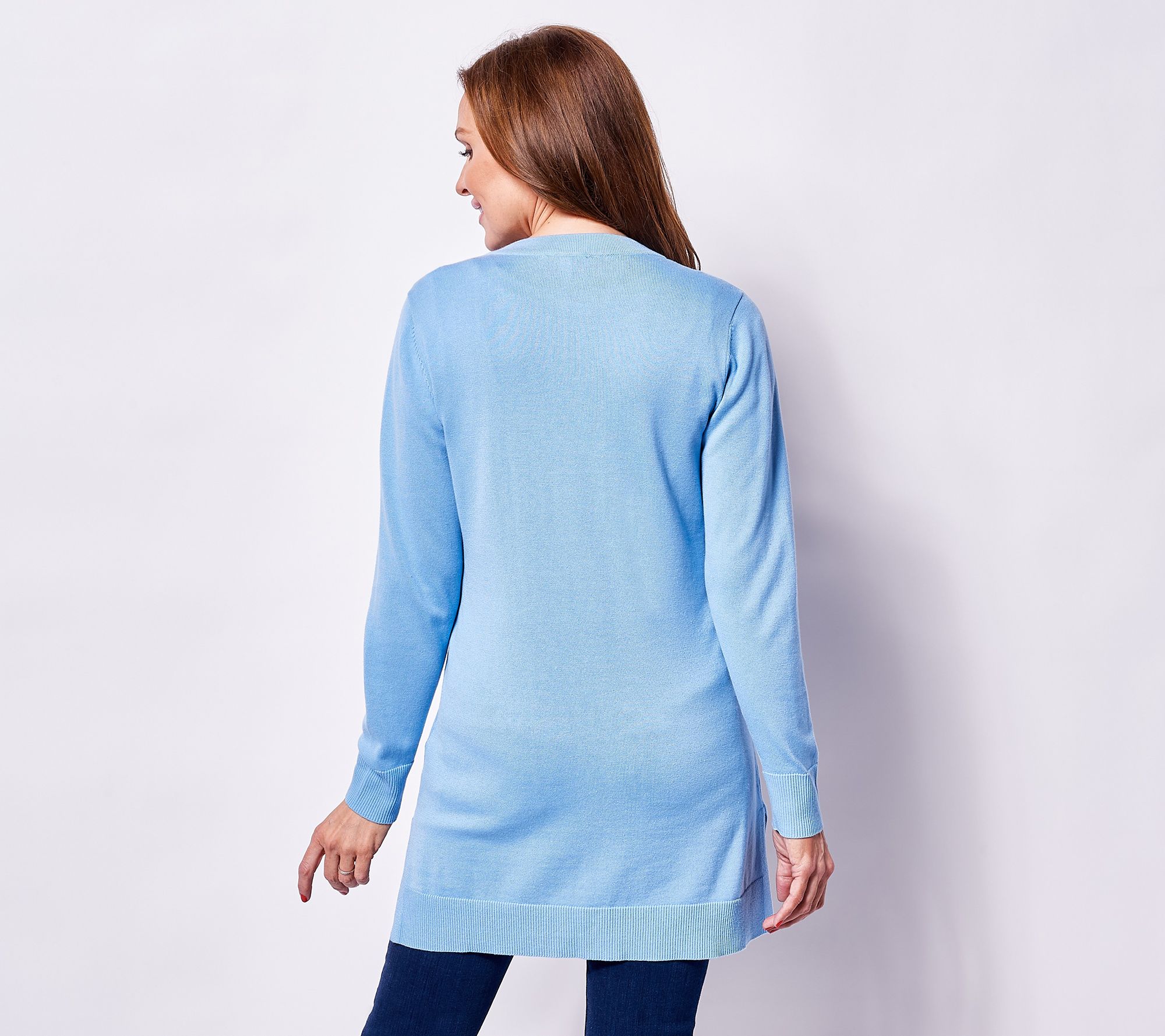 Don't you love a wear-everywhere cardigan you can throw over your jeans-and-top combo when the weather gets chilly? This relaxed piece is the perfect topper for all your favorite 'fits, keeping you just warm and cozy enough to enjoy a dinner out or evening in! From Isaac Mizrahi Live!TM.