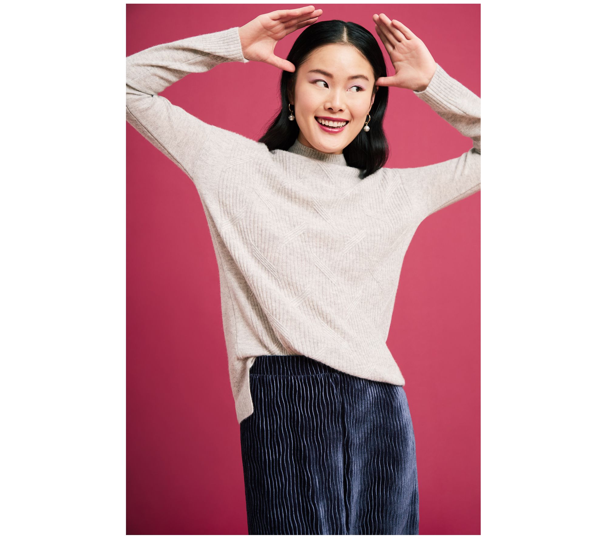 How do we spell best gift ever? C-a-s-h-m-e-r-e. Go ahead... splurge on that special someone with an Isaac sweater in 100% luxe cashmere. This trend-right mock neck takes a modern approach to the much-loved cable knit design, and its relaxed fit flatters every figure. Who's on your nice list? (It's totally ok if it's you!). From Isaac Mizrahi Live!TM.