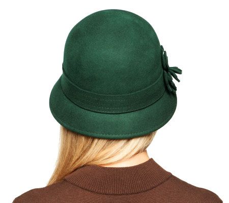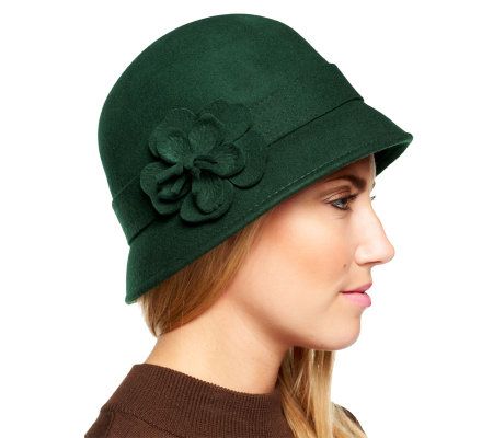 The bee's knees. Reach back to the 1920s for this vintage-inspired wool felt cloche. A flower detail keeps the look fun and feminine, while an adjustable elastic drawstring helps keep the clouche in place. From Isaac Mizrahi Live!(TM).