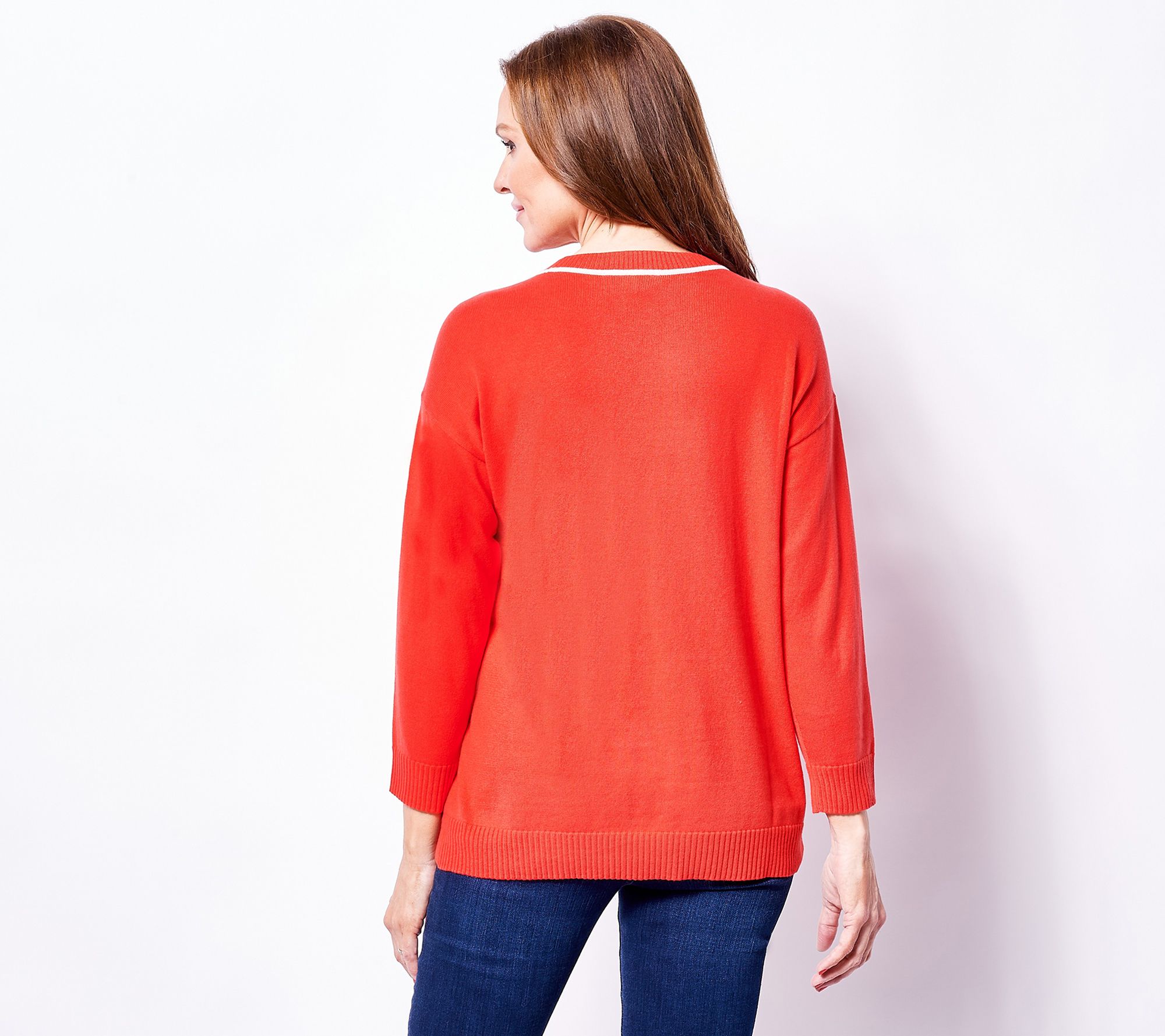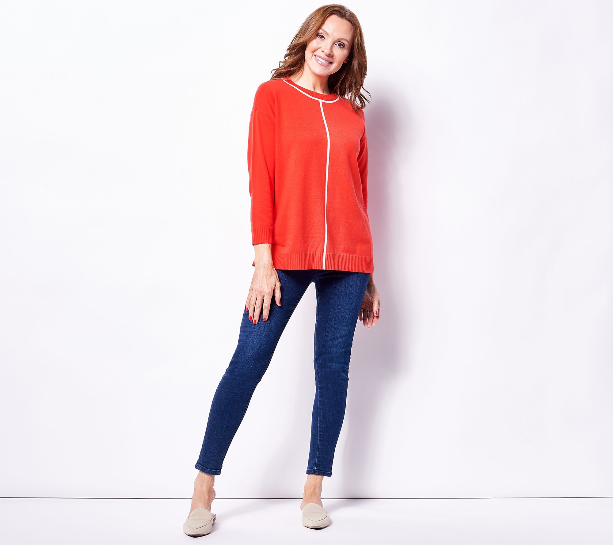 Need to look polished and pulled-together in a jiff? Simply slip on this drop-shoulder pullover with contrast piping and head out the door -- it's that simple! Just watch how much you get done, too. From Isaac Mizrahi Live!TM.