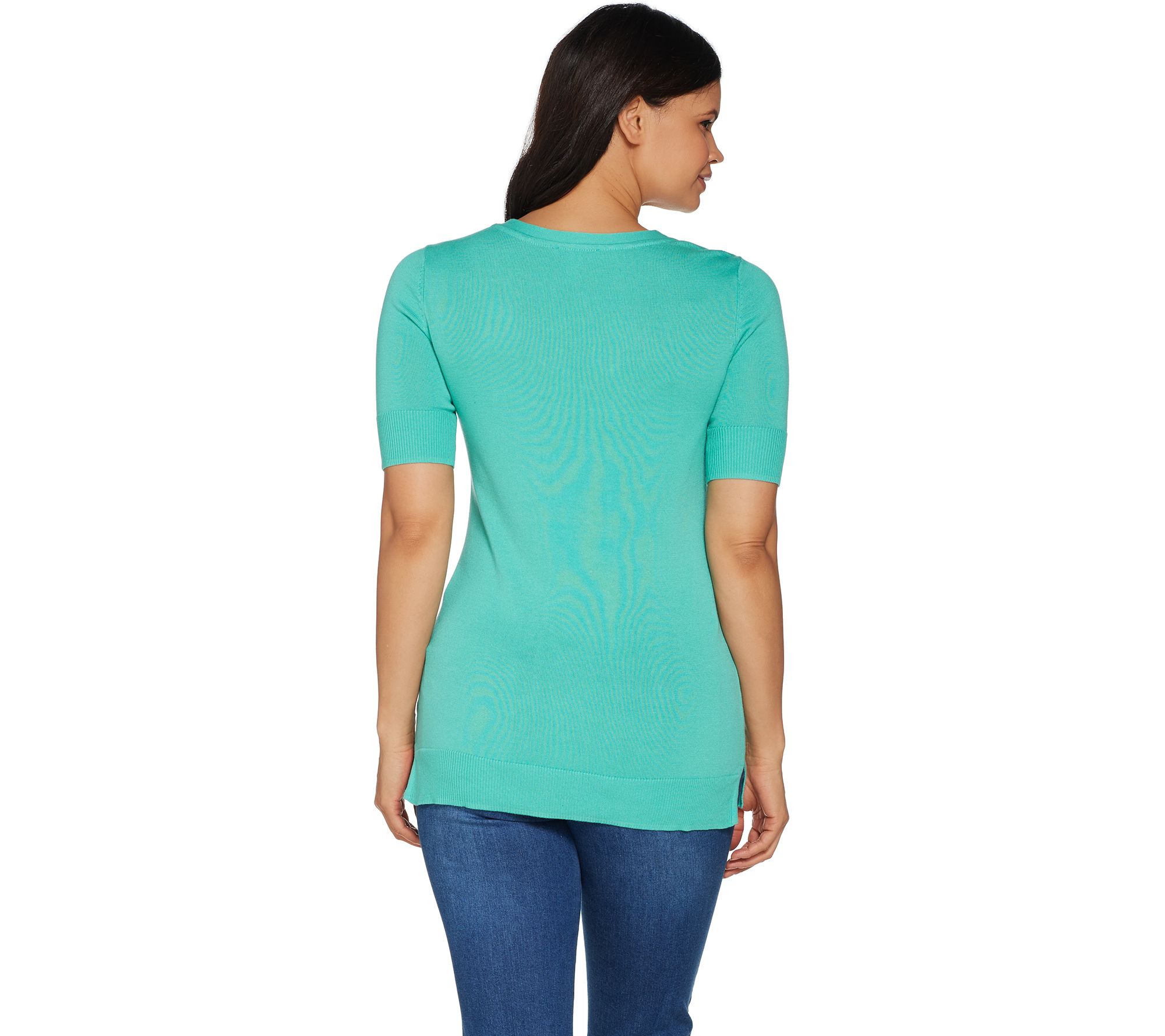 Isaac Mizrahi Live! Elbow Sleeve Cross-Neck Tunic Sweater