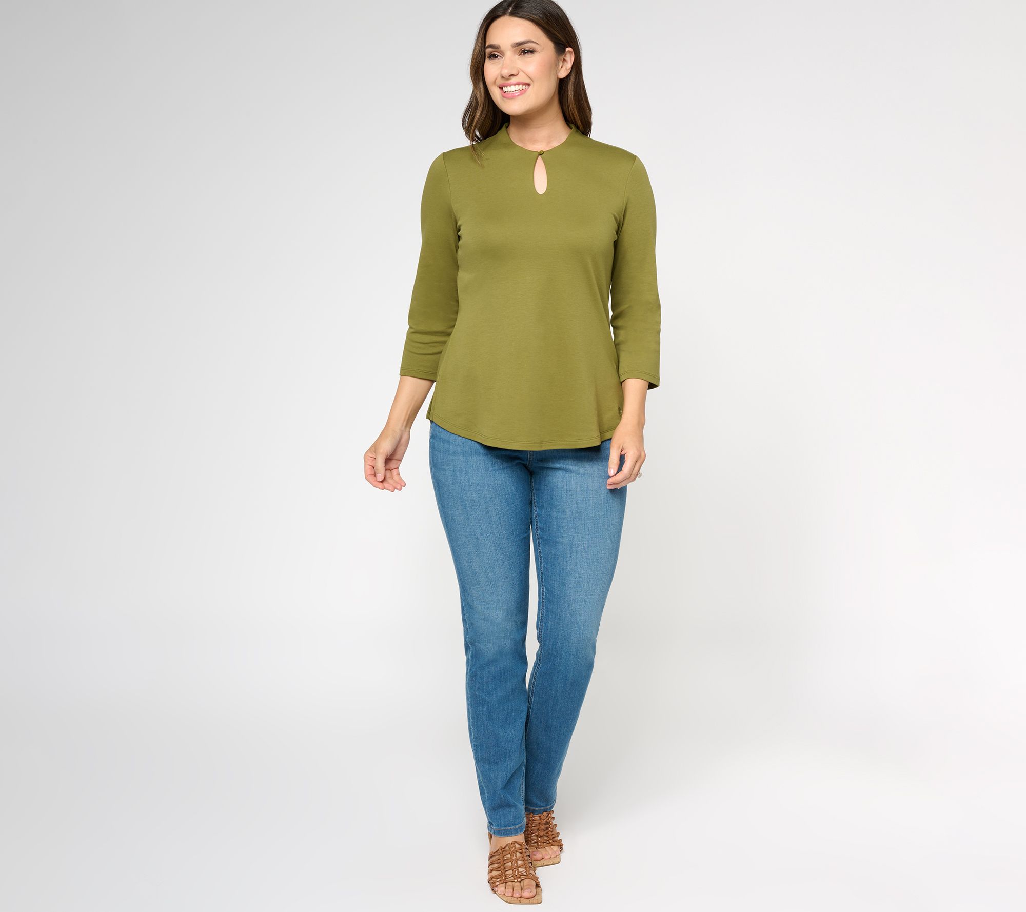 This Pima cotton tee embraces your casual cool vibe, with a subtle keyhole detail to give the casual classic an added style boost. From Isaac Mizrahi Live!TM