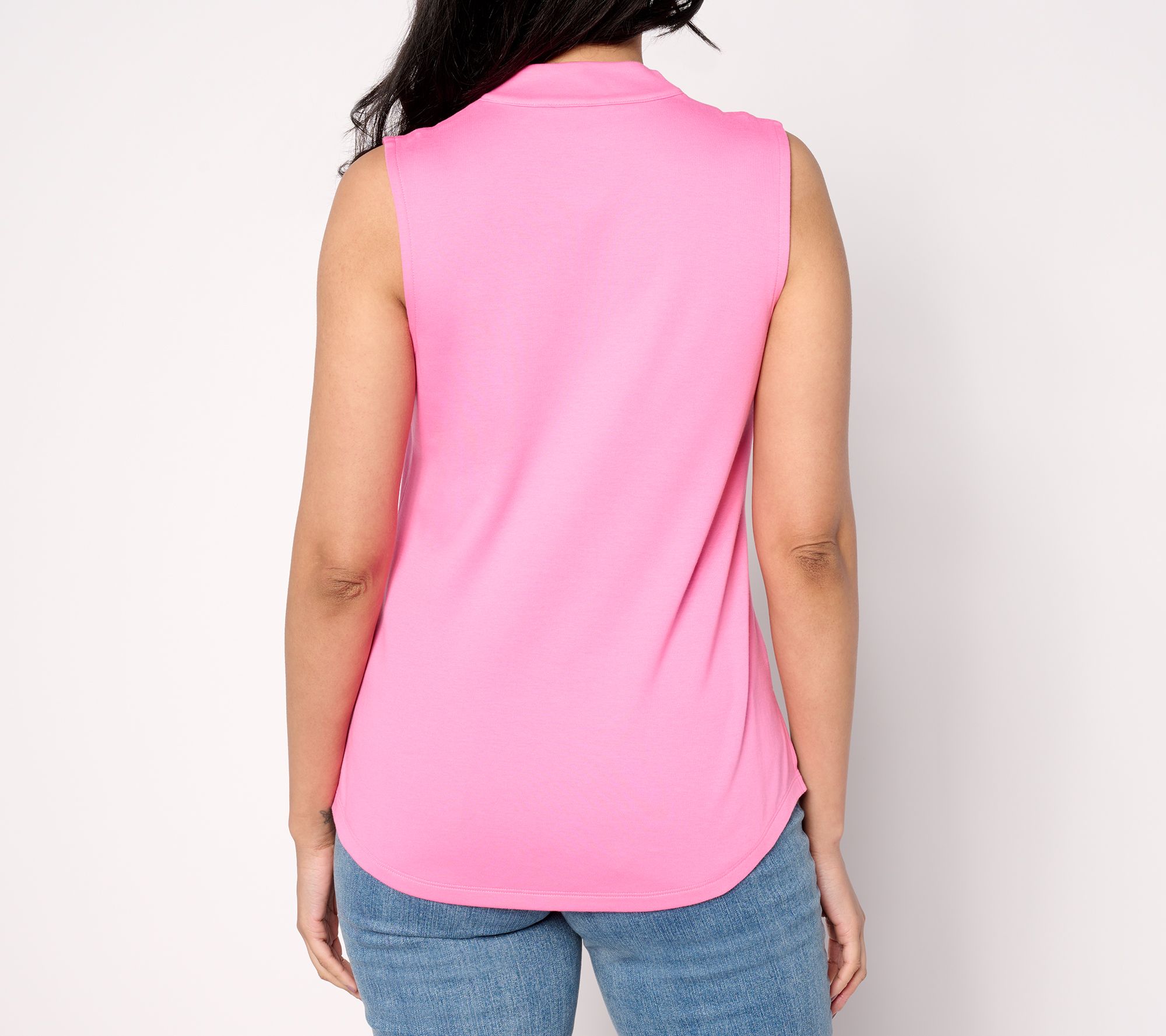 Isaac raises style standards (again!) with this sleeveless knit top that goes from weekend to week day depending on your wardrobe. The raised back design and curved hem give it a more sophisticated silhouette that works equally well with denim shorts and gladiator-style sandals as it does with trousers and a lightweight blazer. From Isaac Mizrahi Live!TM.