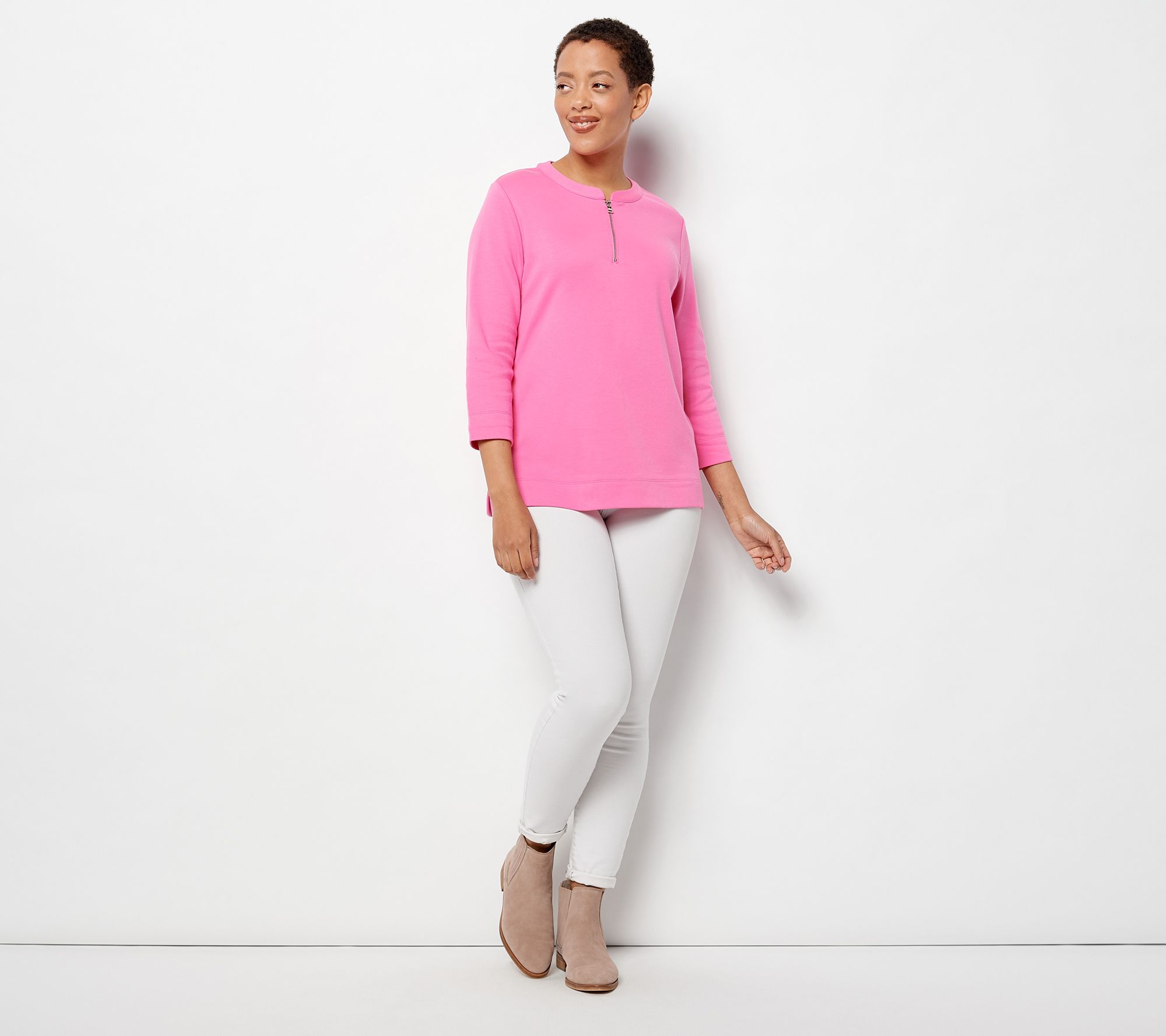 Isaac Mizrahi Live! Essentials_Half Zip Top with 3/4 Sleeve