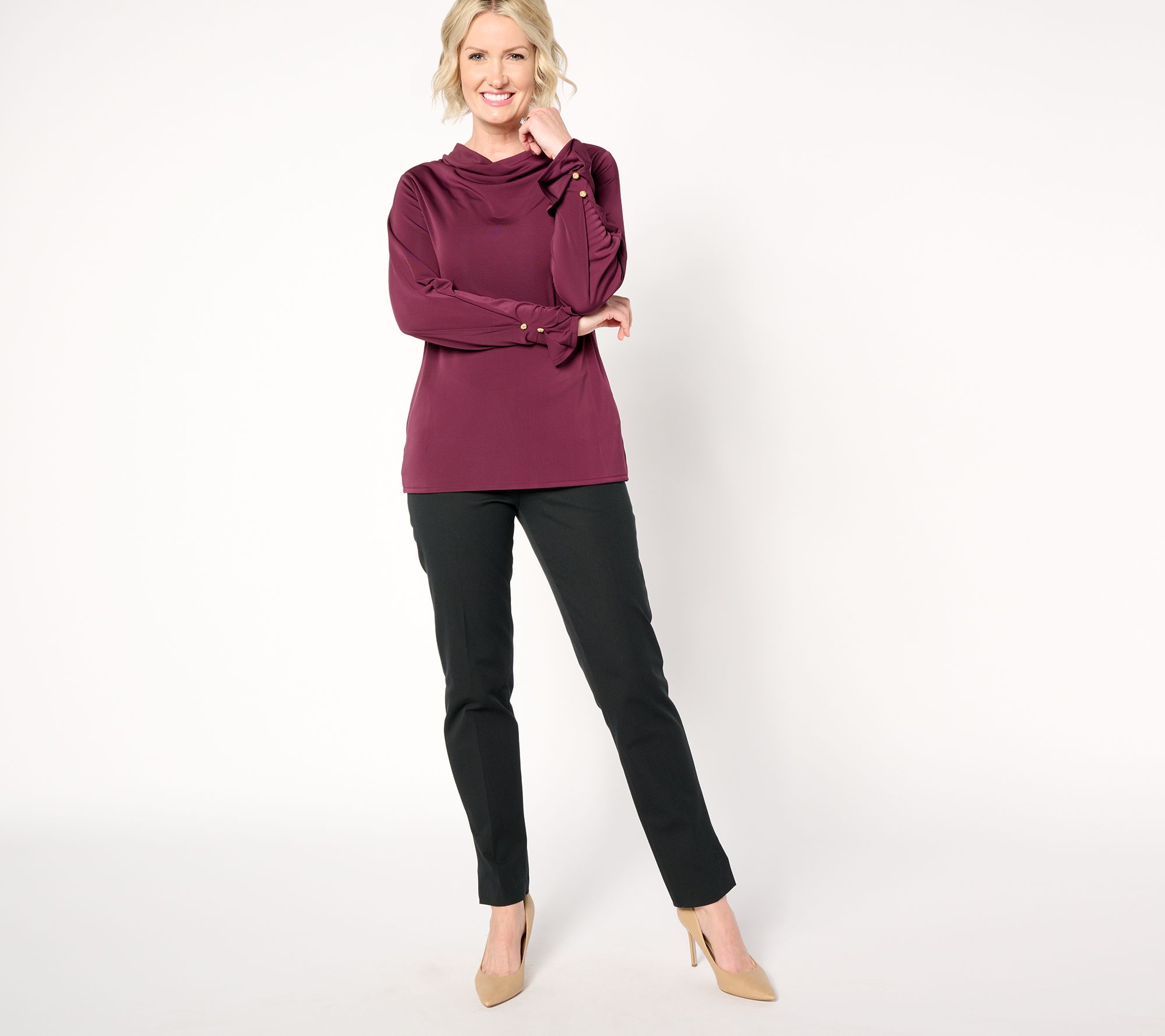 Your office look just got an upgrade! This stunning top is all about the details -- from the cowl neckline to the goldtone buttons on the sleeves. From Isaac Mizrahi Live!TM