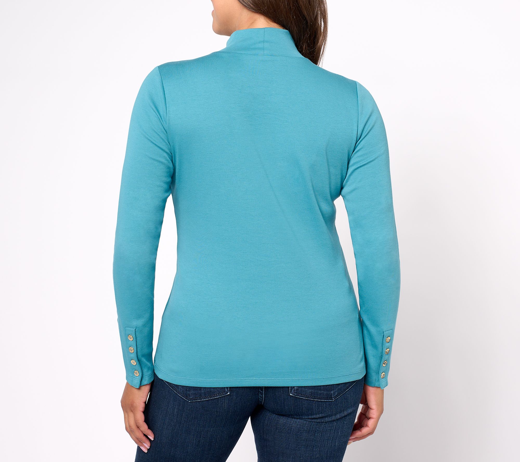 The kind of piece everyone needs in their closet, this mock-neck top is effortless and elegant. From Isaac Mizrahi Live!