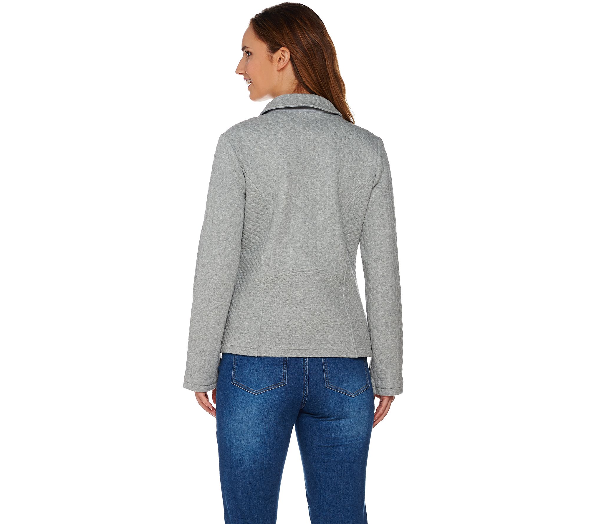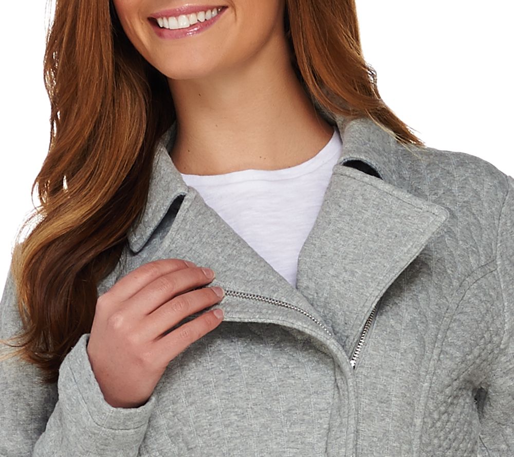 Isaac Mizrahi Live! Mixed Quilted Knit Motorcycle Jacket