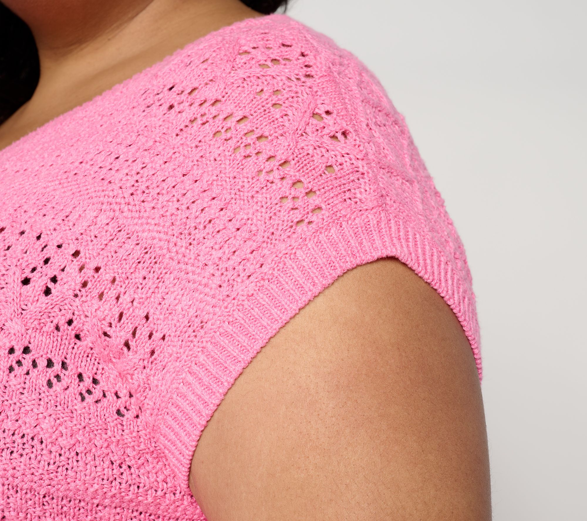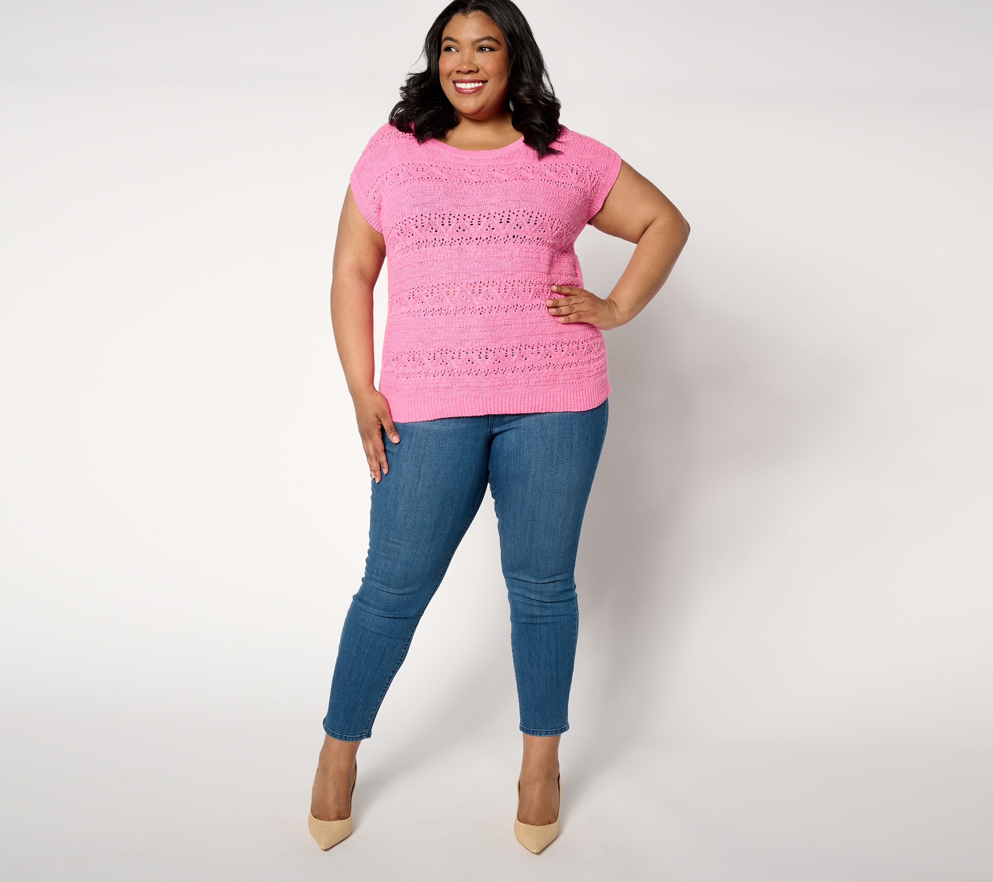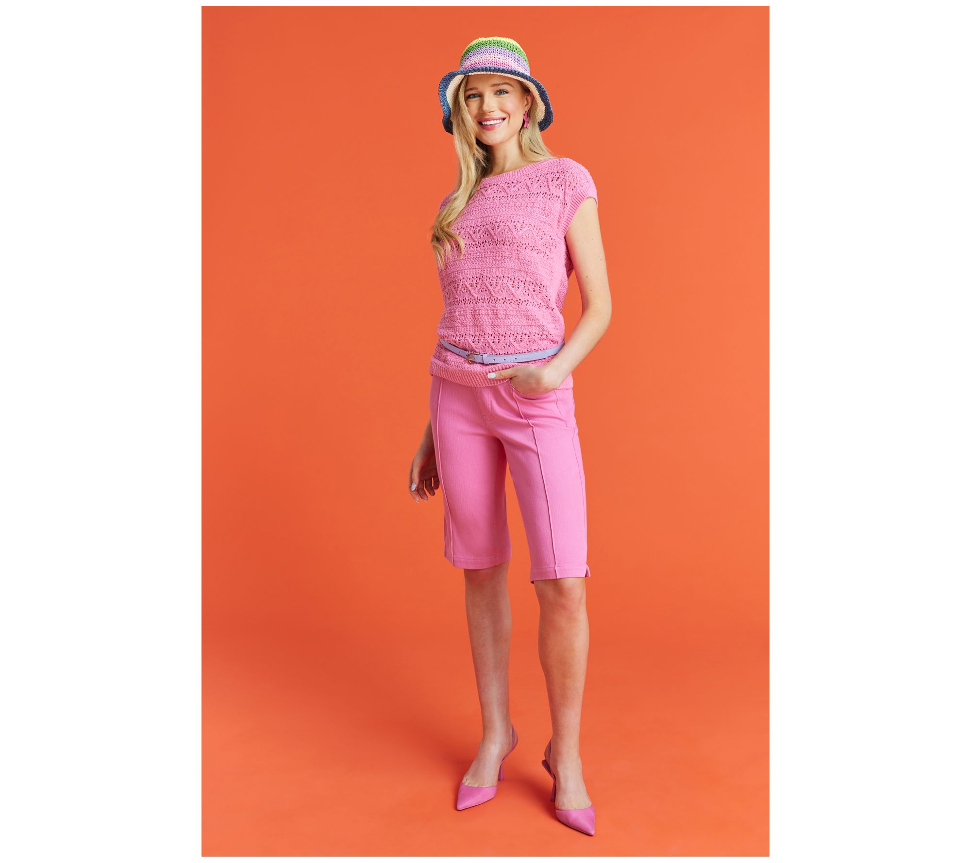 Haven't gotten in on the summer sweater trend yet? Start here! This pretty boatneck style wears like a tee but feels way more sophisticated (and just the right amount of warm-weather cozy), thanks to an airy open stitch and adjustable ribbed hem. Pair with denim, Bermudas, pencil skirts, and more. From Isaac Mizrahi Live!TM.