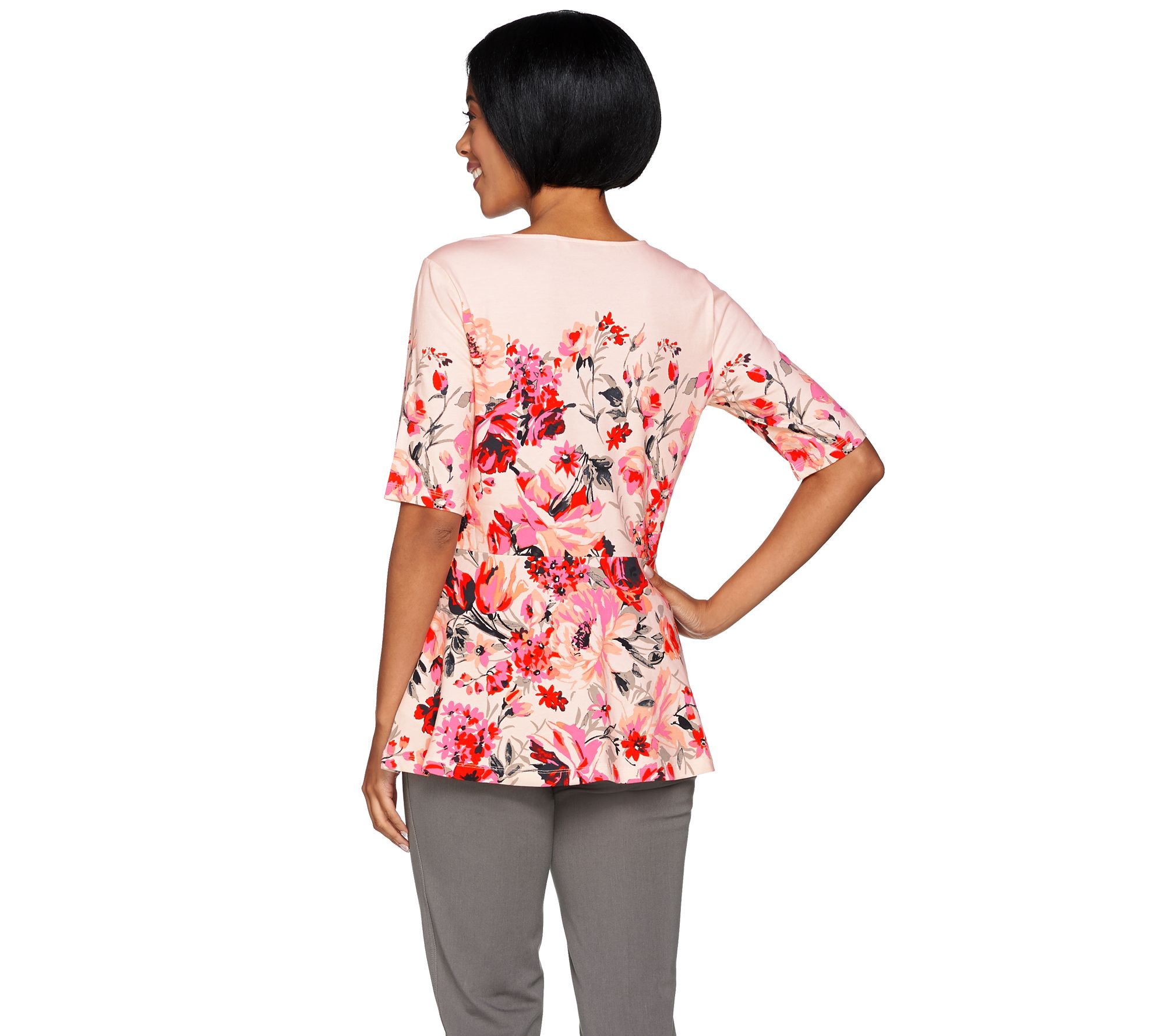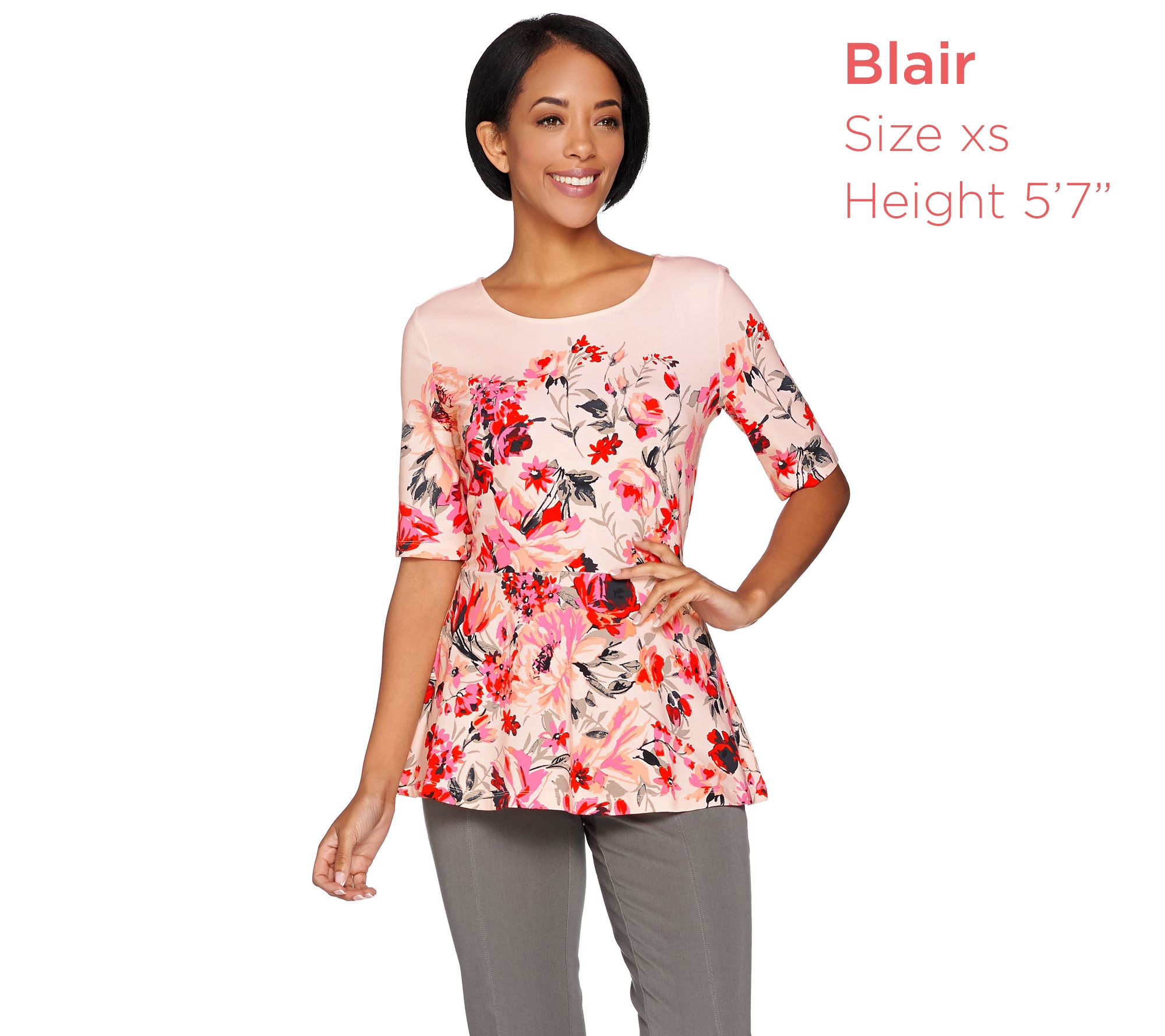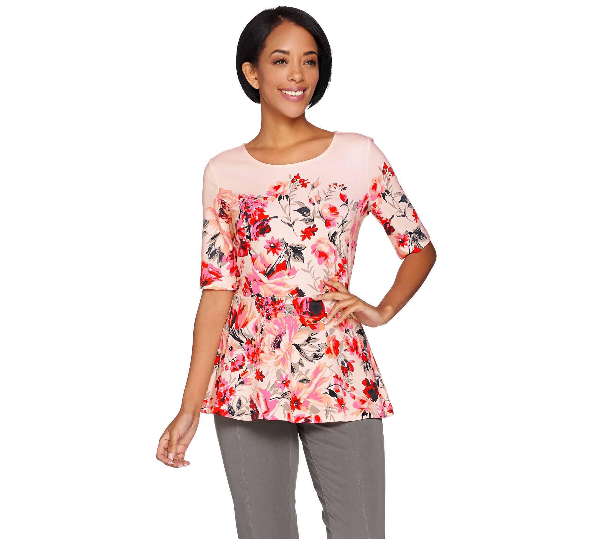 Have fun with florals wearing this pretty peplum top by Isaac Mizrahi, complete with above the elbow sleeves to give you a little extra coverage. From Isaac Mizrahi Live!(TM).