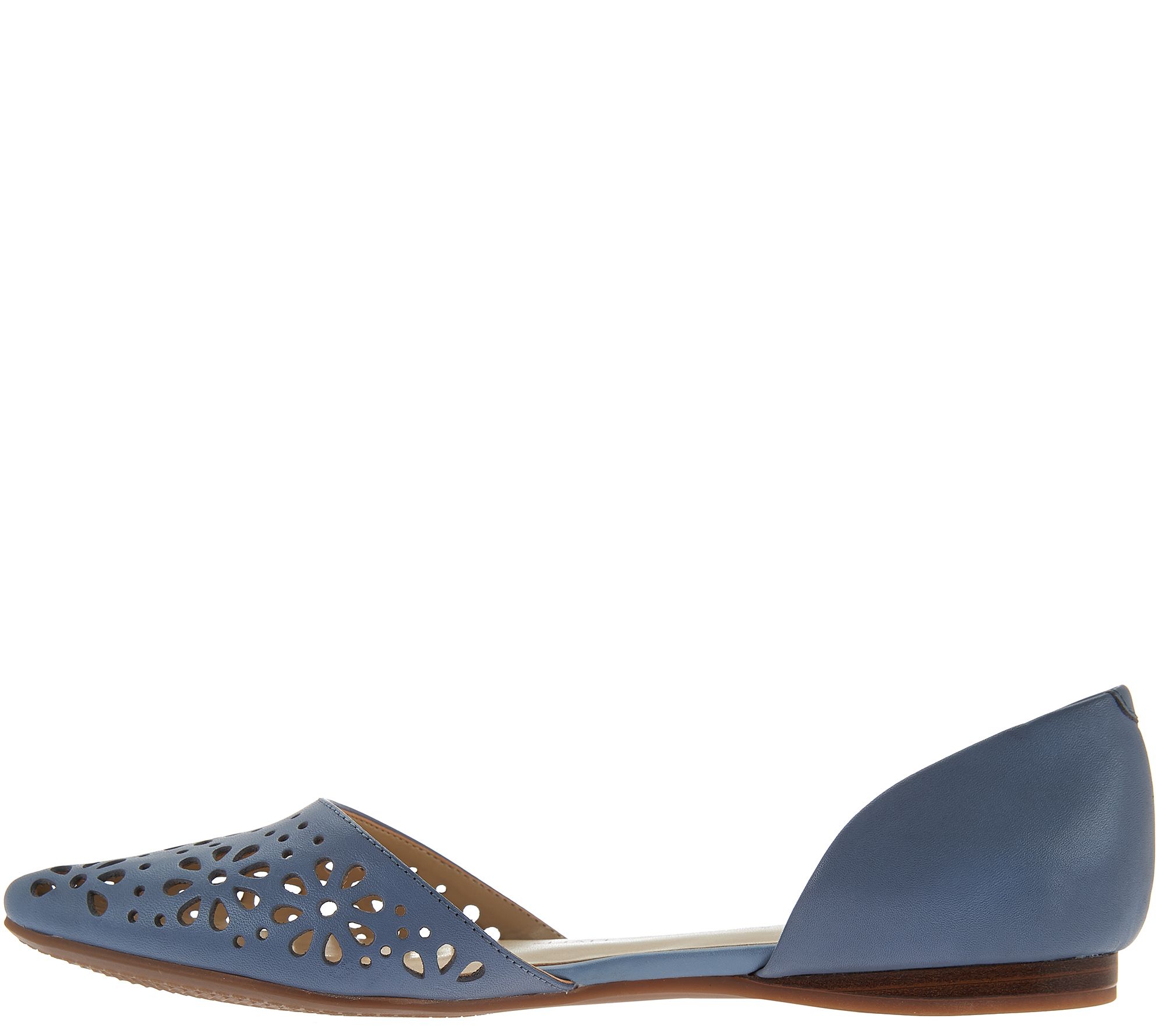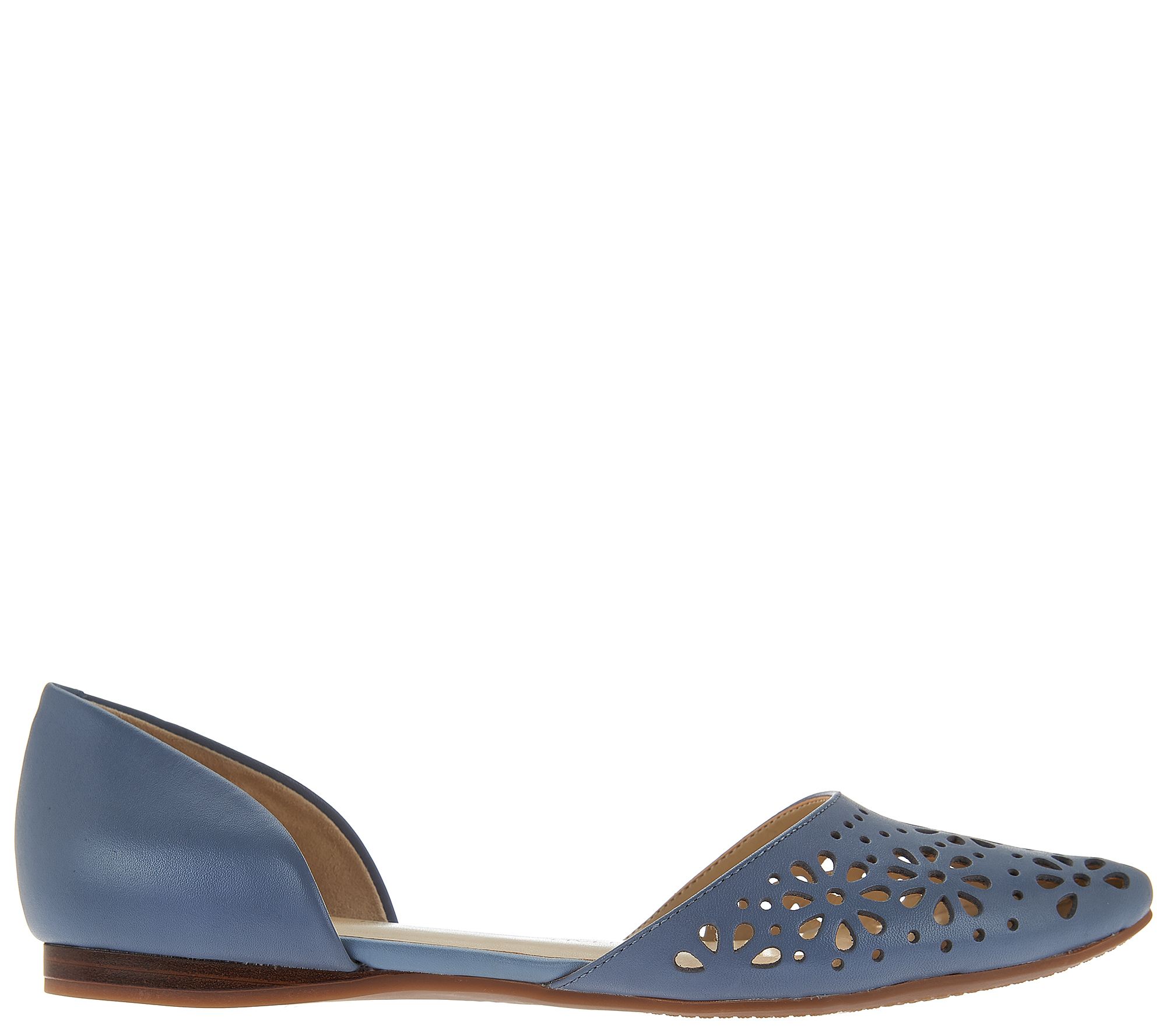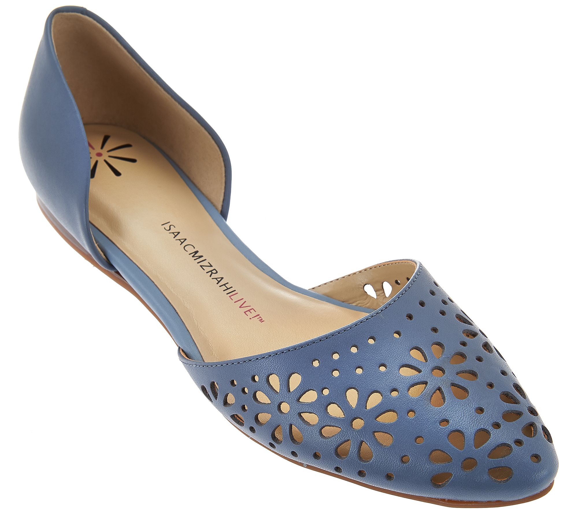 Isaac Mizrahi Live! D'Orsay flats, perforated leather, padded insole, outsole has grooves for traction. Content:Leather Upper;Balance manmade. COO:Imported. Heel height approx.:3/8". *Fit:True to size. (S).
