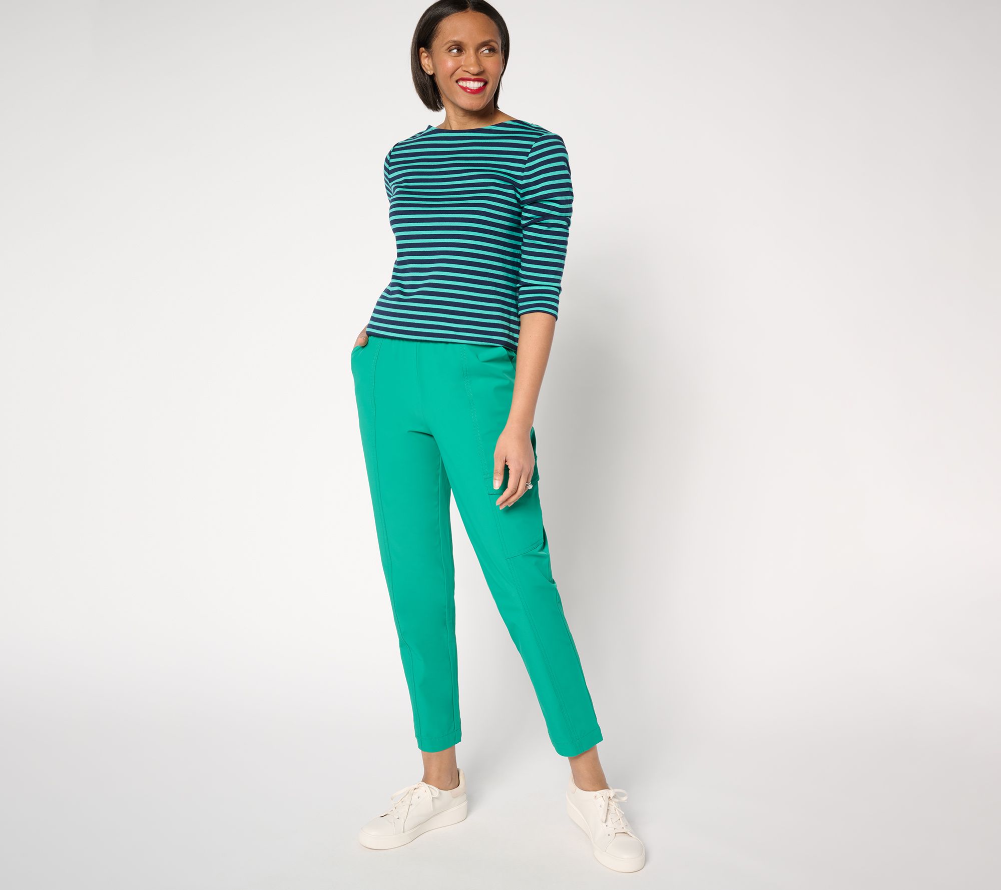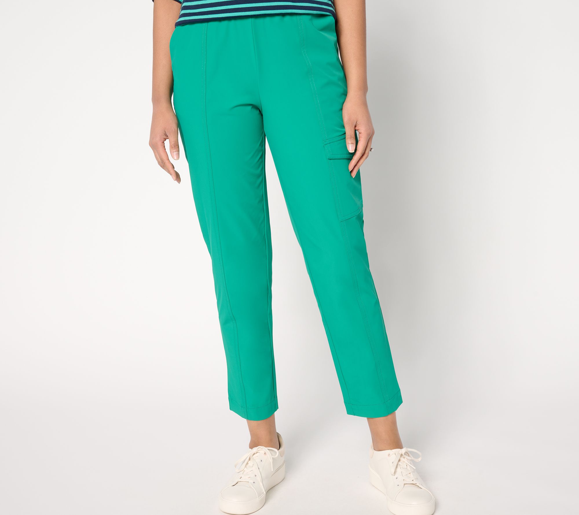 Saturday plans at the club? Tee off in these slim straight-leg pants from Isaac, engineered with plenty of stretch to accommodate your killer swing. And if your clubhouse is a little smaller in scale (aka the grands hangout), these pull-ons let you spend the weekend playing board games while providing endless PB&Js. From Isaac Mizrahi Live!TM.