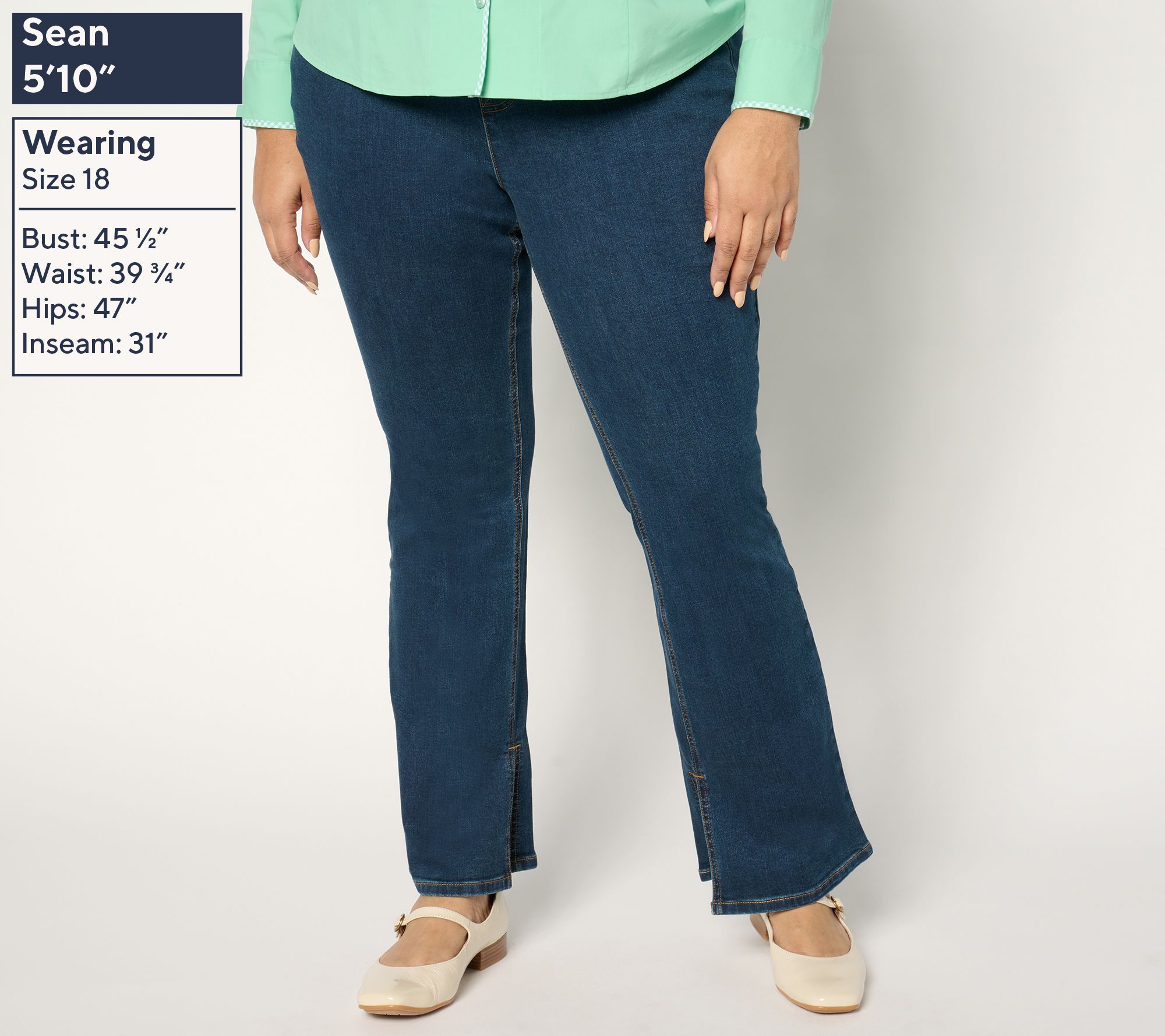 Your daytime adventures need a reliable, stylish partner, and these True Denim slim boot-cut jeans from Isaac fit the bill. With a classic fitted look that feels effortlessly chic, the design features a high inseam slit to showcase everything from summery slip-in sneaks and strappy sandals to your cooler-weather booties and shooties. But, don't forget -- this delicious denim is just as flattering and versatile for nighttime outings, too! From Isaac Mizrahi Live!TM.