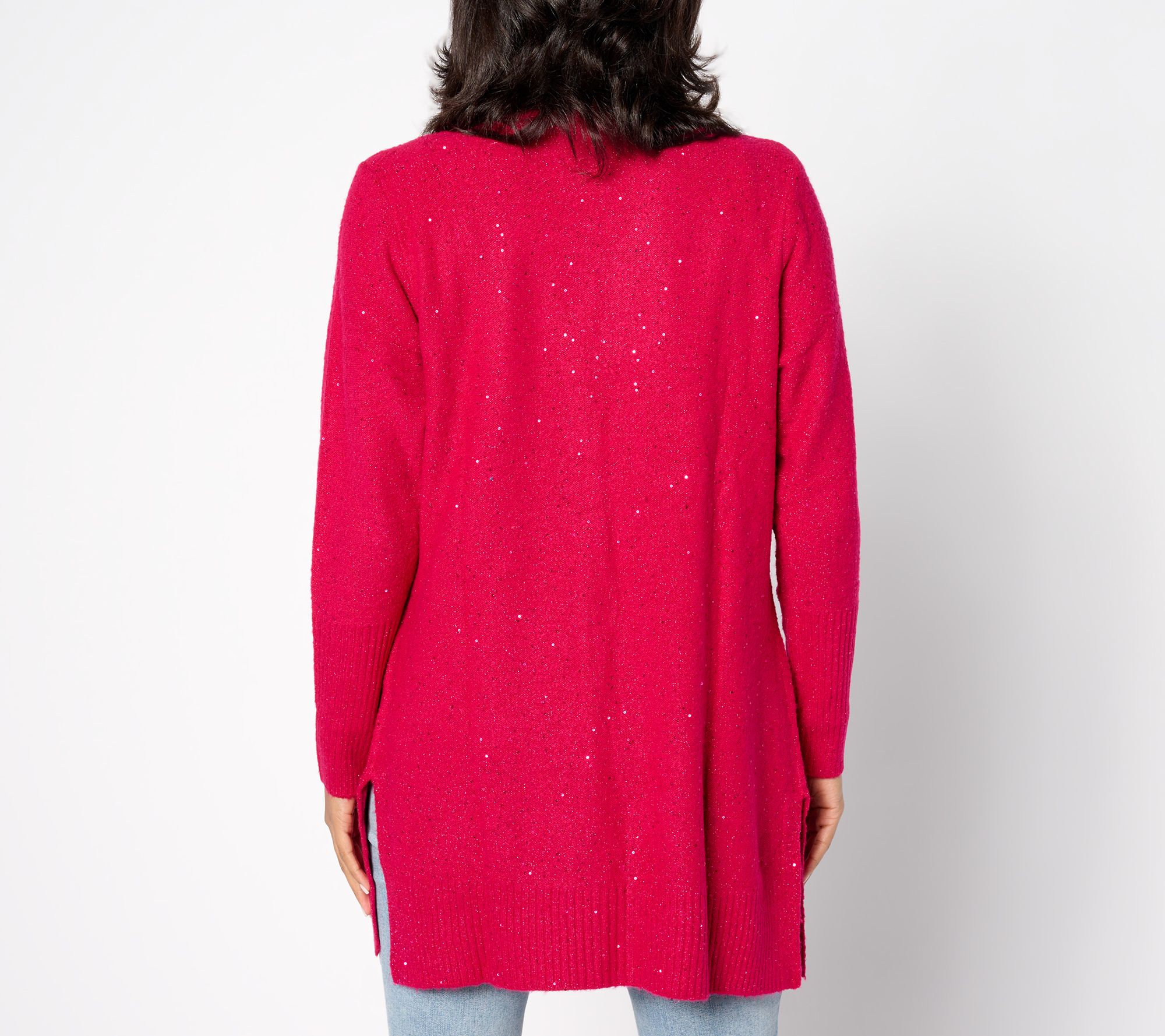 Party-ready? You bet! This sequin-yarn cardigan is kissed with sparkle and shine and so ready to celebrate. It slides as easily over a satin slip dress with strappy heels as it does a sleeveless turtleneck, straight-leg jeans (or faux leather leggings!), and suede boots. So don't save it just for an occasion that calls for something special -- wear it when you want to feel special. From Isaac Mizrahi Live!TM.