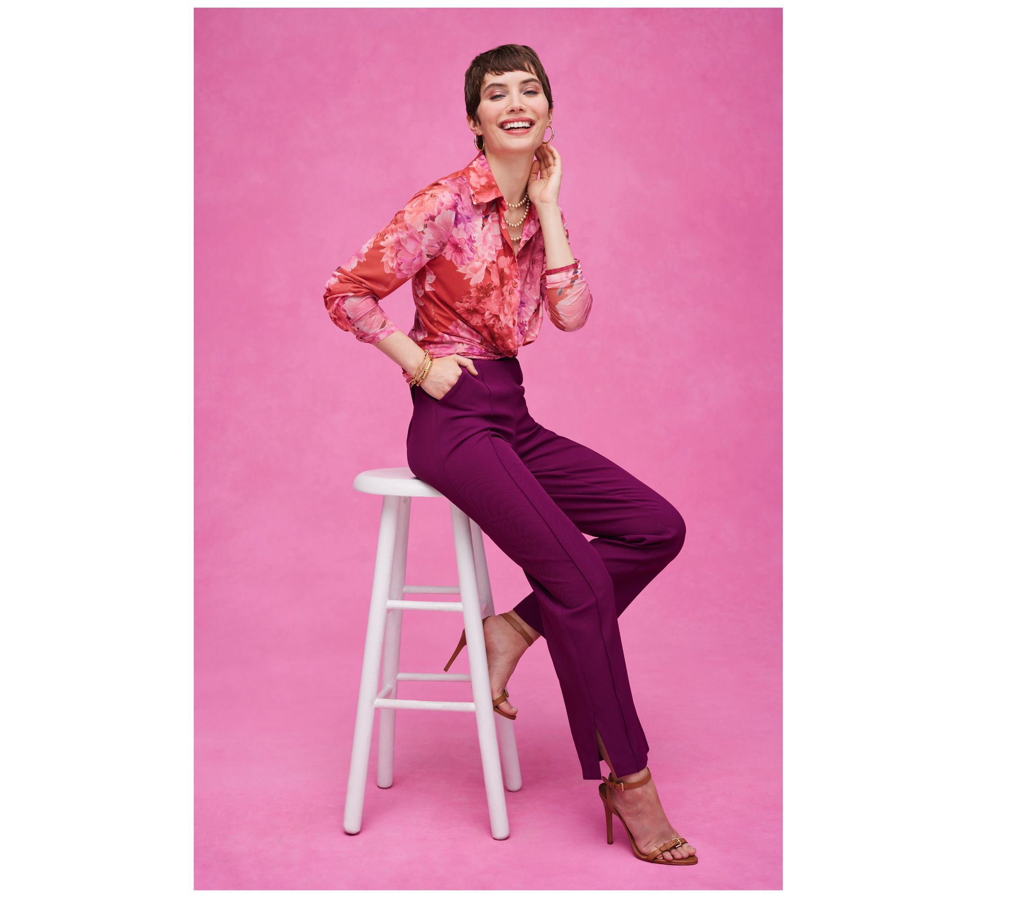 Polished and professional (but with a touch of spandex for stretch), these twill pants provide the perfect start to your everyday outfits, finished with a pintuck detail to complete the timeless silhouette. From Isaac Mizrahi Live!TM