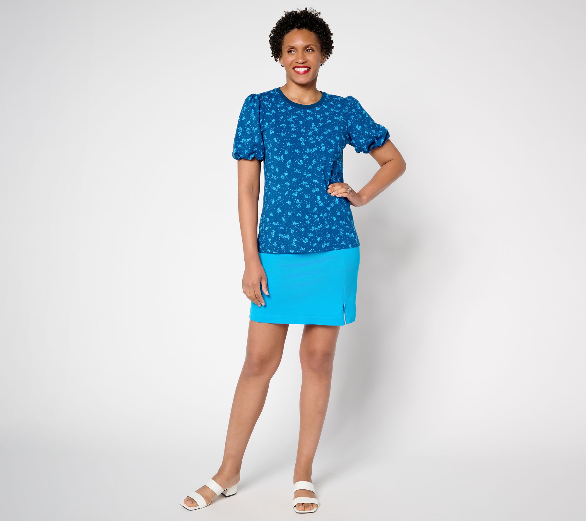 A slice of Isaac A-La-Modal? Yes, please! This sweetly printed top satisfies our craving for casual-chic options with its puffed short sleeves and soft cotton/modal/spandex knit. It plays perfectly for midday meetups, office hours, or easy weekend wanderings. From Isaac Mizrahi Live!™.