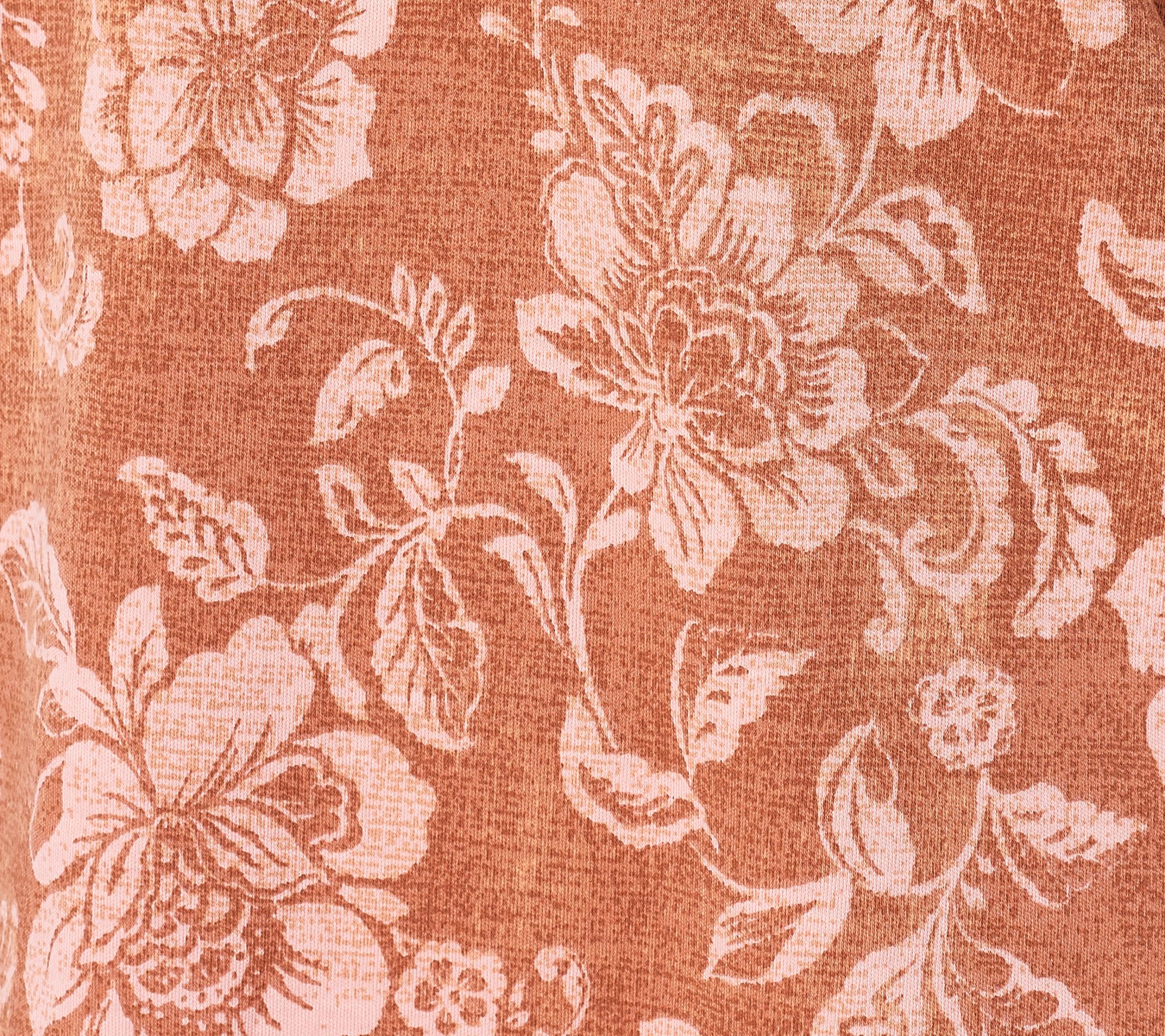 Features: V-neckline, allover print, side slits, 3/4-length sleeves