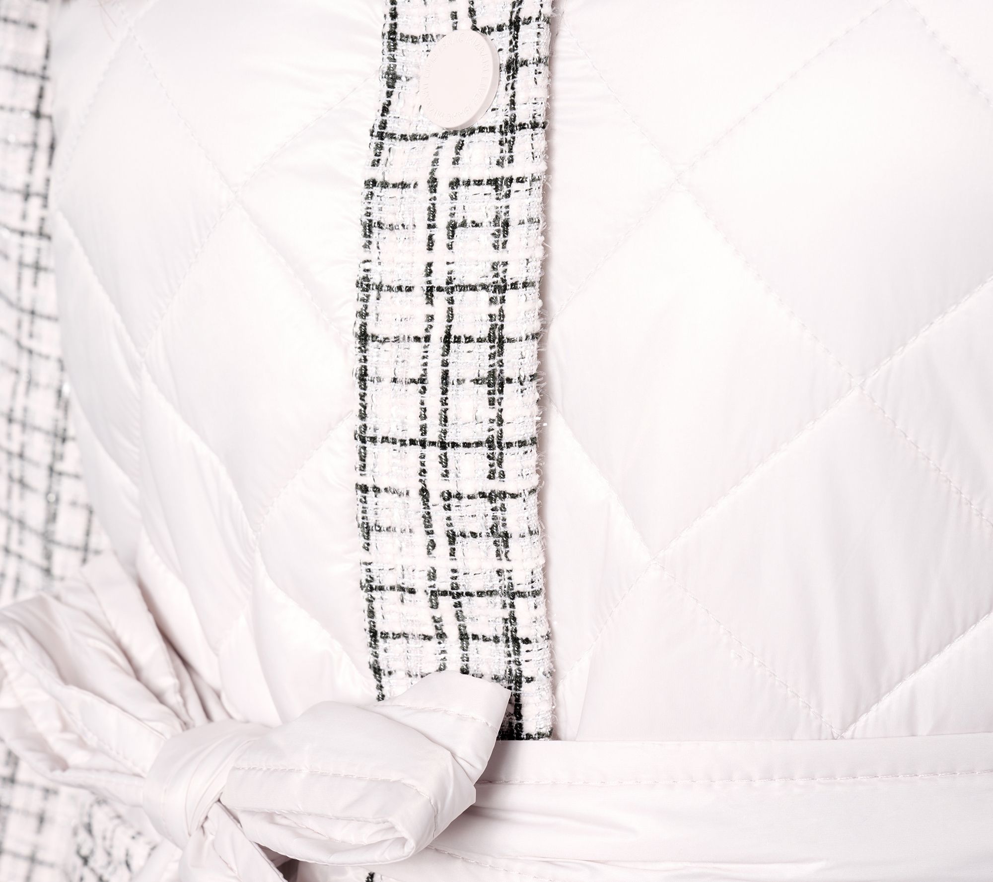 Looking for a coat upgrade? Treat yourself to this quilted belted coat, complete with tweed accents for an extra dose of style. From Isaac Mizrahi Live!TM.