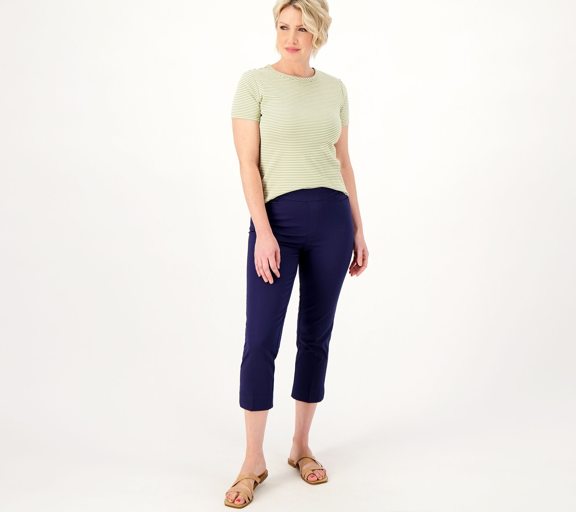 Who knew looking this good could be so easy? Simply pull on these stretch crop pants with a fitted shirt and ballet flats and you'll be ready to roll. From Isaac Mizrahi Live!TM.
