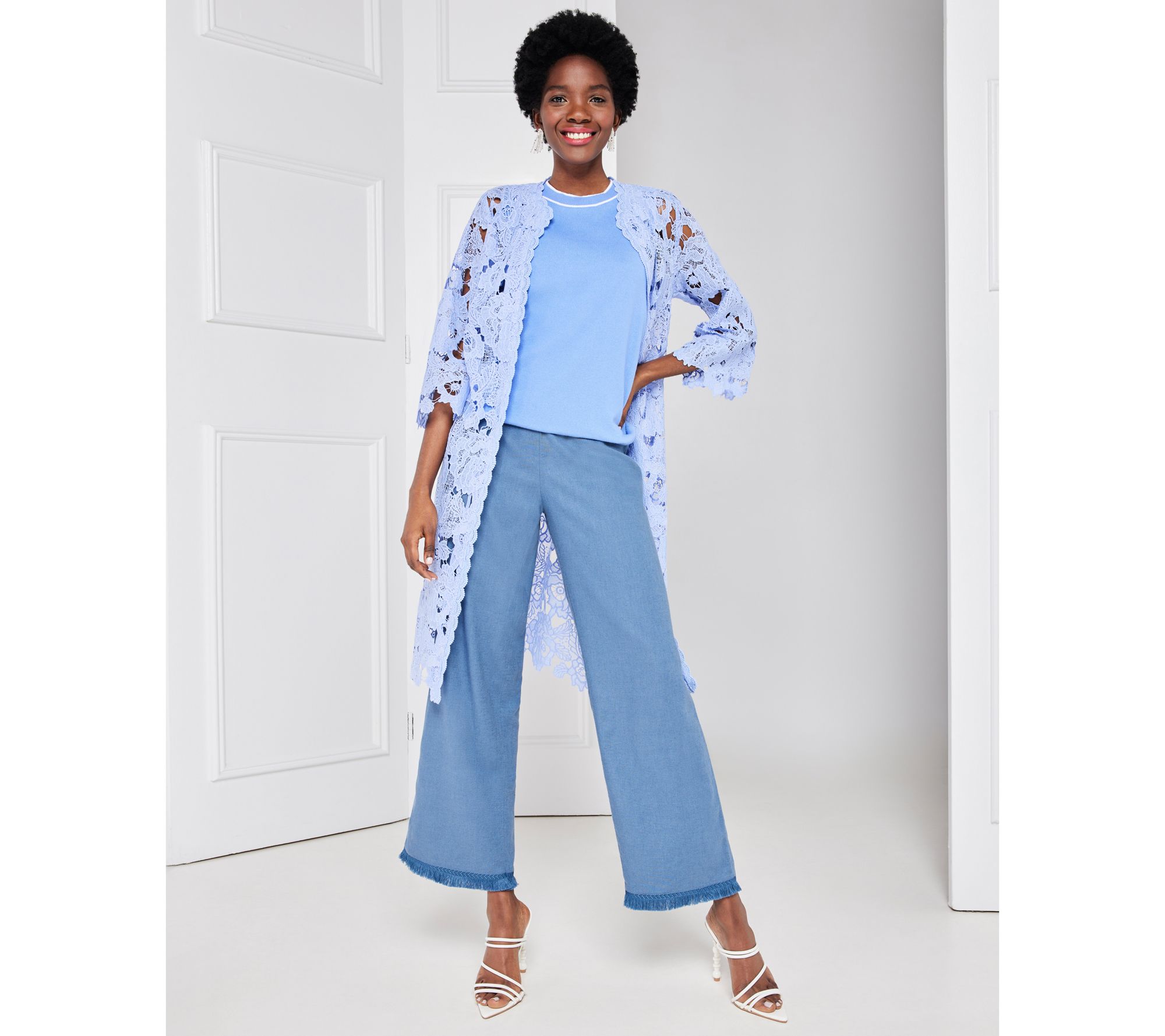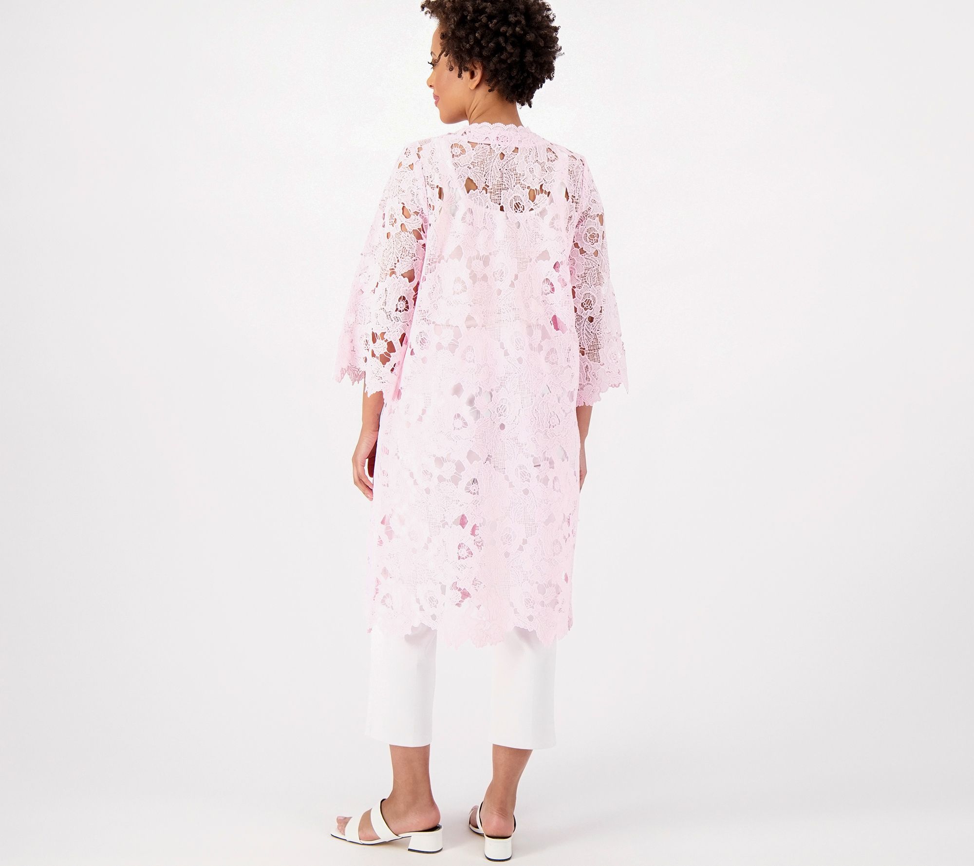 Finish off your look with fabulosity -- this lace duster cardigan instantly elevates any outfit. From Isaac Mizrahi Live!TM.